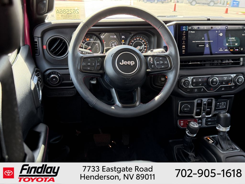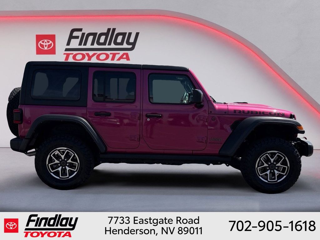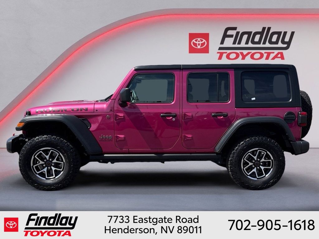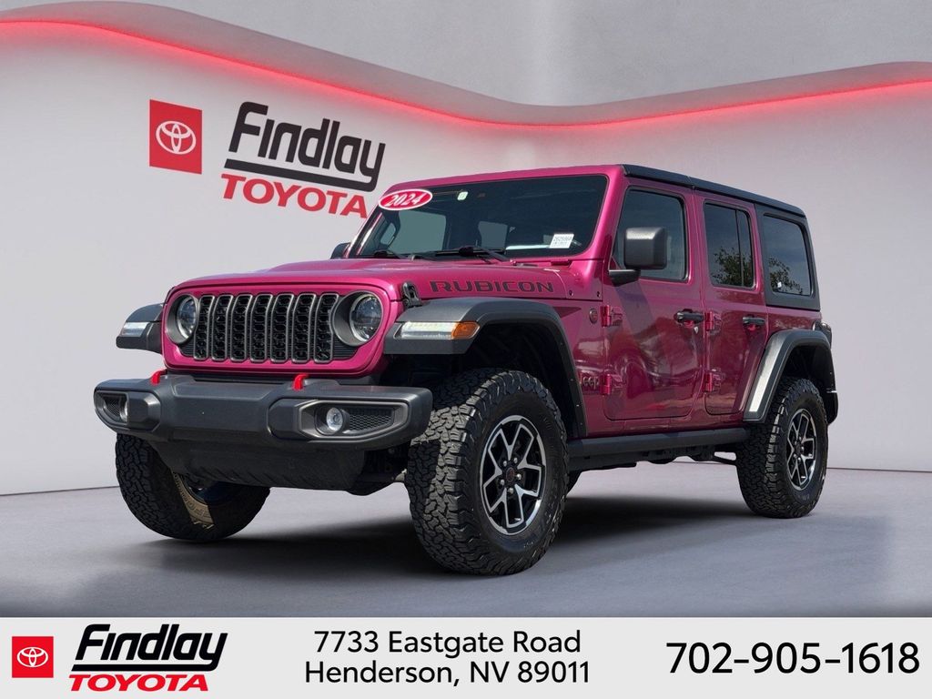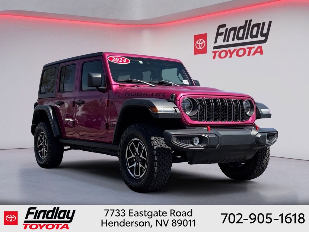 Looking for the best quality used cars near Las Vegas? Findlay Toyota of Henderson is your top destination. As the premier dealership in Nevada, we offer an extensive selection of top-notch pre-owned vehicles, ensuring you find the perfect car to fit your needs and budget. Conveniently located at 7733 Eastgate Rd in the Valley Automall, our dealership spans 12 1⁄2 acres and features a 145,000-square-foot facility, including Nevada’s only Master Certified Toyota Service Department. Our expert sales and financing teams are dedicated to providing a hassle-free buying experience, and our state-of-the-art service center is equipped to handle everything from routine maintenance to major repairs. Our multilingual staff speaks 14 languages, making us accessible to a diverse range of customers. Beyond exceptional service, we are committed to giving back to the Henderson community through initiatives like Toys for Tots and the Las Vegas Rescue Mission. Discover why Findlay Toyota of Henderson is the trusted choice for quality used cars and exceptional service. Visit us today and drive home in your dream car! This Jeep Wrangler is equipped with the following equipment: Convenience Group (Heated Front Seats, Heated Steering Wheel, and Remote Start System), Quick Order Package 24R Rubicon, 12.3" Touchscreen Display, 4-Wheel Disc Brakes, 4.10 Rear Axle Ratio, 8 Speakers, 97 MPH Vehicle Max Speed Calibration, ABS brakes, Air Conditioning, Alloy wheels, AM/FM radio: SiriusXM, Apple CarPlay, Apple CarPlay/Android Auto, Automatic temperature control, Aux Battery, Black 3-Piece Hard Top, Brake assist, Cloth Low-Back Bucket Seats, Compass, Connectivity - US/Canada, Delay-off headlights, Disassociated Touchscreen Display, Driver door bin, Driver vanity mirror, Dual front impact airbags, Dual front side impact airbags, Electronic Stability Control, Emergency communication system: Jeep Connect, Freedom Panel Storage Bag, Front anti-roll bar, Front Bucket Seats, Front Center Armrest w/Storage, Front dual zone A/C, Front fog lights, Front License Plate Bracket, Front reading lights, Fully automatic headlights, Google Android Auto, Heated door mirrors, Illuminated entry, Integrated Center Stack Radio, Integrated roll-over protection, Integrated Voice Command w/Bluetooth, Low tire pressure warning, MOPAR Sunrider For Hardtop, No Soft Top, Non-Lock Fuel Cap w/o Discriminator, Occupant sensing airbag, Outside temperature display, Overhead airbag, Panic alarm, ParkView Rear Back-Up Camera, Passenger door bin, Passenger vanity mirror, Performance Suspension, Power door mirrors, Power steering, Power windows, Radio data system, Radio: Uconnect 5 w/12.3" Display, Rear anti-roll bar, Rear reading lights, Rear Window Defroster, Rear Window Wiper/Washer, Remote keyless entry, Security system, Speed control, Split folding rear seat, Steering wheel mounted audio controls, Stop-Start Dual Battery System, Tachometer, Telescoping steering wheel, Tilt steering wheel, Traction control, Trip computer, Variably intermittent wipers, Voltmeter, and Wheels: 17" x 7.5" Machined/Painted Black. ** This 2024 Jeep Wrangler is equipped with 3.6L V6 24V VVT 4WD**, ** and this Wrangler is trimmed in Limited Edition Tuscadero Pearlcoat with Black interior**.