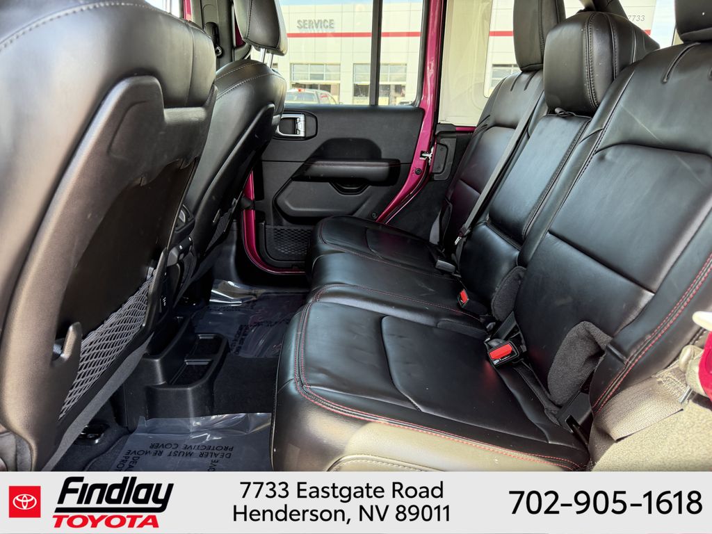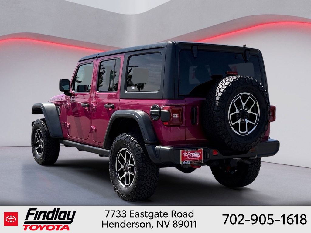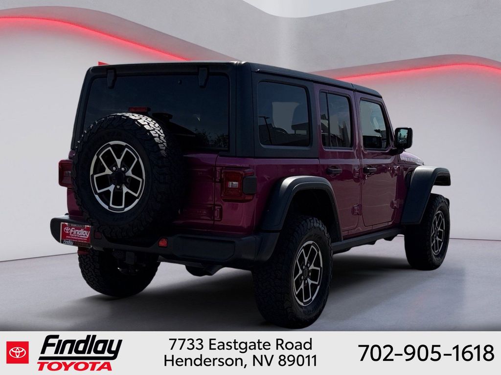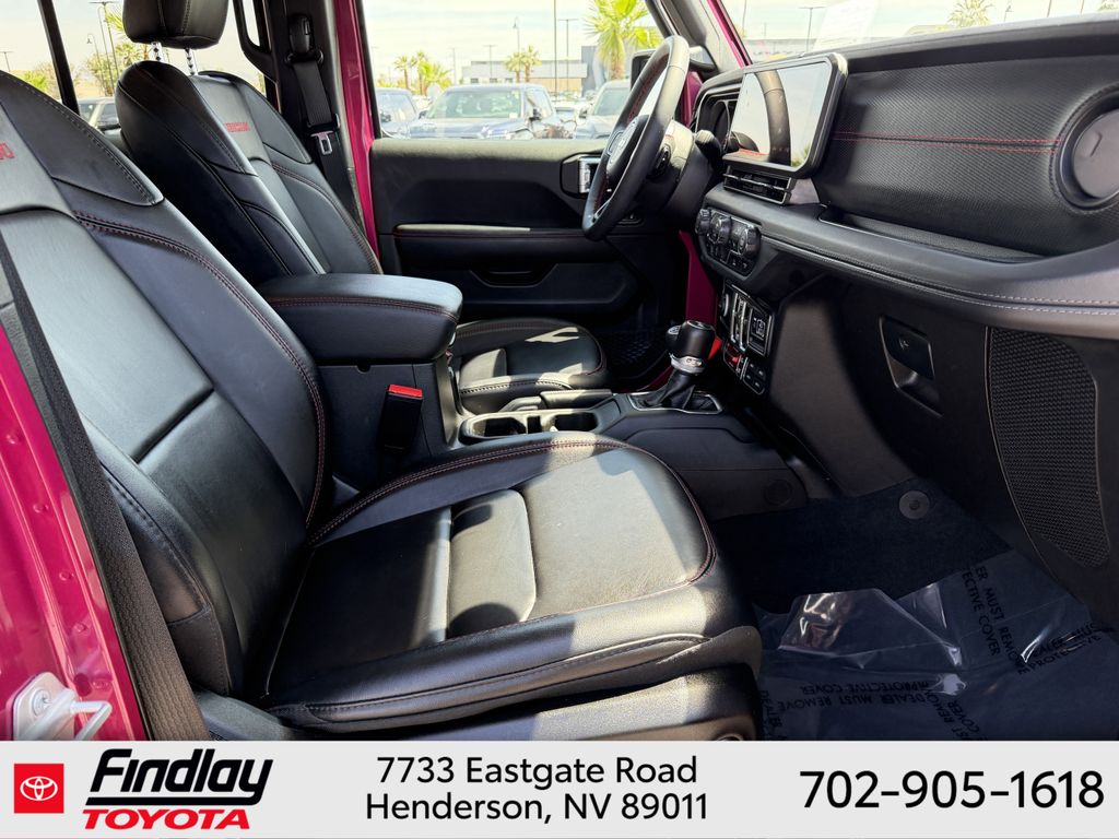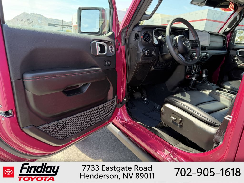 Looking for the best quality used cars near Las Vegas? Findlay Toyota of Henderson is your top destination. As the premier dealership in Nevada, we offer an extensive selection of top-notch pre-owned vehicles, ensuring you find the perfect car to fit your needs and budget. Conveniently located at 7733 Eastgate Rd in the Valley Automall, our dealership spans 12 1⁄2 acres and features a 145,000-square-foot facility, including Nevada’s only Master Certified Toyota Service Department. Our expert sales and financing teams are dedicated to providing a hassle-free buying experience, and our state-of-the-art service center is equipped to handle everything from routine maintenance to major repairs. Our multilingual staff speaks 14 languages, making us accessible to a diverse range of customers. Beyond exceptional service, we are committed to giving back to the Henderson community through initiatives like Toys for Tots and the Las Vegas Rescue Mission. Discover why Findlay Toyota of Henderson is the trusted choice for quality used cars and exceptional service. Visit us today and drive home in your dream car! This Jeep Wrangler is equipped with the following equipment: Convenience Group (Heated Front Seats, Heated Steering Wheel, and Remote Start System), Quick Order Package 24R Rubicon, 12.3" Touchscreen Display, 4-Wheel Disc Brakes, 4.10 Rear Axle Ratio, 8 Speakers, 97 MPH Vehicle Max Speed Calibration, ABS brakes, Air Conditioning, Alloy wheels, AM/FM radio: SiriusXM, Apple CarPlay, Apple CarPlay/Android Auto, Automatic temperature control, Aux Battery, Black 3-Piece Hard Top, Brake assist, Cloth Low-Back Bucket Seats, Compass, Connectivity - US/Canada, Delay-off headlights, Disassociated Touchscreen Display, Driver door bin, Driver vanity mirror, Dual front impact airbags, Dual front side impact airbags, Electronic Stability Control, Emergency communication system: Jeep Connect, Freedom Panel Storage Bag, Front anti-roll bar, Front Bucket Seats, Front Center Armrest w/Storage, Front dual zone A/C, Front fog lights, Front License Plate Bracket, Front reading lights, Fully automatic headlights, Google Android Auto, Heated door mirrors, Illuminated entry, Integrated Center Stack Radio, Integrated roll-over protection, Integrated Voice Command w/Bluetooth, Low tire pressure warning, MOPAR Sunrider For Hardtop, No Soft Top, Non-Lock Fuel Cap w/o Discriminator, Occupant sensing airbag, Outside temperature display, Overhead airbag, Panic alarm, ParkView Rear Back-Up Camera, Passenger door bin, Passenger vanity mirror, Performance Suspension, Power door mirrors, Power steering, Power windows, Radio data system, Radio: Uconnect 5 w/12.3" Display, Rear anti-roll bar, Rear reading lights, Rear Window Defroster, Rear Window Wiper/Washer, Remote keyless entry, Security system, Speed control, Split folding rear seat, Steering wheel mounted audio controls, Stop-Start Dual Battery System, Tachometer, Telescoping steering wheel, Tilt steering wheel, Traction control, Trip computer, Variably intermittent wipers, Voltmeter, and Wheels: 17" x 7.5" Machined/Painted Black. ** This 2024 Jeep Wrangler is equipped with 3.6L V6 24V VVT 4WD**, ** and this Wrangler is trimmed in Limited Edition Tuscadero Pearlcoat with Black interior**.