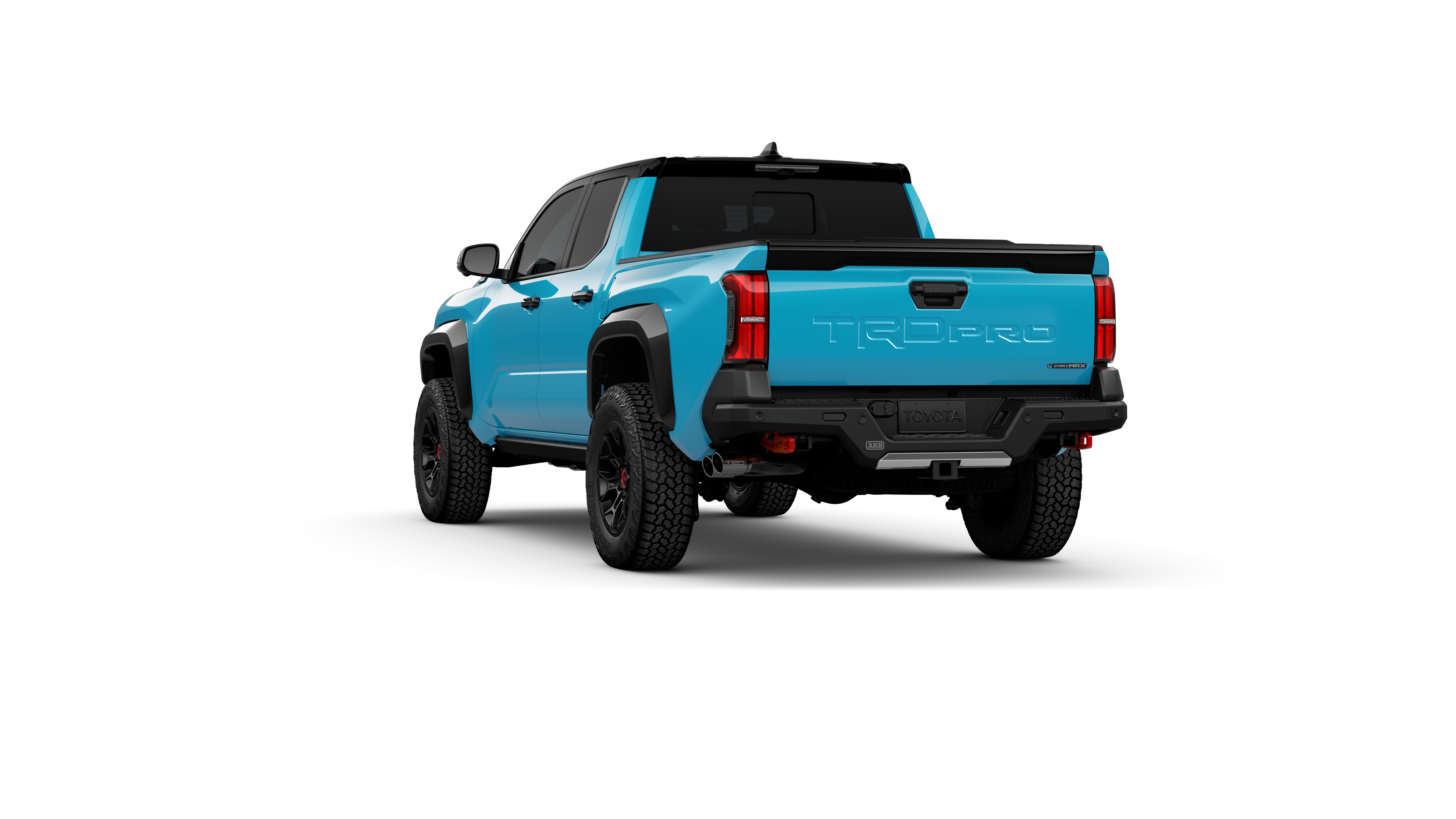 - "TRD Pro" stamped power open-and-close tailgate with hands-free knee-lift assist, integrated taillight bump switches, and jam protection