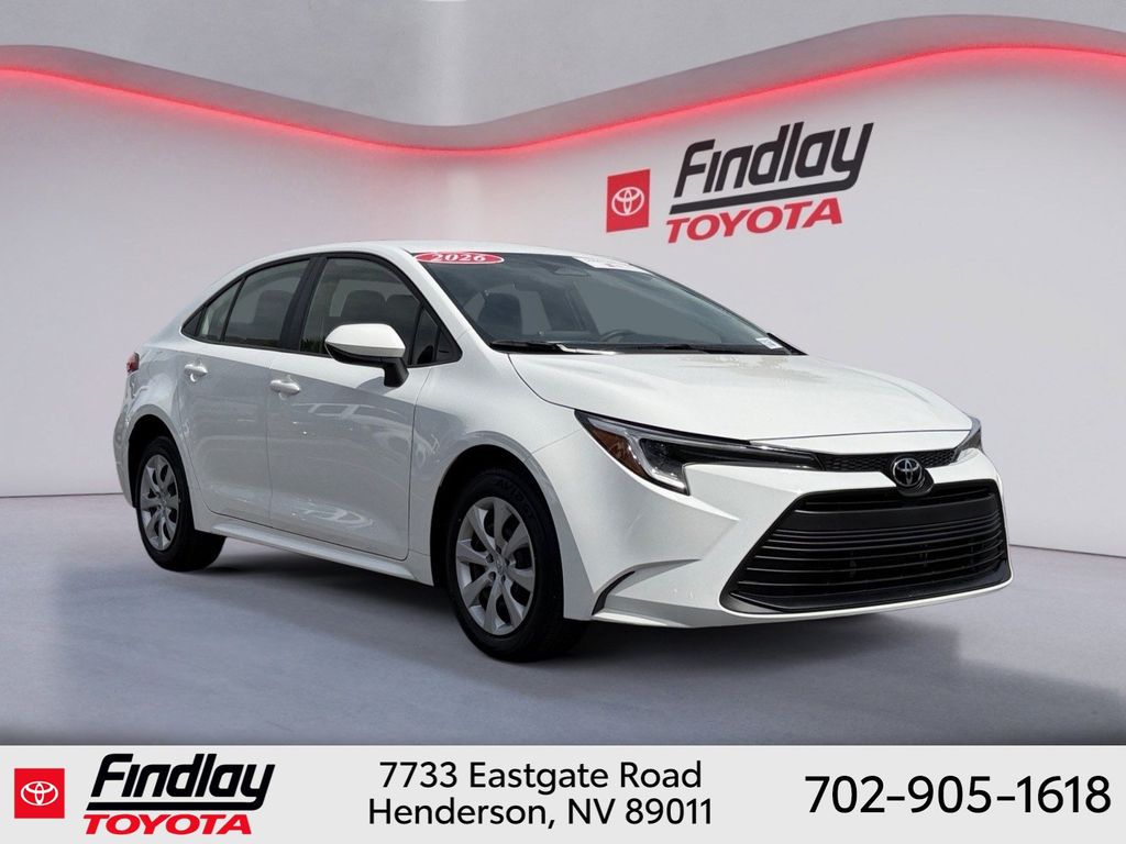 Looking for the best quality used cars near Las Vegas? Findlay Toyota of Henderson is your top destination. As the premier dealership in Nevada, we offer an extensive selection of top-notch pre-owned vehicles, ensuring you find the perfect car to fit your needs and budget. Conveniently located at 7733 Eastgate Rd in the Valley Automall, our dealership spans 12 1⁄2 acres and features a 145,000-square-foot facility, including Nevada’s only Master Certified Toyota Service Department. Our expert sales and financing teams are dedicated to providing a hassle-free buying experience, and our state-of-the-art service center is equipped to handle everything from routine maintenance to major repairs. Our multilingual staff speaks 14 languages, making us accessible to a diverse range of customers. Beyond exceptional service, we are committed to giving back to the Henderson community through initiatives like Toys for Tots and the Las Vegas Rescue Mission. Discover why Findlay Toyota of Henderson is the trusted choice for quality used cars and exceptional service. Visit us today and drive home in your dream car! This Toyota Corolla Hybrid is equipped with the following equipment: 1.8L DOHC 16V VVT, 4-Wheel Disc Brakes, 6 Speakers, ABS brakes, Air Conditioning, AM/FM radio: SiriusXM, Apple CarPlay/Android Auto, Auto High-beam Headlights, Automatic temperature control, Brake assist, Bumpers: body-color, Delay-off headlights, Driver door bin, Driver vanity mirror, Dual front impact airbags, Dual front side impact airbags, Electronic Stability Control, Emergency communication system: Safety Connect (up to 10-year trial subscription), Exterior Parking Camera Rear, Four wheel independent suspension, Front anti-roll bar, Front Bucket Seats, Front Center Armrest, Front reading lights, Fully automatic headlights, Illuminated entry, Knee airbag, Low tire pressure warning, Occupant sensing airbag, Outside temperature display, Overhead airbag, Panic alarm, Passenger door bin, Passenger vanity mirror, Power door mirrors, Power steering, Power windows, Premium Fabric Seat Trim, Radio data system, Radio: 8" Toyota Audio Multimedia, Rear anti-roll bar, Rear seat center armrest, Rear side impact airbag, Rear window defroster, Remote keyless entry, Speed control, Split folding rear seat, Steering wheel mounted audio controls, Tachometer, Telescoping steering wheel, Tilt steering wheel, Traction control, Trip computer, and Wheels: 16" Wide Vent Steel. ** This 2026 Toyota Corolla Hybrid is equipped with 1.8L DOHC 16V VVT FWD**, ** and this Corolla Hybrid is trimmed in Ice with Black interior**, 1.8L DOHC 16V VVT.