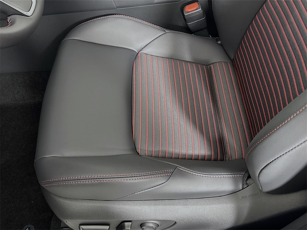 - SofTex®-trimmed seats with sporty red stitching and fabric seat inserts; heated front seats; 8-way power-adjustable front driver's seat with lumbar support and seatback pocket; 4-way adjustable front passenger seat with seatback pocket