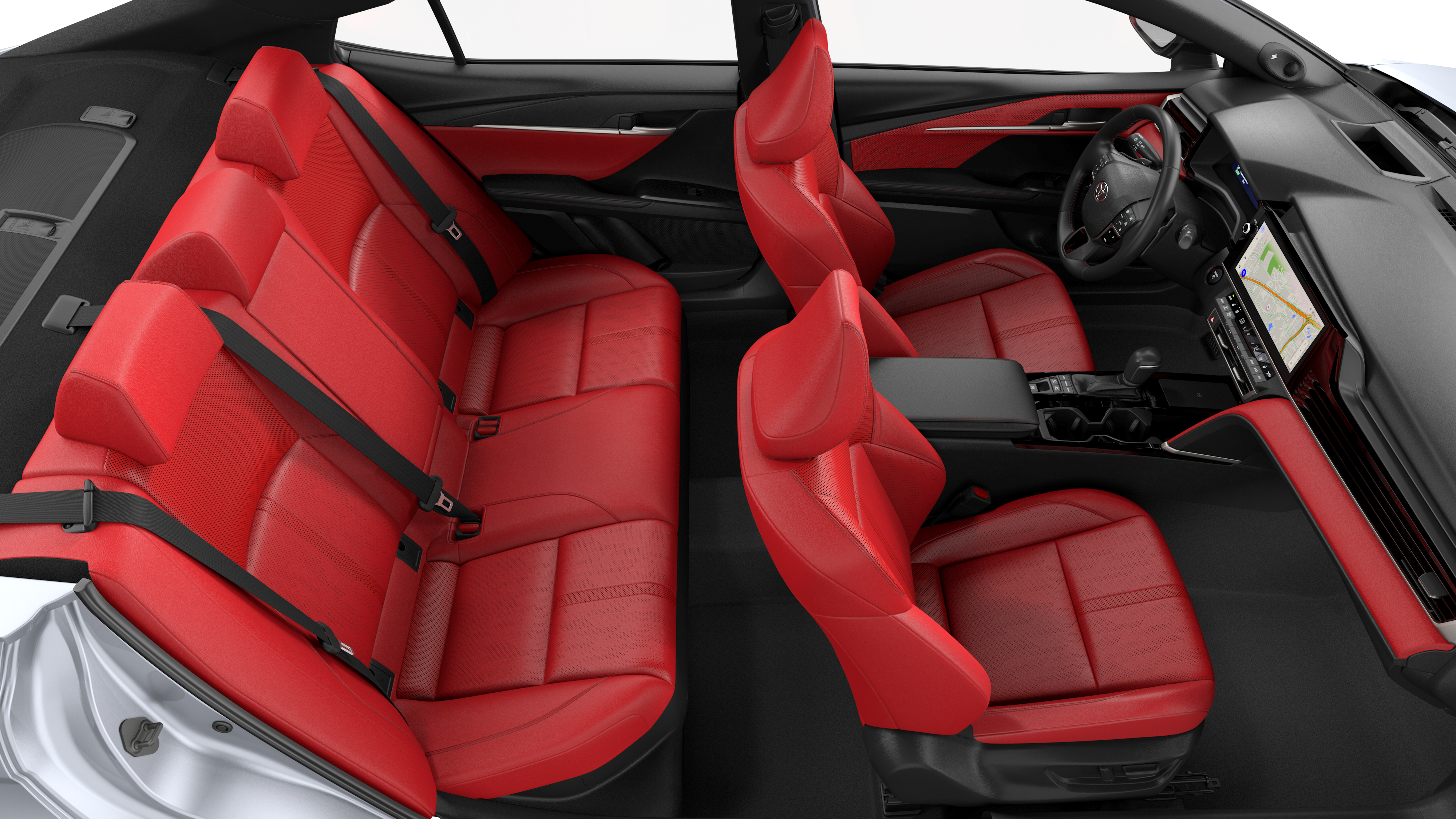 - Leather-trimmed front seats with seatback pockets; 8-way power-adjustable front driver's seat with power lumbar support; 8-way power-adjustable passenger front seat