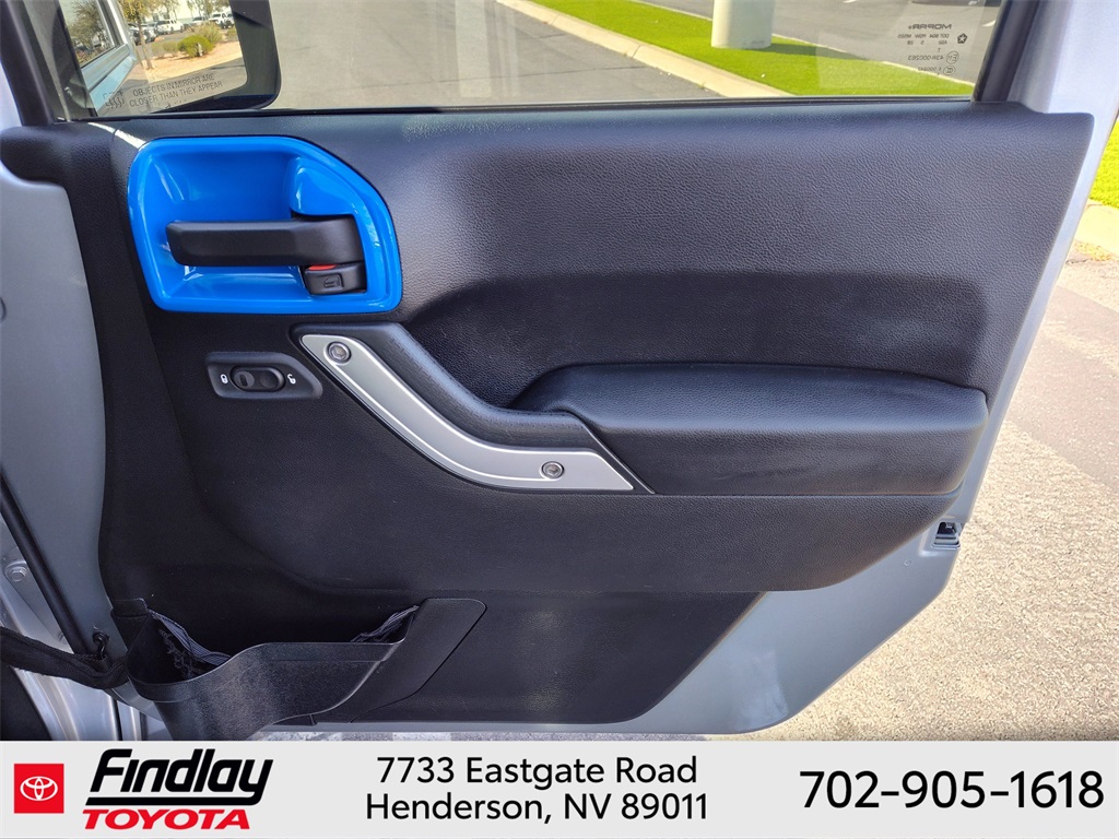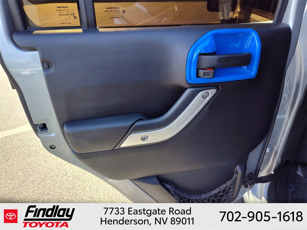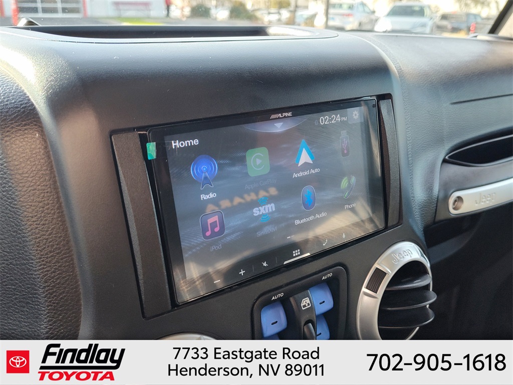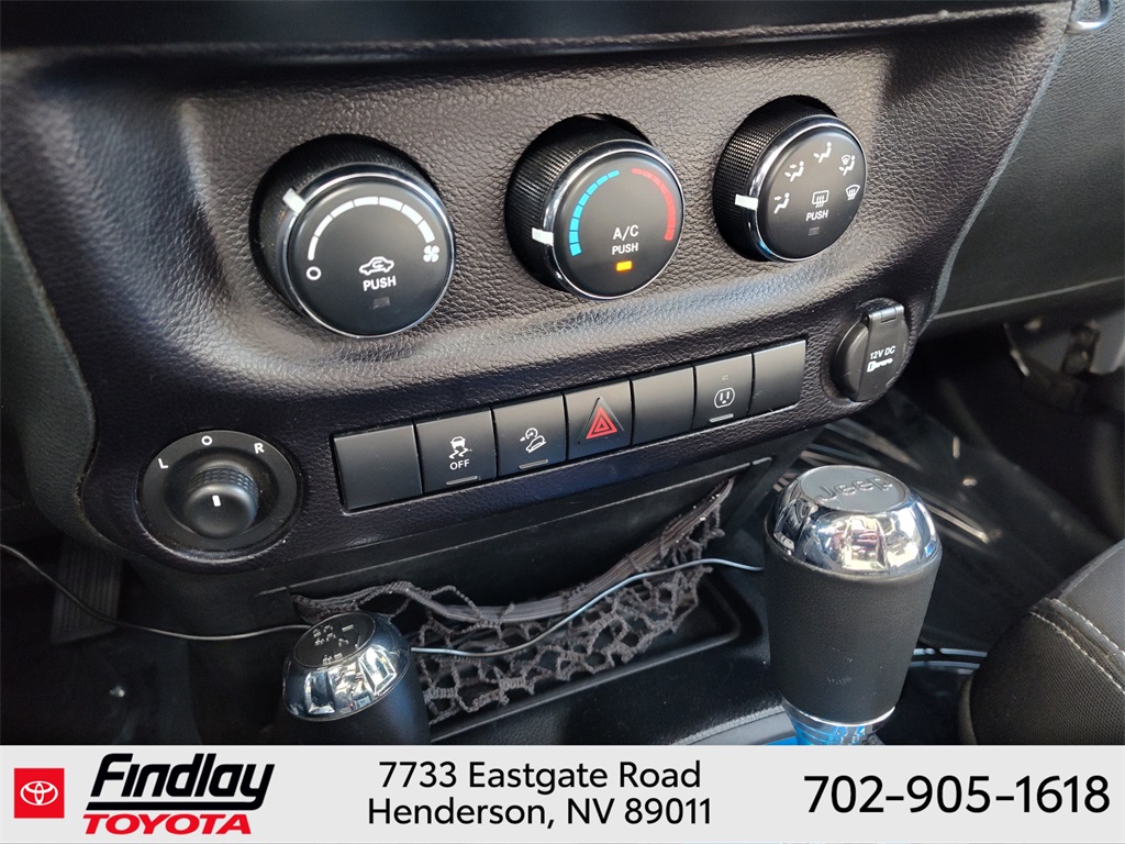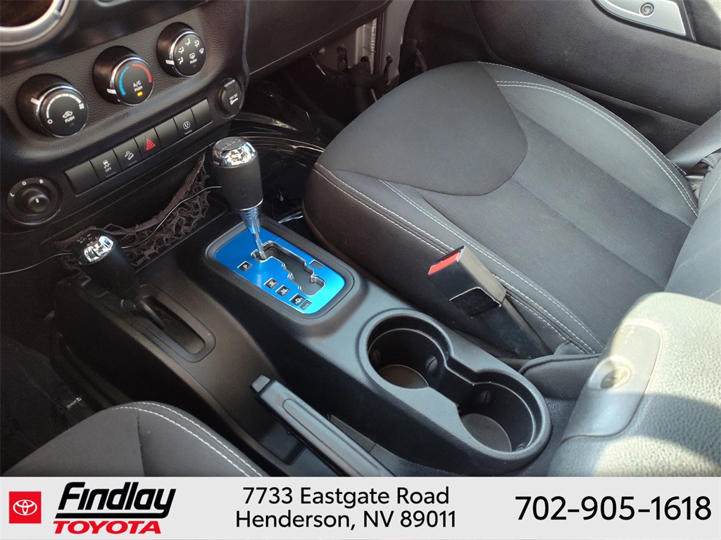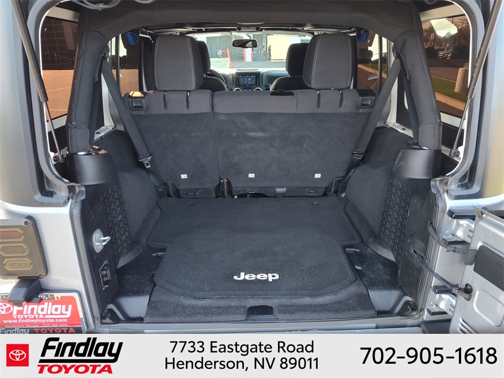 Looking for the best quality used cars near Las Vegas? Findlay Toyota of Henderson is your top destination. As the premier dealership in Nevada, we offer an extensive selection of top-notch pre-owned vehicles, ensuring you find the perfect car to fit your needs and budget. Conveniently located at 7733 Eastgate Rd in the Valley Automall, our dealership spans 12 1⁄2 acres and features a 145,000-square-foot facility, including Nevada’s only Master Certified Toyota Service Department. Our expert sales and financing teams are dedicated to providing a hassle-free buying experience, and our state-of-the-art service center is equipped to handle everything from routine maintenance to major repairs. Our multilingual staff speaks 14 languages, making us accessible to a diverse range of customers. Beyond exceptional service, we are committed to giving back to the Henderson community through initiatives like Toys for Tots and the Las Vegas Rescue Mission. Discover why Findlay Toyota of Henderson is the trusted choice for quality used cars and exceptional service. Visit us today and drive home in your dream car! This Jeep Wrangler is equipped with the following equipment: Connectivity Group (Tire Pressure Monitoring Display and Vehicle Information Center), Quick Order Package 24G, 18" x 7.5" Polished Satin Carbon Wheels, 3.21 Rear Axle Ratio, 4-Wheel Disc Brakes, 40GB Hard Drive w/20GB Available, 5-Year SIRIUSXM Traffic Service, 5-Year SIRIUSXM Travel Link Service, 8 Speakers, ABS brakes, Air Conditioning, Alloy wheels, AM/FM radio, Audio Jack Input for Mobile Devices, Auto-dimming Rear-View mirror, Black 3-Piece Hard Top, Brake assist, CD player, Cloth Bucket Seats, Compass, Delete Sunrider Soft Top, Driver door bin, Driver vanity mirror, Dual front impact airbags, Electronic Stability Control, Freedom Panel Storage Bag, Front anti-roll bar, Front Bucket Seats, Front Center Armrest w/Storage, Front fog lights, Front reading lights, Fully automatic headlights, Heated door mirrors, Heavy Duty Suspension w/Gas Shocks, Illuminated entry, Integrated roll-over protection, Integrated Voice Command w/Bluetooth, Leather steering wheel, Leather Wrapped Steering Wheel, Low tire pressure warning, Occupant sensing airbag, Outside temperature display, Panic alarm, Passenger door bin, Passenger vanity mirror, Power door mirrors, Power steering, Power windows, Radio data system, Radio: Uconnect 130 AM/FM/CD/MP3, Radio: Uconnect 730N CD/DVD/MP3/HDD/NAV, Rear anti-roll bar, Rear Window Defroster, Rear Window Wiper/Washer, Remote keyless entry, Remote USB Port, Security system, SIRIUSXM Traffic, SIRIUSXM Travel Link, Speed control, Split folding rear seat, Steering wheel mounted audio controls, Sunrider Soft Top, Tachometer, Tilt steering wheel, Traction control, Trip computer, Uconnect Voice Command w/Bluetooth, and Variably intermittent wipers. ** This 2015 Jeep Wrangler is equipped with 3.6L V6 24V VVT 4WD**, ** and this Wrangler is trimmed in Billet Silver Metallic Clearcoat with Black interior**.