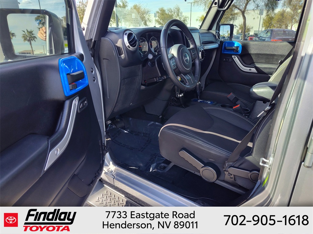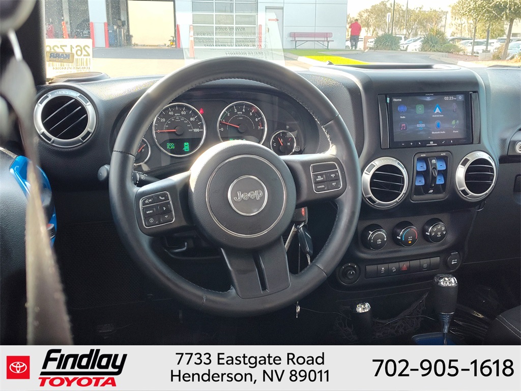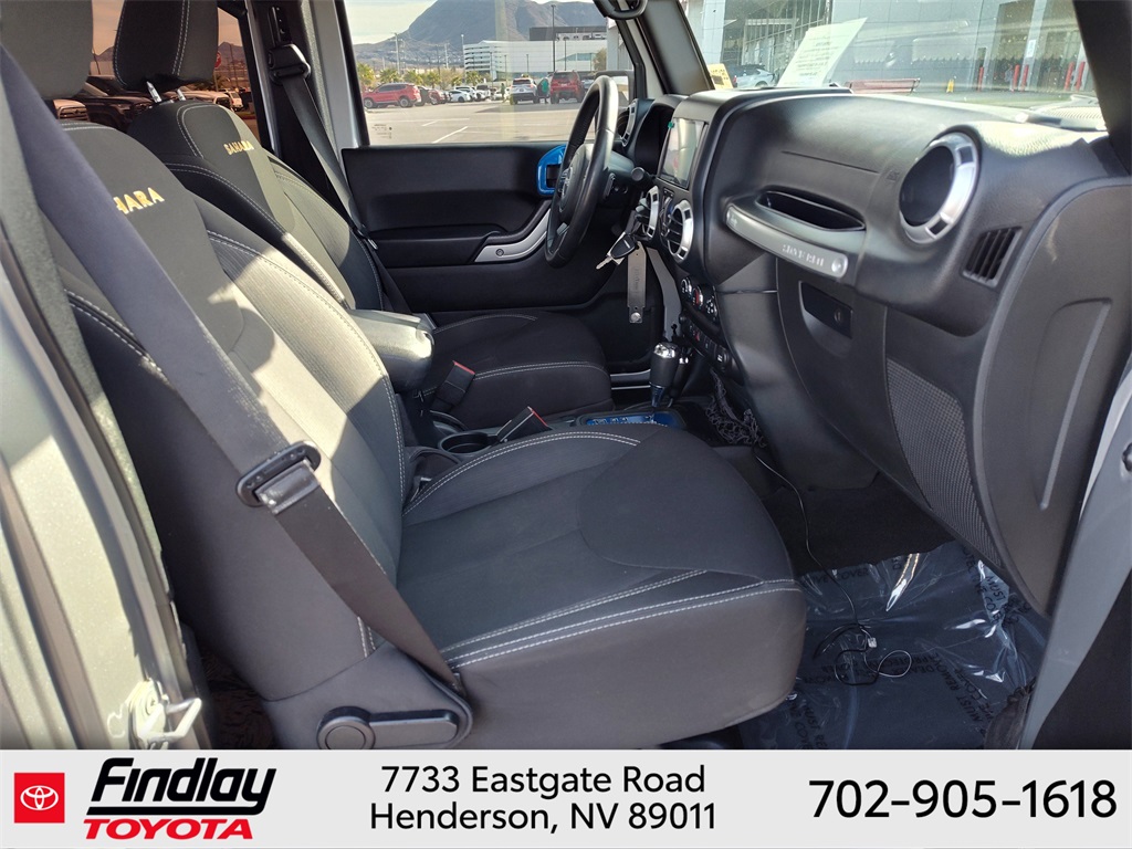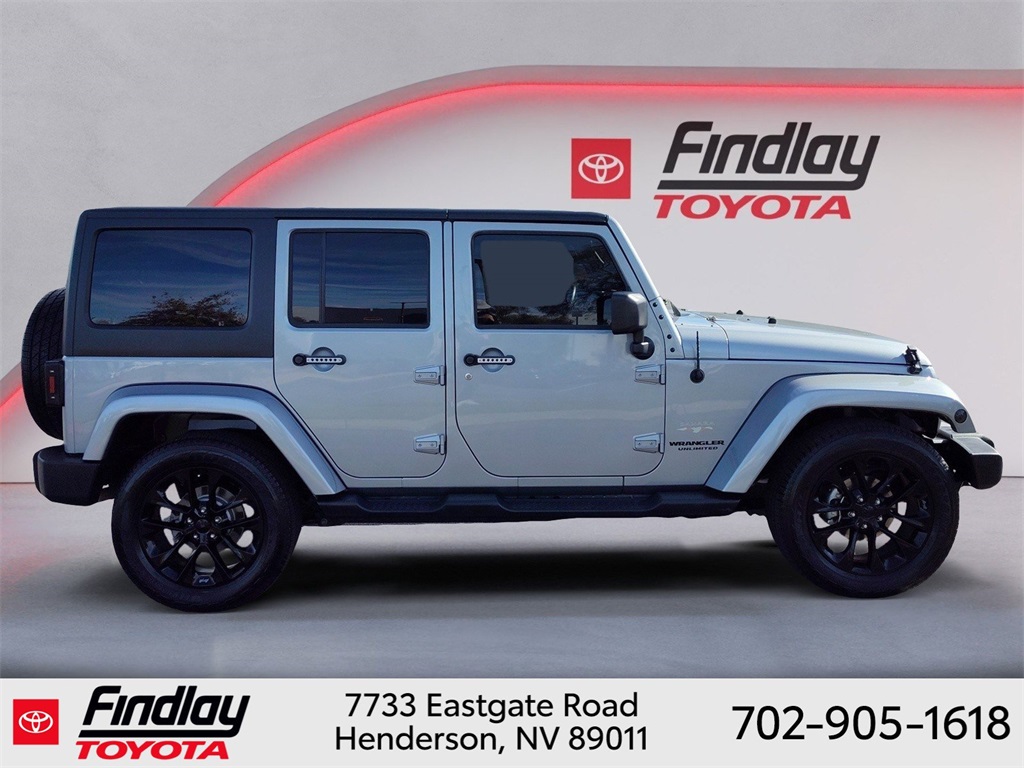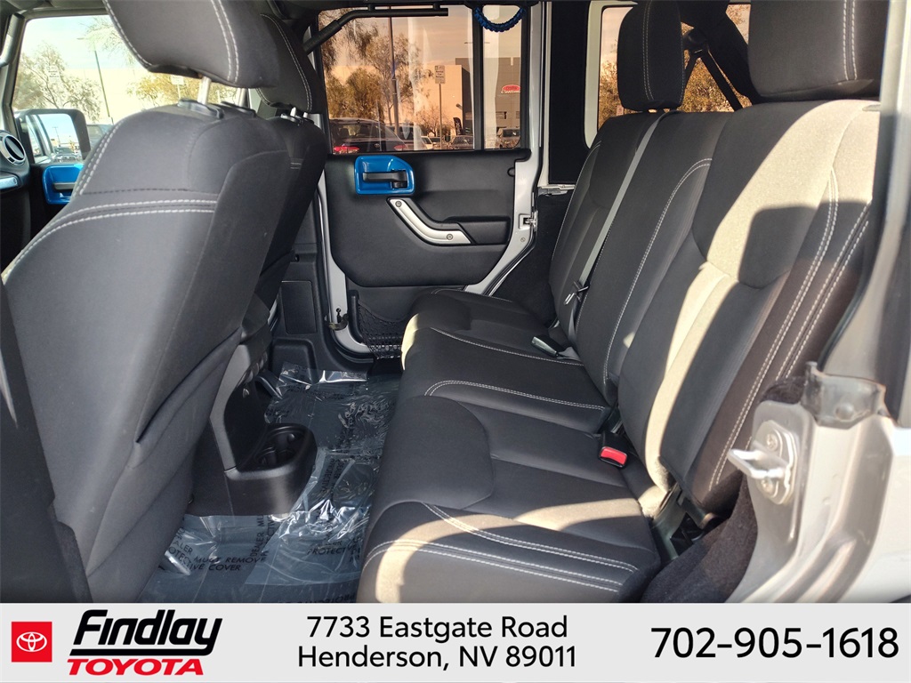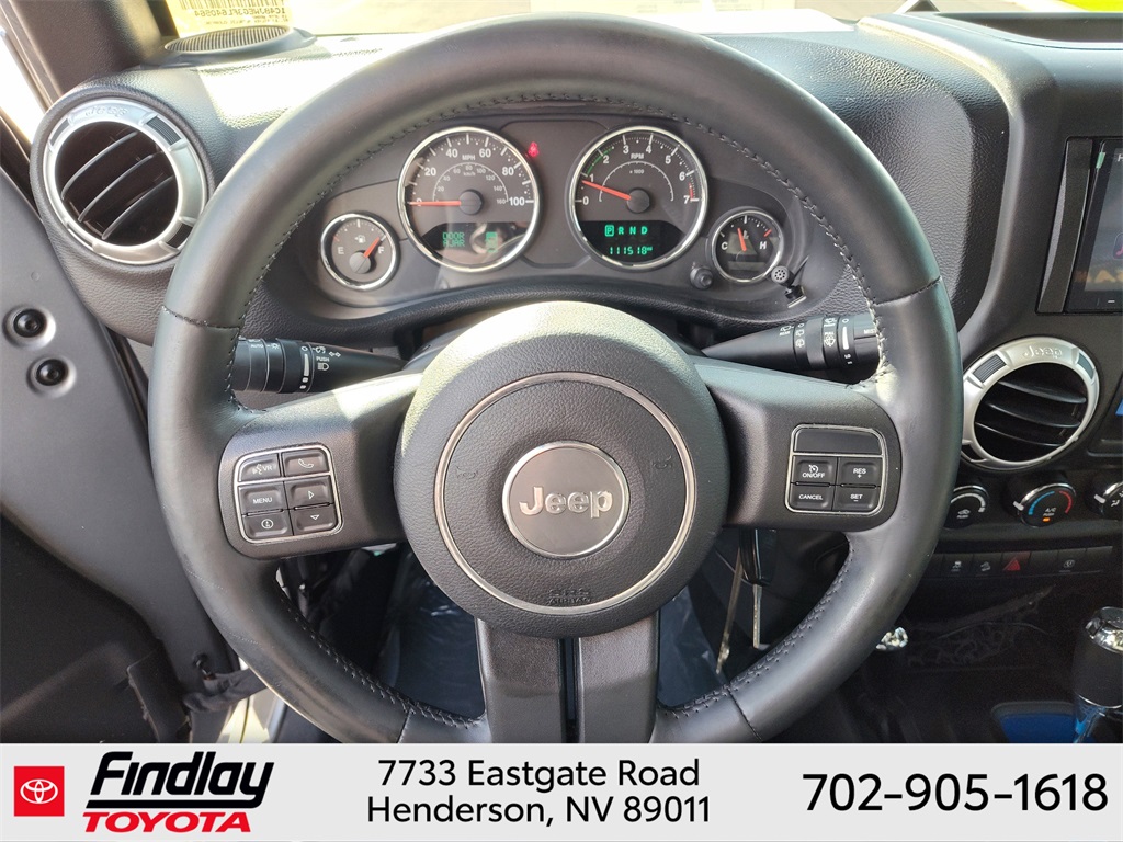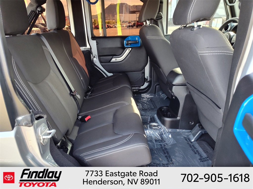 Looking for the best quality used cars near Las Vegas? Findlay Toyota of Henderson is your top destination. As the premier dealership in Nevada, we offer an extensive selection of top-notch pre-owned vehicles, ensuring you find the perfect car to fit your needs and budget. Conveniently located at 7733 Eastgate Rd in the Valley Automall, our dealership spans 12 1⁄2 acres and features a 145,000-square-foot facility, including Nevada’s only Master Certified Toyota Service Department. Our expert sales and financing teams are dedicated to providing a hassle-free buying experience, and our state-of-the-art service center is equipped to handle everything from routine maintenance to major repairs. Our multilingual staff speaks 14 languages, making us accessible to a diverse range of customers. Beyond exceptional service, we are committed to giving back to the Henderson community through initiatives like Toys for Tots and the Las Vegas Rescue Mission. Discover why Findlay Toyota of Henderson is the trusted choice for quality used cars and exceptional service. Visit us today and drive home in your dream car! This Jeep Wrangler is equipped with the following equipment: Connectivity Group (Tire Pressure Monitoring Display and Vehicle Information Center), Quick Order Package 24G, 18" x 7.5" Polished Satin Carbon Wheels, 3.21 Rear Axle Ratio, 4-Wheel Disc Brakes, 40GB Hard Drive w/20GB Available, 5-Year SIRIUSXM Traffic Service, 5-Year SIRIUSXM Travel Link Service, 8 Speakers, ABS brakes, Air Conditioning, Alloy wheels, AM/FM radio, Audio Jack Input for Mobile Devices, Auto-dimming Rear-View mirror, Black 3-Piece Hard Top, Brake assist, CD player, Cloth Bucket Seats, Compass, Delete Sunrider Soft Top, Driver door bin, Driver vanity mirror, Dual front impact airbags, Electronic Stability Control, Freedom Panel Storage Bag, Front anti-roll bar, Front Bucket Seats, Front Center Armrest w/Storage, Front fog lights, Front reading lights, Fully automatic headlights, Heated door mirrors, Heavy Duty Suspension w/Gas Shocks, Illuminated entry, Integrated roll-over protection, Integrated Voice Command w/Bluetooth, Leather steering wheel, Leather Wrapped Steering Wheel, Low tire pressure warning, Occupant sensing airbag, Outside temperature display, Panic alarm, Passenger door bin, Passenger vanity mirror, Power door mirrors, Power steering, Power windows, Radio data system, Radio: Uconnect 130 AM/FM/CD/MP3, Radio: Uconnect 730N CD/DVD/MP3/HDD/NAV, Rear anti-roll bar, Rear Window Defroster, Rear Window Wiper/Washer, Remote keyless entry, Remote USB Port, Security system, SIRIUSXM Traffic, SIRIUSXM Travel Link, Speed control, Split folding rear seat, Steering wheel mounted audio controls, Sunrider Soft Top, Tachometer, Tilt steering wheel, Traction control, Trip computer, Uconnect Voice Command w/Bluetooth, and Variably intermittent wipers. ** This 2015 Jeep Wrangler is equipped with 3.6L V6 24V VVT 4WD**, ** and this Wrangler is trimmed in Billet Silver Metallic Clearcoat with Black interior**.