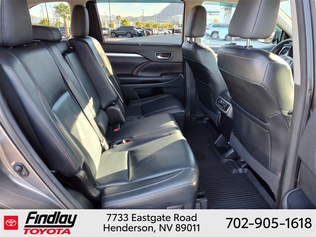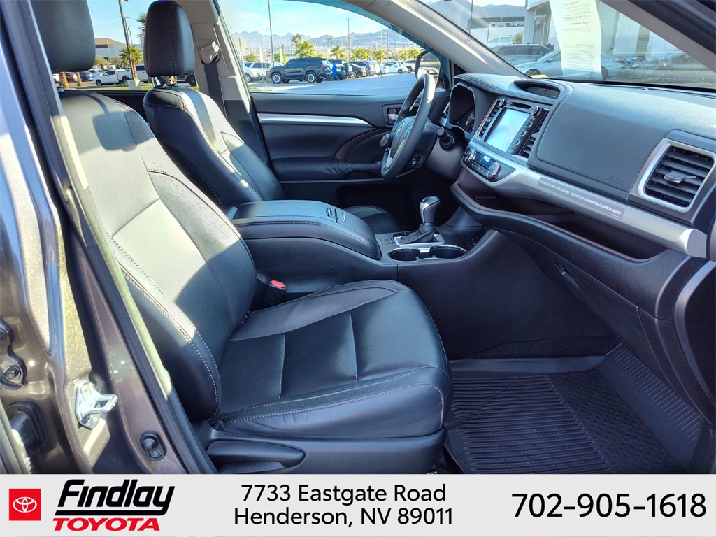 Looking for the best quality used cars near Las Vegas? Findlay Toyota of Henderson is your top destination. As the premier dealership in Nevada, we offer an extensive selection of top-notch pre-owned vehicles, ensuring you find the perfect car to fit your needs and budget. Conveniently located at 7733 Eastgate Rd in the Valley Automall, our dealership spans 12 1⁄2 acres and features a 145,000-square-foot facility, including Nevada’s only Master Certified Toyota Service Department. Our expert sales and financing teams are dedicated to providing a hassle-free buying experience, and our state-of-the-art service center is equipped to handle everything from routine maintenance to major repairs. Our multilingual staff speaks 14 languages, making us accessible to a diverse range of customers. Beyond exceptional service, we are committed to giving back to the Henderson community through initiatives like Toys for Tots and the Las Vegas Rescue Mission. Discover why Findlay Toyota of Henderson is the trusted choice for quality used cars and exceptional service. Visit us today and drive home in your dream car! This Toyota Highlander is equipped with the following equipment: Toyota Silver Certified Certified, AWD, 3rd row seats: split-bench, 4-Wheel Disc Brakes, 4.154 Axle Ratio, 6 Speakers, ABS brakes, Air Conditioning, Alloy wheels, AM/FM radio: SiriusXM, Auto-dimming Rear-View mirror, Automatic temperature control, Brake assist, Bumpers: body-color, CD player, Delay-off headlights, Driver door bin, Driver vanity mirror, Dual front impact airbags, Dual front side impact airbags, Electronic Stability Control, Exterior Parking Camera Rear, Four wheel independent suspension, Front anti-roll bar, Front Bucket Seats, Front Center Armrest, Front dual zone A/C, Front fog lights, Front reading lights, Fully automatic headlights, Garage door transmitter, Heated door mirrors, Heated front seats, Illuminated entry, Knee airbag, Leather Seat Material, Leather Shift Knob, Low tire pressure warning, Navigation System, Occupant sensing airbag, Outside temperature display, Overhead airbag, Overhead console, Panic alarm, Passenger door bin, Passenger vanity mirror, Power door mirrors, Power driver seat, Power Liftgate, Power moonroof, Power steering, Power windows, Radio: Entune Premium Audio w/Nav & App Suite, Rear air conditioning, Rear anti-roll bar, Rear reading lights, Rear window defroster, Rear window wiper, Reclining 3rd row seat, Remote keyless entry, Roof rack: rails only, Security system, Speed control, Speed-sensing steering, Split folding rear seat, Spoiler, Steering wheel mounted audio controls, Tachometer, Telescoping steering wheel, Tilt steering wheel, Traction control, Trip computer, Turn signal indicator mirrors, Variably intermittent wipers, and Wheels: 18" Split 5-Spoke Machined-Face Alloy. ** This 2016 Toyota Highlander is equipped with 3.5L V6 DOHC Dual VVT-i 24V AWD**, ** and this Highlander is trimmed in Predawn Gray Mica with Black interior**, AWD.