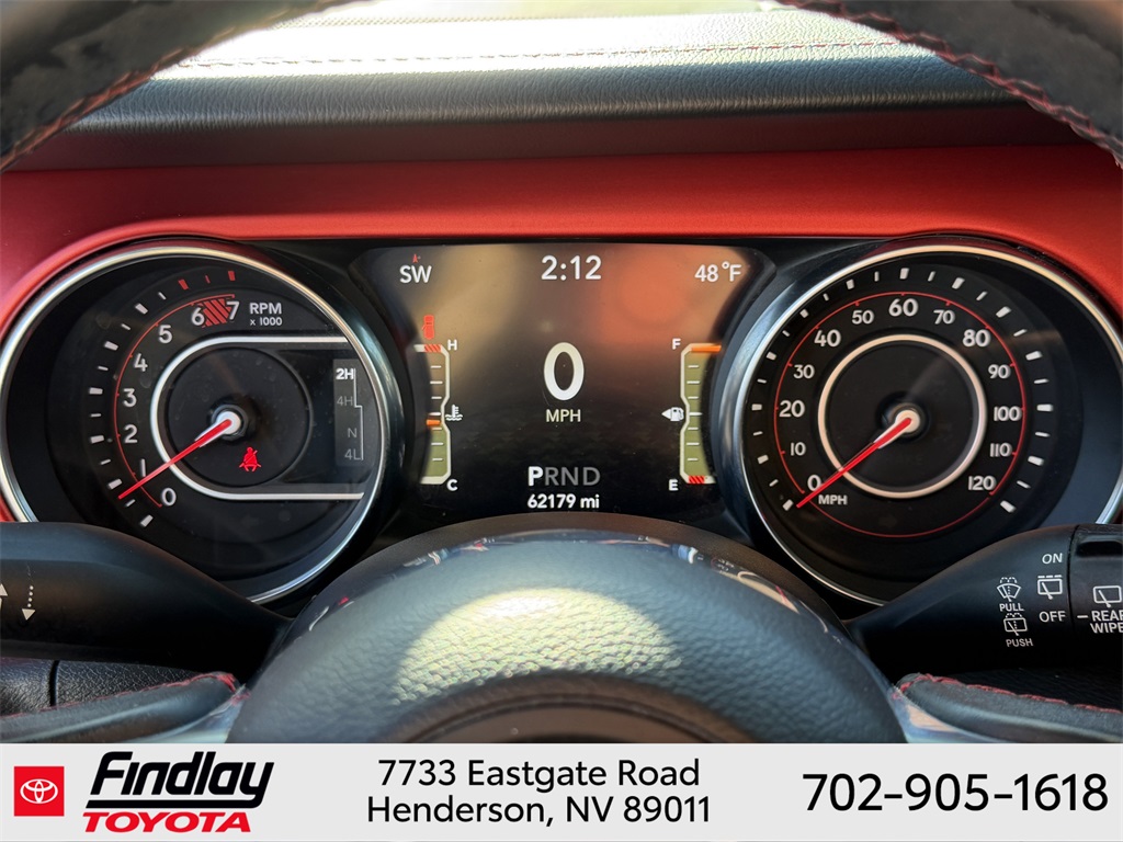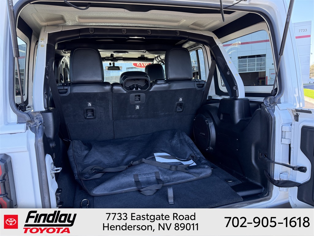 Looking for the best quality used cars near Las Vegas? Findlay Toyota of Henderson is your top destination. As the premier dealership in Nevada, we offer an extensive selection of top-notch pre-owned vehicles, ensuring you find the perfect car to fit your needs and budget. Conveniently located at 7733 Eastgate Rd in the Valley Automall, our dealership spans 12 1⁄2 acres and features a 145,000-square-foot facility, including Nevada’s only Master Certified Toyota Service Department. Our expert sales and financing teams are dedicated to providing a hassle-free buying experience, and our state-of-the-art service center is equipped to handle everything from routine maintenance to major repairs. Our multilingual staff speaks 14 languages, making us accessible to a diverse range of customers. Beyond exceptional service, we are committed to giving back to the Henderson community through initiatives like Toys for Tots and the Las Vegas Rescue Mission. Discover why Findlay Toyota of Henderson is the trusted choice for quality used cars and exceptional service. Visit us today and drive home in your dream car! This Jeep Wrangler is equipped with the following equipment: Cold Weather Group (Heated Front Seats and Heated Steering Wheel), Electronic Infotainment System Group (1-Year SiriusXM Guardian Trial, 5-Year SiriusXM Traffic Service, 5-Year SiriusXM Travel Link Service, 8.4" Touchscreen Display, Alpine Premium Audio System, Auto-Dimming Rear-View Mirror, GPS Navigation, HD Radio, Radio: Uconnect 4C Nav w/8.4" Display, Roadside Assistance & 9-1-1 Call, SiriusXM Traffic Plus, and SiriusXM Travel Link), LED Lighting Group (Daytime Running Lamps LED Accents, Front LED Fog Lamps, LED Reflector Headlamps, and LED Taillamps), Quick Order Package 28R, Safety Group (Blind Spot & Cross Path Detection and ParkSense Rear Park Assist System), Steel Bumper Group (Steel Front Bumper and Steel Rear Bumper), Trailer Tow & HD Electrical Group (240 Amp Alternator, 7 & 4 Pin Wiring Harness, 700 Amp Maintenance Free Battery, Auxiliary Switches, and Class II Receiver Hitch), 4-Wheel Disc Brakes, 4.10 Rear Axle Ratio, 8 Speakers, ABS brakes, Air Conditioning, Alloy wheels, AM/FM radio: SiriusXM, Apple CarPlay/Android Auto, Automatic temperature control, Body Color 3-Piece Hard Top, Body Color Fender Flares, Brake assist, Compass, Delay-off headlights, Driver door bin, Driver vanity mirror, Dual front impact airbags, Dual front side impact airbags, Electronic Stability Control, Freedom Panel Storage Bag, Front anti-roll bar, Front Bucket Seats, Front Center Armrest w/Storage, Front dual zone A/C, Front fog lights, Front reading lights, Fully automatic headlights, Garage door transmitter, Heated door mirrors, Illuminated entry, Integrated roll-over protection, Leather steering wheel, Low tire pressure warning, MOPAR Hardtop Headliner, Non-Lock Fuel Cap w/o Discriminator, Occupant sensing airbag, Outside temperature display, Panic alarm, ParkView Rear Back-Up Camera, Passenger door bin, Passenger vanity mirror, Performance Suspension, Power door mirrors, Power steering, Power windows, Premium Cloth Low-Back Bucket Seats, Radio data system, Radio: Uconnect 4 w/7" Display, Rear anti-roll bar, Rear reading lights, Rear Window Defroster, Rear Window Wiper/Washer, Remote keyless entry, Remote Proximity Keyless Entry, Remote Start System, Security system, Speed control, Split folding rear seat, Steering wheel mounted audio controls, Tachometer, Telescoping steering wheel, Tilt steering wheel, Traction control, Trip computer, Variably intermittent wipers, Voltmeter, and Wheels: 17" x 7.5" Polished w/Black Pockets. ** This 2018 Jeep Wrangler is equipped with 2.0L I4 DOHC 4WD**, ** and this Wrangler is trimmed in