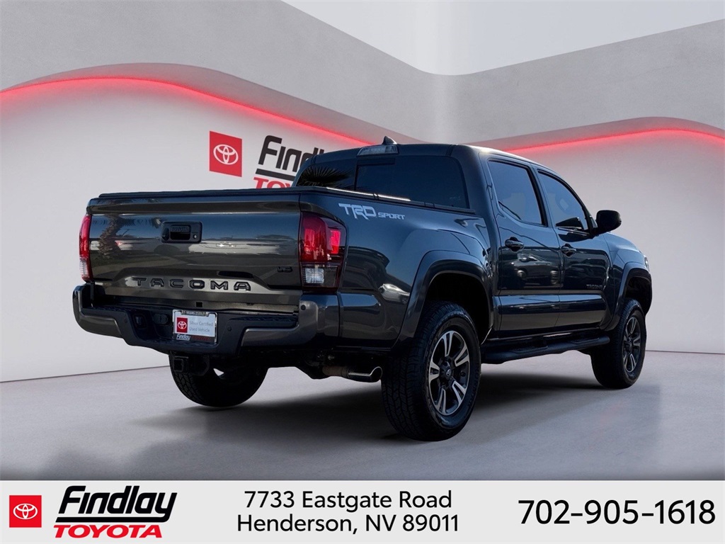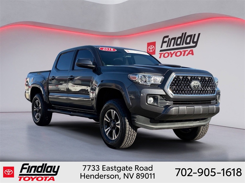 Looking for the best quality used cars near Las Vegas? Findlay Toyota of Henderson is your top destination. As the premier dealership in Nevada, we offer an extensive selection of top-notch pre-owned vehicles, ensuring you find the perfect car to fit your needs and budget. Conveniently located at 7733 Eastgate Rd in the Valley Automall, our dealership spans 12 1⁄2 acres and features a 145,000-square-foot facility, including Nevada’s only Master Certified Toyota Service Department. Our expert sales and financing teams are dedicated to providing a hassle-free buying experience, and our state-of-the-art service center is equipped to handle everything from routine maintenance to major repairs. Our multilingual staff speaks 14 languages, making us accessible to a diverse range of customers. Beyond exceptional service, we are committed to giving back to the Henderson community through initiatives like Toys for Tots and the Las Vegas Rescue Mission. Discover why Findlay Toyota of Henderson is the trusted choice for quality used cars and exceptional service. Visit us today and drive home in your dream car! This Toyota Tacoma is equipped with the following equipment: Toyota Gold Certified Certified, 120V/400W Deck Mounted AC Power, 6 Speakers, ABS brakes, Air Conditioning, Alloy wheels, AM/FM radio: SiriusXM, Anti-whiplash front head restraints, Auto High-beam Headlights, Auto-dimming Rear-View mirror, Axle Ratio: 3.91, Brake assist, Bumpers: body-color, CD player, Color Keyed Rear Bumper, Compass, Driver door bin, Dual front impact airbags, Dual front side impact airbags, Electronic Stability Control, Engine Immobilizer, Exterior Parking Camera Rear, Fabric Seat Trim (FD), Front anti-roll bar, Front Bucket Seats, Front Center Armrest, Front fog lights, Front reading lights, Front wheel independent suspension, Illuminated entry, Knee airbag, Leather Shift Knob, LED Daytime Running Lamps, Low tire pressure warning, Navigation System, Occupant sensing airbag, Outside temperature display, Overhead airbag, Overhead console, Panic alarm, Passenger door bin, Power door mirrors, Power steering, Power windows, Radio: Entune Premium w/AM/FM/CD/Nav/App Suite, Rear step bumper, Remote keyless entry, Security system, Smart Key w/Push Button Start, Speed control, Speed-sensing steering, Split folding rear seat, Steering wheel mounted audio controls, Tachometer, Telescoping steering wheel, Tilt steering wheel, Traction control, Trip computer, Turn signal indicator mirrors, Variably intermittent wipers, Wheels: 17" x 7.5" Machined Alloy, and Wide Angle Front Fog Lamps. ** This 2018 Toyota Tacoma is equipped with 3.5L V6 PDI DOHC 24V LEV3-ULEV70 278hp RWD**, ** and this Tacoma is trimmed in Magnetic Gray Metallic with Graphite interior**.