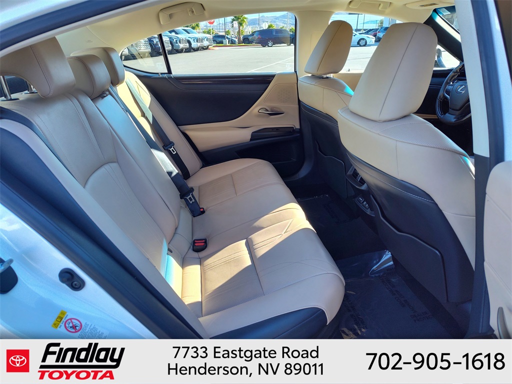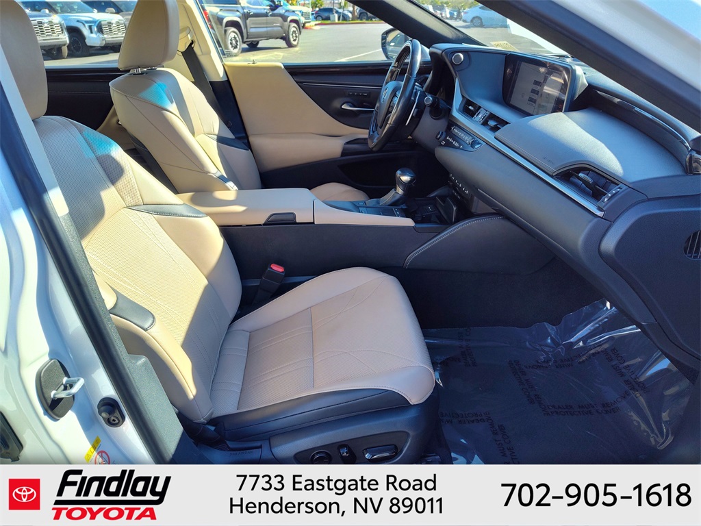 Looking for the best quality used cars near Las Vegas? Findlay Toyota of Henderson is your top destination. As the premier dealership in Nevada, we offer an extensive selection of top-notch pre-owned vehicles, ensuring you find the perfect car to fit your needs and budget. Conveniently located at 7733 Eastgate Rd in the Valley Automall, our dealership spans 12 1⁄2 acres and features a 145,000-square-foot facility, including Nevada’s only Master Certified Toyota Service Department. Our expert sales and financing teams are dedicated to providing a hassle-free buying experience, and our state-of-the-art service center is equipped to handle everything from routine maintenance to major repairs. Our multilingual staff speaks 14 languages, making us accessible to a diverse range of customers. Beyond exceptional service, we are committed to giving back to the Henderson community through initiatives like Toys for Tots and the Las Vegas Rescue Mission. Discover why Findlay Toyota of Henderson is the trusted choice for quality used cars and exceptional service. Visit us today and drive home in your dream car! This Lexus ES is equipped with the following equipment: 2.5L I4 DOHC 16V VVT-i, Chateau w/Linear Espresso Wood w/Genuine Leather Seat Trim, 10 Speakers, 10-Way Power Adjustable Front Seats, 4-Wheel Disc Brakes, ABS brakes, Air Conditioning, Alloy wheels, AM/FM radio: SiriusXM, Auto High-beam Headlights, Auto-dimming door mirrors, Automatic temperature control, Brake assist, Bumpers: body-color, CD player, Compass, Delay-off headlights, Driver door bin, Driver vanity mirror, Dual front impact airbags, Dual front side impact airbags, Electronic Stability Control, Emergency communication system: Lexus Enform w/Safety Connect, Exterior Parking Camera Rear, Four wheel independent suspension, Front anti-roll bar, Front Bucket Seats, Front Center Armrest, Front dual zone A/C, Front reading lights, Fully automatic headlights, Garage door transmitter: HomeLink, Illuminated entry, Knee airbag, Leather Shift Knob, Leather steering wheel, Low tire pressure warning, Occupant sensing airbag, Outside temperature display, Overhead airbag, Overhead console, Panic alarm, Passenger door bin, Passenger vanity mirror, Power door mirrors, Power driver seat, Power moonroof, Power passenger seat, Power steering, Power windows, Radio data system, Radio: Lexus Premium Sound System w/10 Speakers, Rear anti-roll bar, Rear reading lights, Rear seat center armrest, Rear side impact airbag, Rear window defroster, Remote keyless entry, Security system, Speed control, Speed-sensing steering, Spoiler, Steering wheel mounted audio controls, Tachometer, Telescoping steering wheel, Tilt steering wheel, Traction control, Trip computer, Turn signal indicator mirrors, and Variably intermittent wipers. ** This 2019 Lexus ES is equipped with 2.5L I4 DOHC 16V VVT-i FWD**, ** and this ES is trimmed in Eminent White Pearl with Chateau interior**, 2.5L I4 DOHC 16V VVT-i, Chateau w/Linear Espresso Wood w/Genuine Leather Seat Trim.