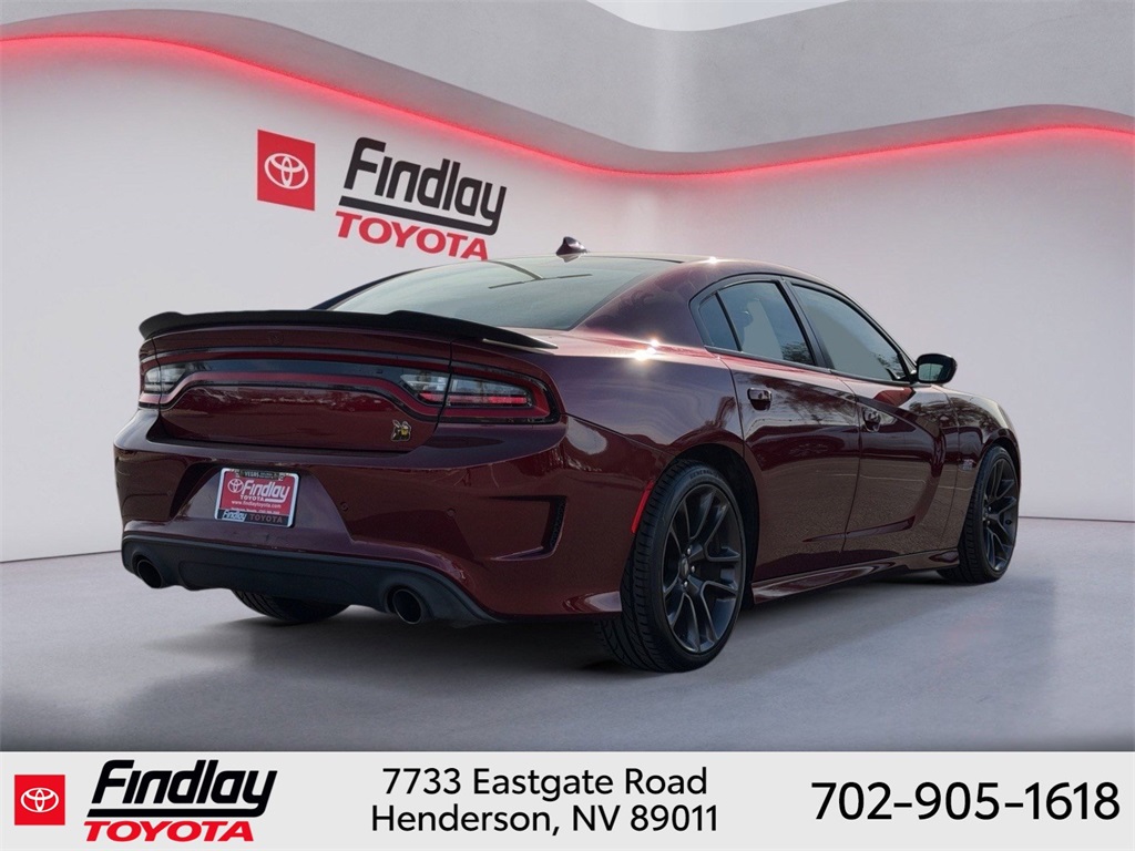 Looking for the best quality used cars near Las Vegas? Findlay Toyota of Henderson is your top destination. As the premier dealership in Nevada, we offer an extensive selection of top-notch pre-owned vehicles, ensuring you find the perfect car to fit your needs and budget. Conveniently located at 7733 Eastgate Rd in the Valley Automall, our dealership spans 12 1⁄2 acres and features a 145,000-square-foot facility, including Nevada’s only Master Certified Toyota Service Department. Our expert sales and financing teams are dedicated to providing a hassle-free buying experience, and our state-of-the-art service center is equipped to handle everything from routine maintenance to major repairs. Our multilingual staff speaks 14 languages, making us accessible to a diverse range of customers. Beyond exceptional service, we are committed to giving back to the Henderson community through initiatives like Toys for Tots and the Las Vegas Rescue Mission. Discover why Findlay Toyota of Henderson is the trusted choice for quality used cars and exceptional service. Visit us today and drive home in your dream car! This Dodge Charger is equipped with the following equipment: Quick Order Package 21W, Black Cloth, 4-Wheel Disc Brakes, 6 Speakers, ABS brakes, Air Conditioning, Alloy wheels, AM/FM radio: SiriusXM, Anti-whiplash front head restraints, Apple CarPlay/Android Auto, Auto-dimming Rear-View mirror, Automatic temperature control, Brake assist, Bumpers: body-color, Cloth Performance Seats w/Bee Logo, Compass, Delay-off headlights, Driver door bin, Driver vanity mirror, Dual front impact airbags, Dual front side impact airbags, Electronic Stability Control, Emergency communication system: SiriusXM Guardian, Four wheel independent suspension, Front anti-roll bar, Front Bucket Seats, Front Center Armrest, Front dual zone A/C, Front fog lights, Front License Plate Bracket, Front reading lights, Fully automatic headlights, Garage door transmitter: HomeLink, Heated door mirrors, Heated front seats, Heated steering wheel, Illuminated entry, Knee airbag, Leather Shift Knob, Low tire pressure warning, Occupant sensing airbag, Outside temperature display, Overhead airbag, Overhead console, Panic alarm, ParkView Rear Back-Up Camera, Passenger door bin, Passenger vanity mirror, Power door mirrors, Power driver seat, Power steering, Power windows, Radio data system, Radio: Uconnect 4C w/8.4" Display, Rear anti-roll bar, Rear reading lights, Rear seat center armrest, Rear window defroster, Remote keyless entry, Security system, Speed control, Speed-Sensitive Wipers, Split folding rear seat, Spoiler, Sport steering wheel, Steering wheel mounted audio controls, Tachometer, Telescoping steering wheel, Tilt steering wheel, Traction control, Trip computer, Variably intermittent wipers, and Wheels: 20" x 9" Lo Gloss Granite Crystal. ** This 2021 Dodge Charger is equipped with SRT HEMI 6.4L V8 MDS RWD**, ** and this Charger is trimmed in Octane Red Pearlcoat with Black interior**, Black Cloth.