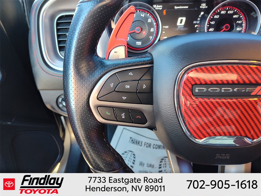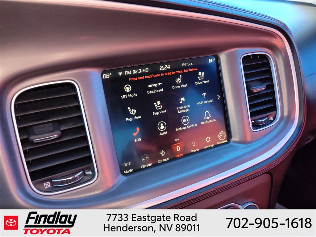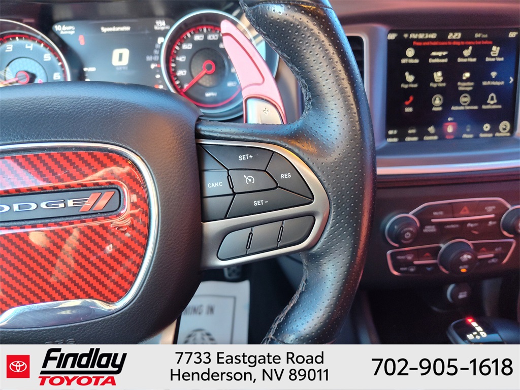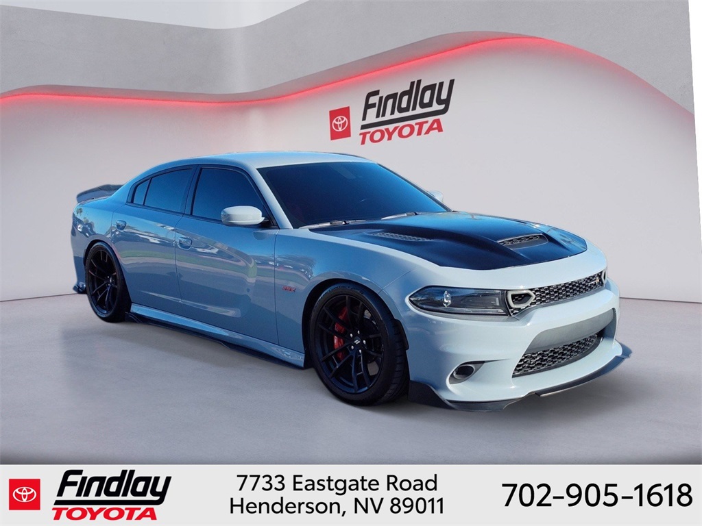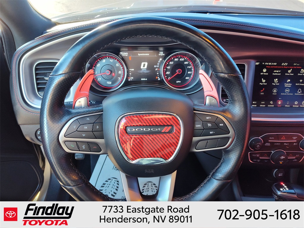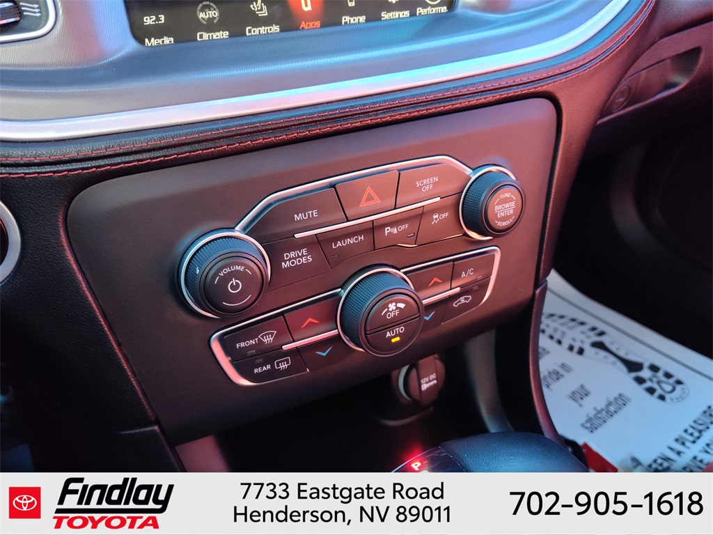 Looking for the best quality used cars near Las Vegas? Findlay Toyota of Henderson is your top destination. As the premier dealership in Nevada, we offer an extensive selection of top-notch pre-owned vehicles, ensuring you find the perfect car to fit your needs and budget. Conveniently located at 7733 Eastgate Rd in the Valley Automall, our dealership spans 12 1⁄2 acres and features a 145,000-square-foot facility, including Nevada’s only Master Certified Toyota Service Department. Our expert sales and financing teams are dedicated to providing a hassle-free buying experience, and our state-of-the-art service center is equipped to handle everything from routine maintenance to major repairs. Our multilingual staff speaks 14 languages, making us accessible to a diverse range of customers. Beyond exceptional service, we are committed to giving back to the Henderson community through initiatives like Toys for Tots and the Las Vegas Rescue Mission. Discover why Findlay Toyota of Henderson is the trusted choice for quality used cars and exceptional service. Visit us today and drive home in your dream car! This Dodge Charger is equipped with the following equipment: Dynamics Package (All Speed Traction Control, Brembo 6-Pot Fixed Front Caliper Brakes, Flat-Bottom Steering Wheel, and Rhombi 2-Pc Wheel Center Cap), Plus Group (Auto Adjust In Reverse Exterior Mirrors, Auto-Dimming Exterior Driver Mirror, Black-Edged Premium Floormats, Blind Spot & Cross Path Detection, Blind Spot Memory/Power/Heat Mirror, Body Color Exterior Mirrors, Driver & Passenger Lower LED Lamps, Exterior Mirrors Courtesy Lamps, Exterior Mirrors w/Heating Element, Front Overhead LED Lighting, Heated 2nd Row Seats, Heated Front Seats, Illuminated Rear Cupholders, Power 2-Way Driver Lumbar Adjust, Power 2-Way Passenger Lumbar Adjust, Power Front Driver/Passenger Seats, Power Tilt/Telescope Steering Column, Premium-Stitched Dash Panel, Radio/Driver Seat/Mirrors Memory, Rear Seat Armrest w/Storage Cupholder, Scat Pack Logo Nappa/Alcantara Seat, and Ventilated Front Seats), Quick Order Package 21W Scat Pack, Ruby Red/Black Artificial Leather, 4-Wheel Disc Brakes, 6 Speakers, ABS brakes, Air Conditioning, Alloy wheels, AM/FM radio: SiriusXM, Anti-whiplash front head restraints, Apple CarPlay, Apple CarPlay/Android Auto, Auto-dimming Rear-View mirror, Automatic temperature control, Brake assist, Brake Calipers - Red, Bumpers: body-color, Cloth Performance Seats w/Heat, Compass, Delay-off headlights, Driver door bin, Driver vanity mirror, Dual front impact airbags, Dual front side impact airbags, Electronic Stability Control, Emergency communication system: SiriusXM Guardian, Four wheel independent suspension, Front anti-roll bar, Front Bucket Seats, Front Center Armrest, Front dual zone A/C, Front fog lights, Front License Plate Bracket, Front reading lights, Fully automatic headlights, Garage door transmitter: HomeLink, Google Android Auto, GPS Antenna Input, Heated door mirrors, Heated front seats, Heated steering wheel, Illuminated entry, Integrated Center Stack Radio, Integrated Voice Command w/Bluetooth, Knee airbag, Leather Shift Knob, Low tire pressure warning, Media Hub (2 USB, AUX), Occupant sensing airbag, Outside temperature display, Overhead airbag, Overhead console, Panic alarm, ParkView Rear Back-Up Camera, Passenger door bin, Passenger vanity mirror, Power door mirrors, Power driver seat, Power steering, Power windows, Radio: Uconnect 4C w/8.4" Display, Rear anti-roll bar, Rear reading lights, Rear seat center armrest, Rear window defroster, Remote keyless entry, Security system, Speed control, Speed-Sensitive Wipers, Split folding rear seat, Spoiler, Sport steering wheel, Steering wheel mounted audio controls, Tachometer, Telescoping steering wheel, T