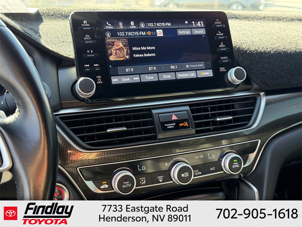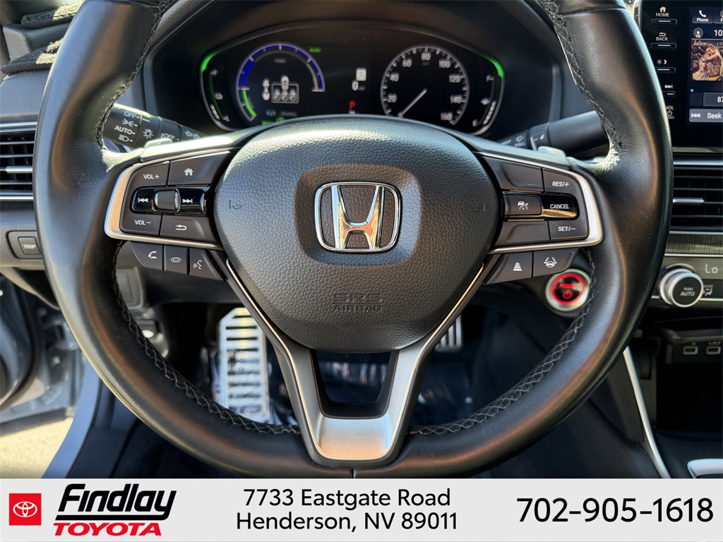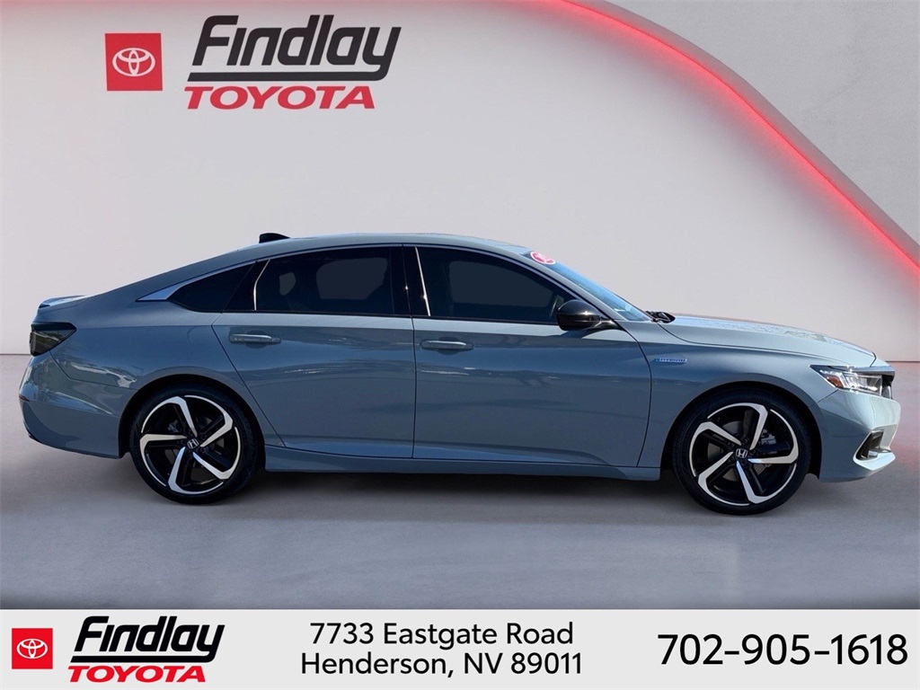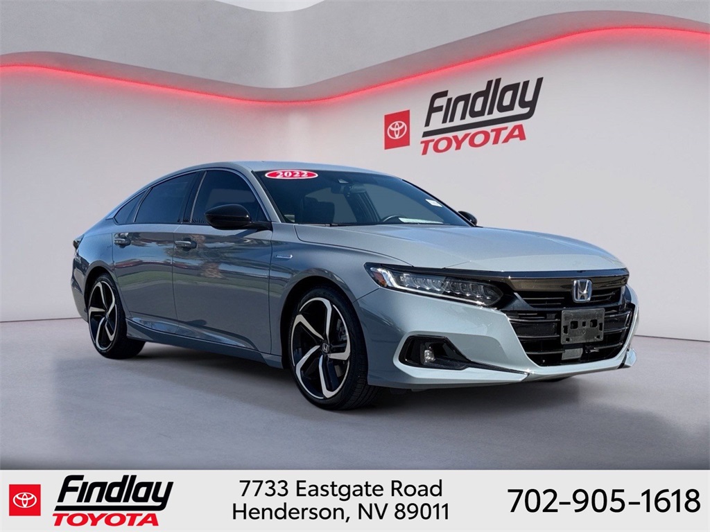 Looking for the best quality used cars near Las Vegas? Findlay Toyota of Henderson is your top destination. As the premier dealership in Nevada, we offer an extensive selection of top-notch pre-owned vehicles, ensuring you find the perfect car to fit your needs and budget. Conveniently located at 7733 Eastgate Rd in the Valley Automall, our dealership spans 12 1⁄2 acres and features a 145,000-square-foot facility, including Nevada’s only Master Certified Toyota Service Department. Our expert sales and financing teams are dedicated to providing a hassle-free buying experience, and our state-of-the-art service center is equipped to handle everything from routine maintenance to major repairs. Our multilingual staff speaks 14 languages, making us accessible to a diverse range of customers. Beyond exceptional service, we are committed to giving back to the Henderson community through initiatives like Toys for Tots and the Las Vegas Rescue Mission. Discover why Findlay Toyota of Henderson is the trusted choice for quality used cars and exceptional service. Visit us today and drive home in your dream car! This Honda Accord Hybrid is equipped with the following equipment: 2.0L 4-Cylinder DOHC 16V i-VTEC, 4-Wheel Disc Brakes, 8 Speakers, ABS brakes, Adaptive Cruise Control: Adaptive Cruise Control (ACC) with Low-Speed Follow, Air Conditioning, Alloy wheels, AM/FM radio: SiriusXM, Apple CarPlay/Android Auto, Auto High-beam Headlights, Automatic temperature control, Brake assist, Bumpers: body-color, Delay-off headlights, Driver door bin, Driver vanity mirror, Dual front impact airbags, Dual front side impact airbags, Electronic Stability Control, Emergency communication system: HondaLink, Exterior Parking Camera Rear, Fabric w/Synthetic Leather Seat Trim, Forward collision: Collision Mitigation Braking System (CMBS) + FCW mitigation, Four wheel independent suspension, Front anti-roll bar, Front Bucket Seats, Front Center Armrest, Front dual zone A/C, Front fog lights, Front reading lights, Fully automatic headlights, Heated door mirrors, Heated front seats, Illuminated entry, Knee airbag, Lane Departure Warning System, Leather steering wheel, Low tire pressure warning, Occupant sensing airbag, Outside temperature display, Overhead airbag, Overhead console, Panic alarm, Passenger door bin, Passenger vanity mirror, Power door mirrors, Power driver seat, Power steering, Power windows, Radio data system, Radio: 180-Watt HD Audio System, Rear anti-roll bar, Rear seat center armrest, Rear window defroster, Remote keyless entry, Security system, Speed control, Speed-sensing steering, Speed-Sensitive Wipers, Split folding rear seat, Steering wheel mounted audio controls, Telescoping steering wheel, Tilt steering wheel, Traction control, Trip computer, Variably intermittent wipers, and Wheels: 19" Machine-Finished Alloy w/Black Inserts. ** This 2022 Honda Accord Hybrid is equipped with 2.0L 4-Cylinder DOHC 16V i-VTEC FWD**, ** and this Accord Hybrid is trimmed in Gray Pearl with Black interior**, 2.0L 4-Cylinder DOHC 16V i-VTEC.