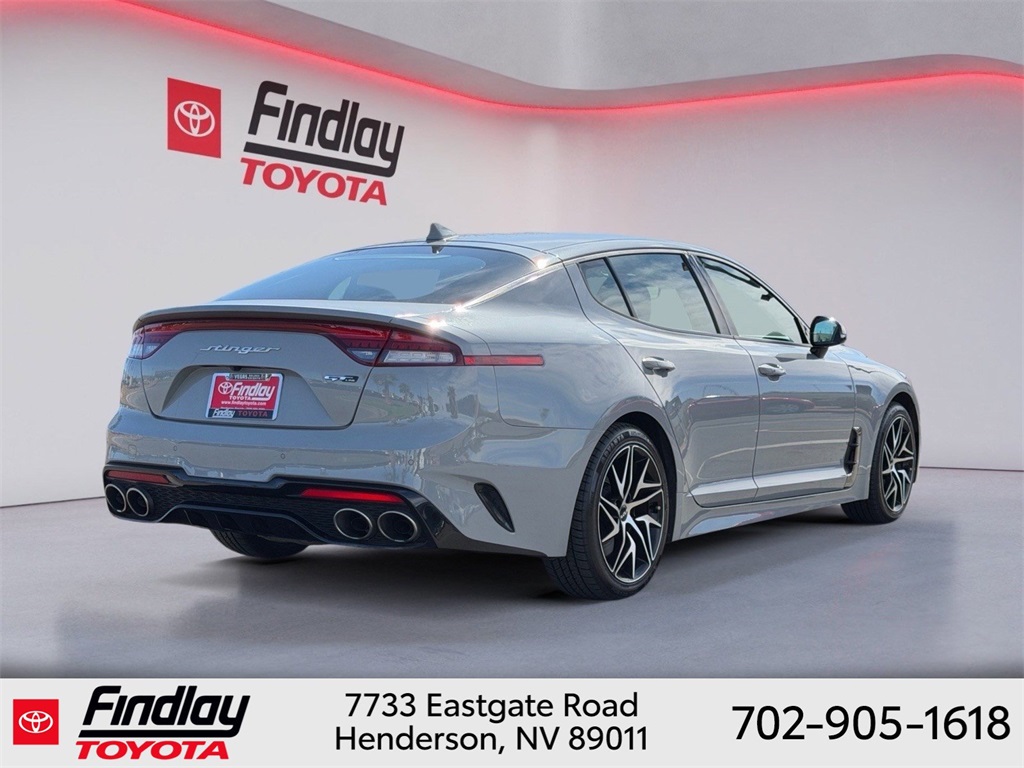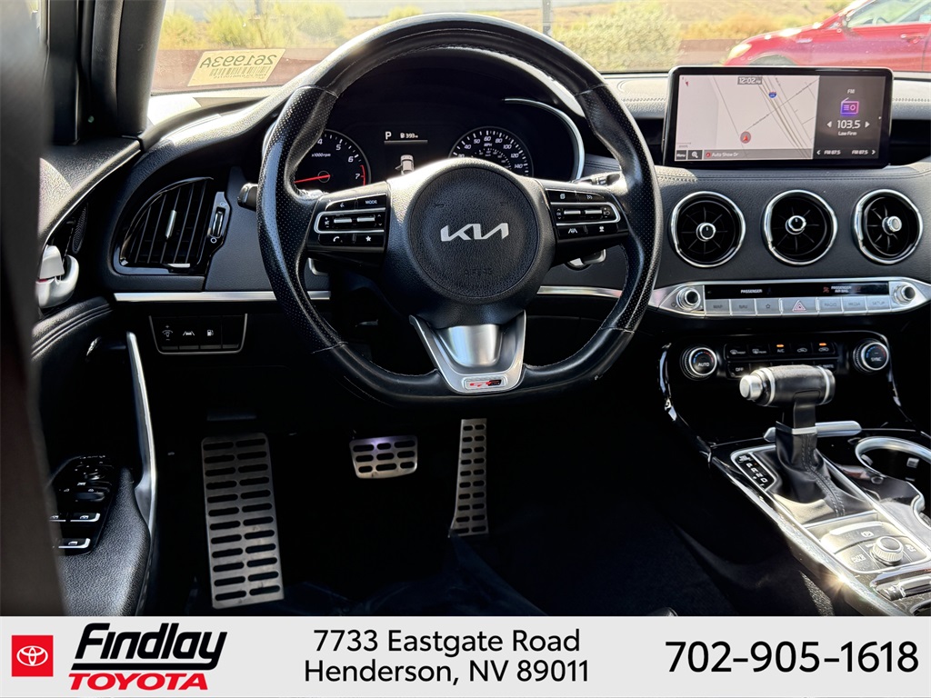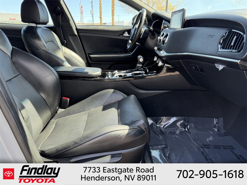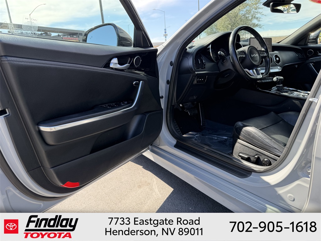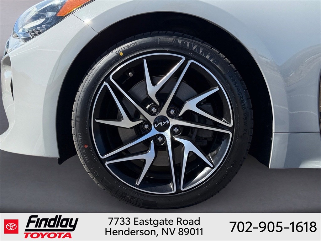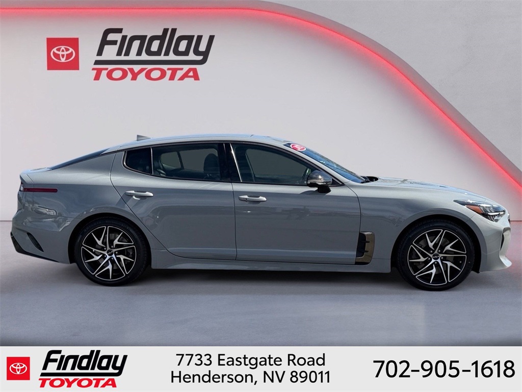 Looking for the best quality used cars near Las Vegas? Findlay Toyota of Henderson is your top destination. As the premier dealership in Nevada, we offer an extensive selection of top-notch pre-owned vehicles, ensuring you find the perfect car to fit your needs and budget. Conveniently located at 7733 Eastgate Rd in the Valley Automall, our dealership spans 12 1⁄2 acres and features a 145,000-square-foot facility, including Nevada’s only Master Certified Toyota Service Department. Our expert sales and financing teams are dedicated to providing a hassle-free buying experience, and our state-of-the-art service center is equipped to handle everything from routine maintenance to major repairs. Our multilingual staff speaks 14 languages, making us accessible to a diverse range of customers. Beyond exceptional service, we are committed to giving back to the Henderson community through initiatives like Toys for Tots and the Las Vegas Rescue Mission. Discover why Findlay Toyota of Henderson is the trusted choice for quality used cars and exceptional service. Visit us today and drive home in your dream car! This Kia Stinger is equipped with the following equipment: 4-Wheel Disc Brakes, 9 Speakers, ABS brakes, Air Conditioning, Alloy wheels, AM/FM radio: SiriusXM, Anti-whiplash front head restraints, Apple CarPlay & Android Auto, Auto High-beam Headlights, Auto-dimming Rear-View mirror, Automatic temperature control, Brake assist, Bumpers: body-color, Carpeted Floor Mat, Delay-off headlights, Driver door bin, Driver vanity mirror, Dual front impact airbags, Dual front side impact airbags, Electronic Stability Control, Emergency communication system: UVO eServices, Exterior Parking Camera Rear, Four wheel independent suspension, Front anti-roll bar, Front Bucket Seats, Front Center Armrest, Front dual zone A/C, Front reading lights, Fully automatic headlights, Heated door mirrors, Heated Front Bucket Seats, Heated front seats, Illuminated entry, Knee airbag, Leather Seat Trim, Low tire pressure warning, Navigation System, Occupant sensing airbag, Outside temperature display, Overhead airbag, Overhead console, Panic alarm, Passenger door bin, Passenger vanity mirror, Power door mirrors, Power driver seat, Power steering, Power windows, Radio: AM/FM/HD Audio System, Rain sensing wipers, Rear air conditioning, Rear anti-roll bar, Rear seat center armrest, Rear window defroster, Remote keyless entry, Security system, Smart Key w/ Push Button and Remote Start, Speed control, Speed-Sensitive Wipers, Split folding rear seat, Sport steering wheel, Steering wheel mounted audio controls, Tachometer, Telescoping steering wheel, Tilt steering wheel, Traction control, Trip computer, Turn signal indicator mirrors, Variably intermittent wipers, and Wheels: 8.0J x 18 Alloy. ** This 2022 Kia Stinger is equipped with I4 RWD**, ** and this Stinger is trimmed in Ceramic Silver with Black interior**.