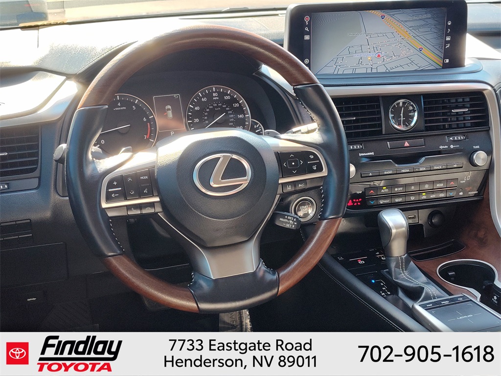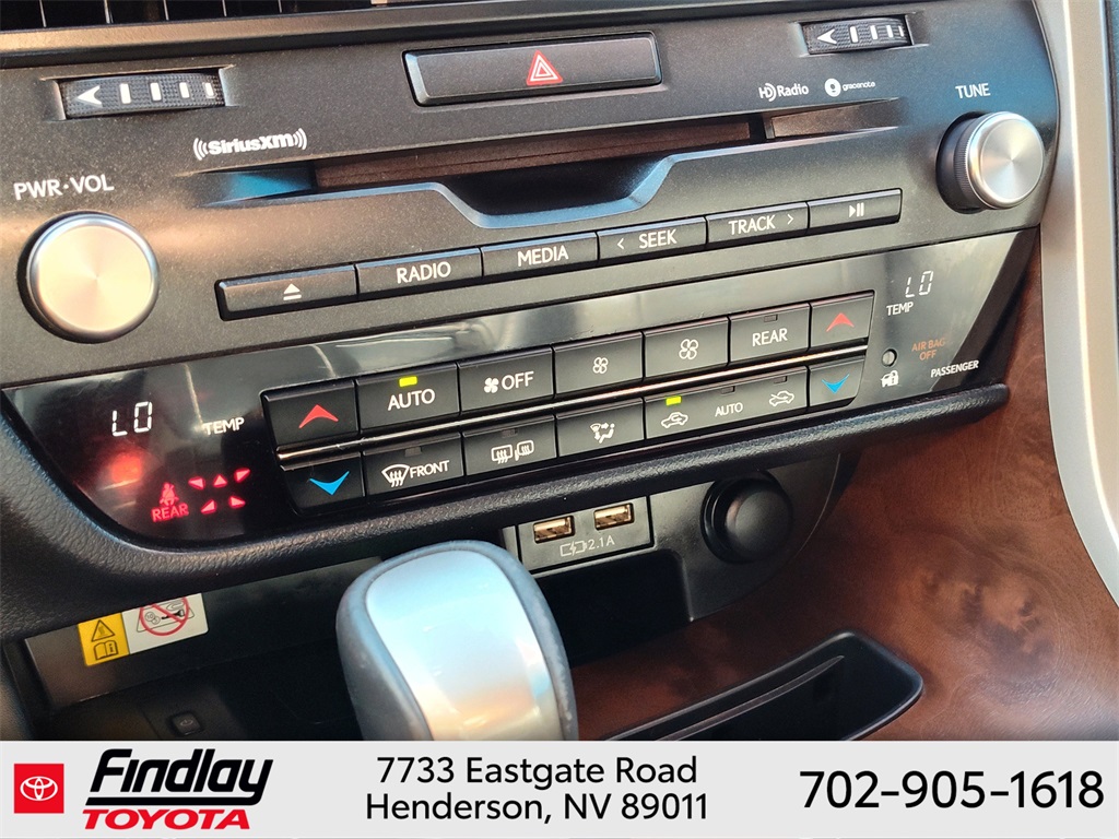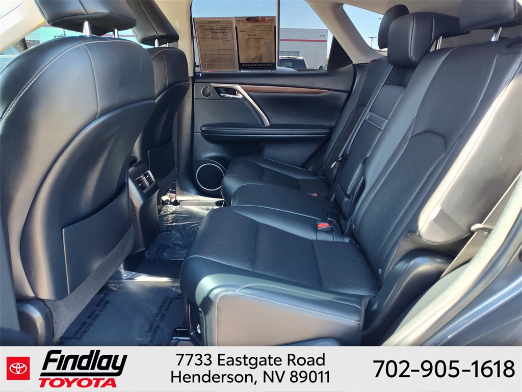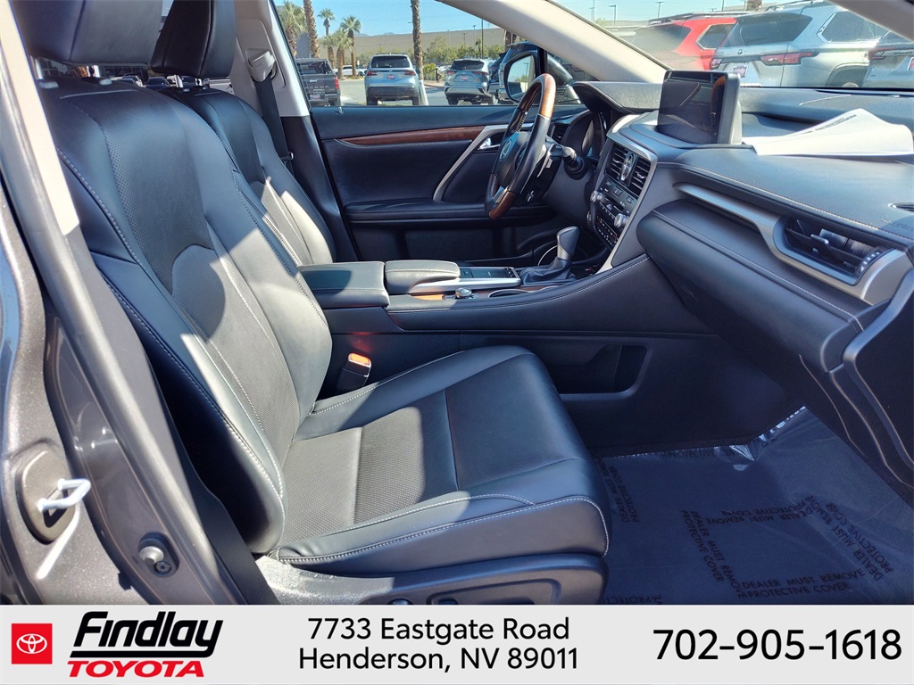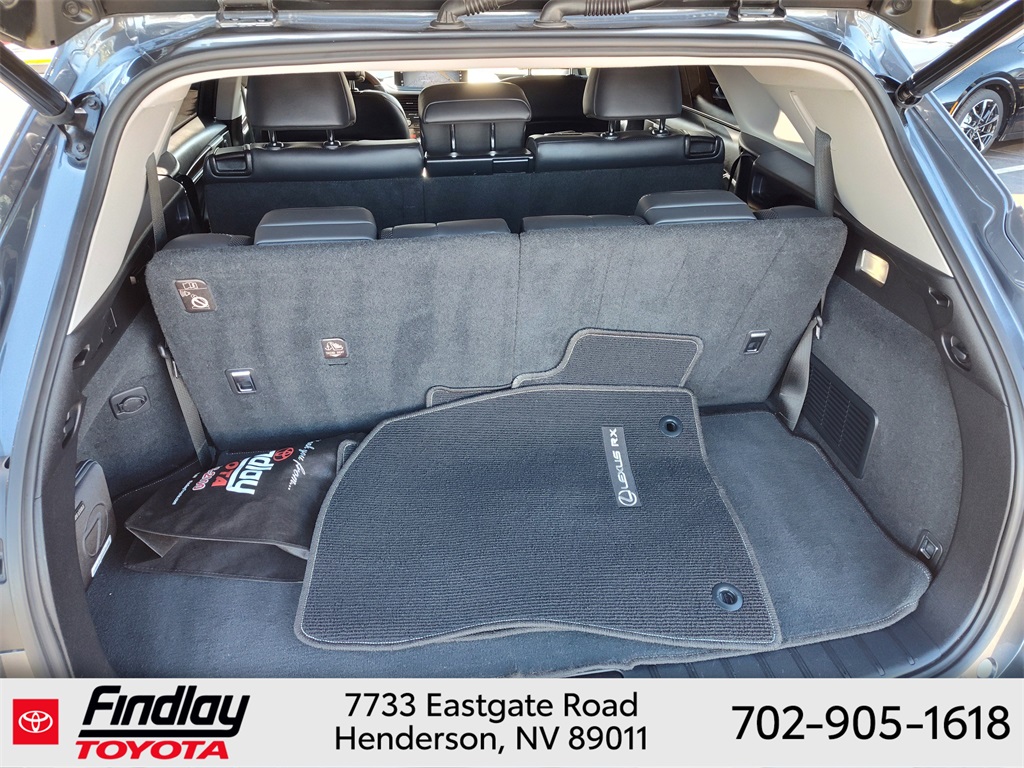 Looking for the best quality used cars near Las Vegas? Findlay Toyota of Henderson is your top destination. As the premier dealership in Nevada, we offer an extensive selection of top-notch pre-owned vehicles, ensuring you find the perfect car to fit your needs and budget. Conveniently located at 7733 Eastgate Rd in the Valley Automall, our dealership spans 12 1⁄2 acres and features a 145,000-square-foot facility, including Nevada’s only Master Certified Toyota Service Department. Our expert sales and financing teams are dedicated to providing a hassle-free buying experience, and our state-of-the-art service center is equipped to handle everything from routine maintenance to major repairs. Our multilingual staff speaks 14 languages, making us accessible to a diverse range of customers. Beyond exceptional service, we are committed to giving back to the Henderson community through initiatives like Toys for Tots and the Las Vegas Rescue Mission. Discover why Findlay Toyota of Henderson is the trusted choice for quality used cars and exceptional service. Visit us today and drive home in your dream car! This Lexus RX is equipped with the following equipment: Black w/Blue w/NuLuxe Seat Trim, 3.33 Axle Ratio, 3rd row seats: split-bench, 4-Wheel Disc Brakes, 9 Speakers, ABS brakes, Air Conditioning, Alloy wheels, AM/FM radio: SiriusXM, Anti-whiplash front head restraints, Apple CarPlay/Android Auto, Auto High-beam Headlights, Auto-dimming door mirrors, Auto-dimming Rear-View mirror, Automatic temperature control, Brake assist, Bumpers: body-color, CD player, Compass, Delay-off headlights, Driver door bin, Driver vanity mirror, Dual front impact airbags, Dual front side impact airbags, Electronic Stability Control, Emergency communication system, Exterior Parking Camera Rear, Four wheel independent suspension, Front anti-roll bar, Front Bucket Seats, Front Center Armrest, Front dual zone A/C, Front reading lights, Fully automatic headlights, Garage door transmitter: HomeLink, Genuine wood console insert, Genuine wood door panel insert, Heated door mirrors, Illuminated entry, Knee airbag, Leather Shift Knob, Leather steering wheel, Low tire pressure warning, NuLuxe Seat Trim, Occupant sensing airbag, Outside temperature display, Overhead airbag, Overhead console, Panic alarm, Passenger door bin, Passenger vanity mirror, Power door mirrors, Power driver seat, Power Liftgate, Power passenger seat, Power steering, Power windows, Radio data system, Radio: AM/FM/CD Lexus Display Audio, Rain sensing wipers, Rear air conditioning, Rear anti-roll bar, Rear reading lights, Rear seat center armrest, Rear side impact airbag, Rear window defroster, Rear window wiper, Reclining 3rd row seat, Remote keyless entry, Roof rack: rails only, Security system, Speed control, Speed-sensing steering, Split folding rear seat, Spoiler, Steering wheel mounted audio controls, Tachometer, Telescoping steering wheel, Tilt steering wheel, Traction control, Trip computer, Turn signal indicator mirrors, Variably intermittent wipers, and Wheels: 18" x 8.0 Split-5-Spoke Alloy. ** This 2022 Lexus RX is equipped with 3.5L V6 DOHC 24V FWD**, ** and this RX is trimmed in Cloudburst Gray with Black interior**, Black w/Blue w/NuLuxe Seat Trim.
