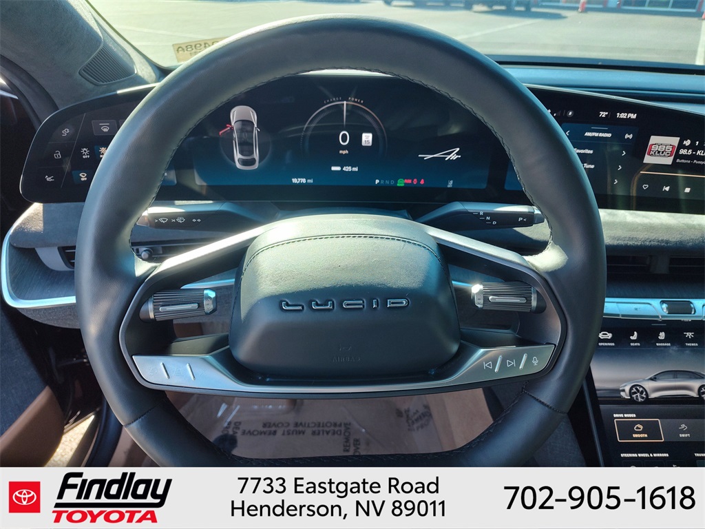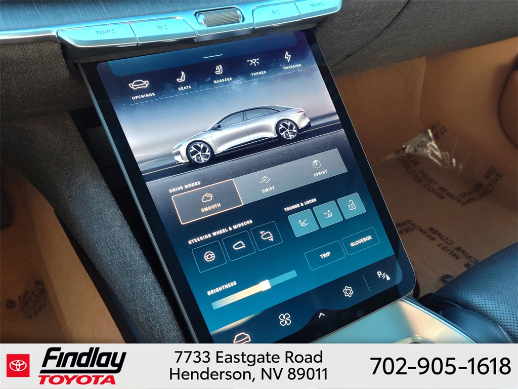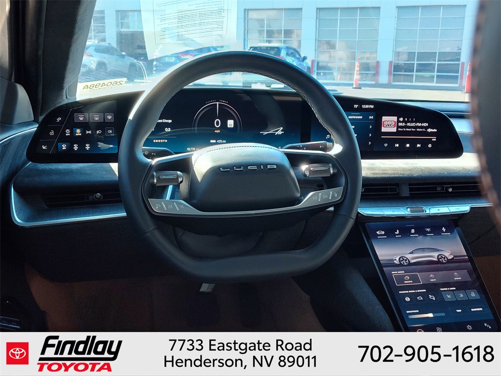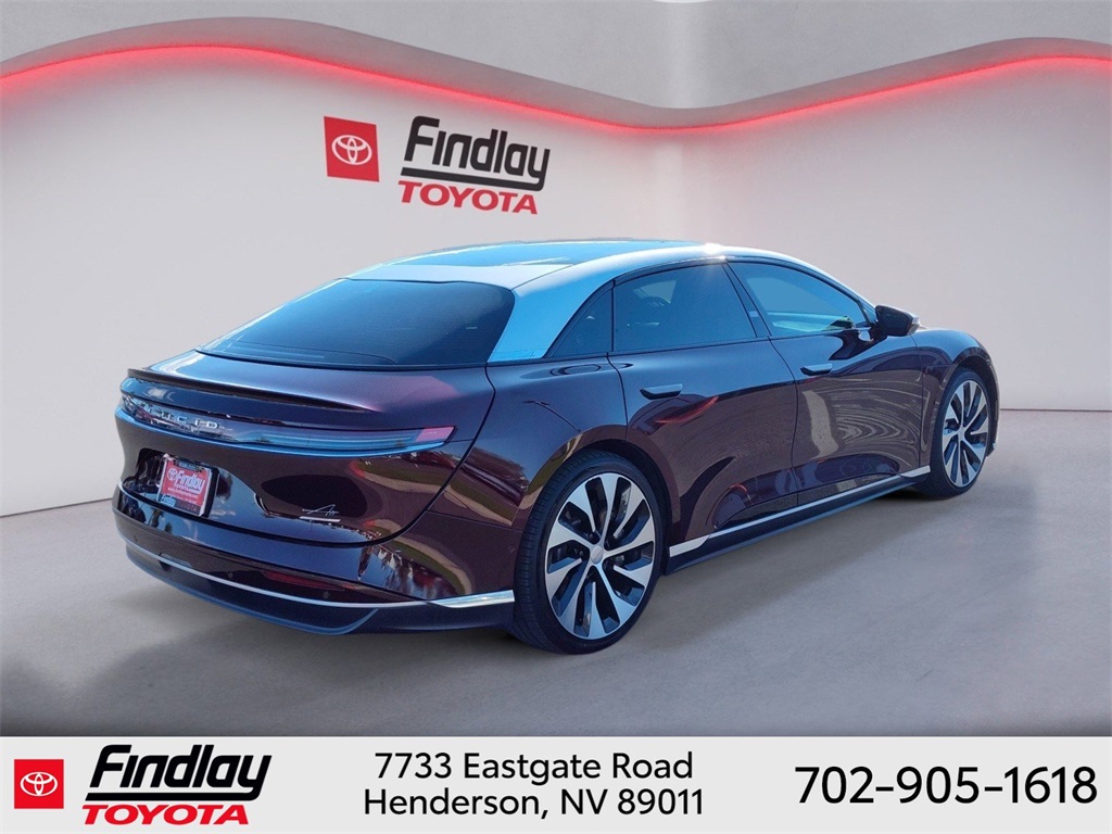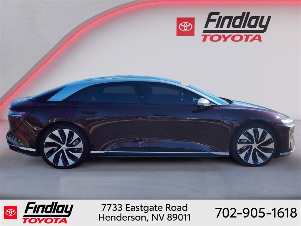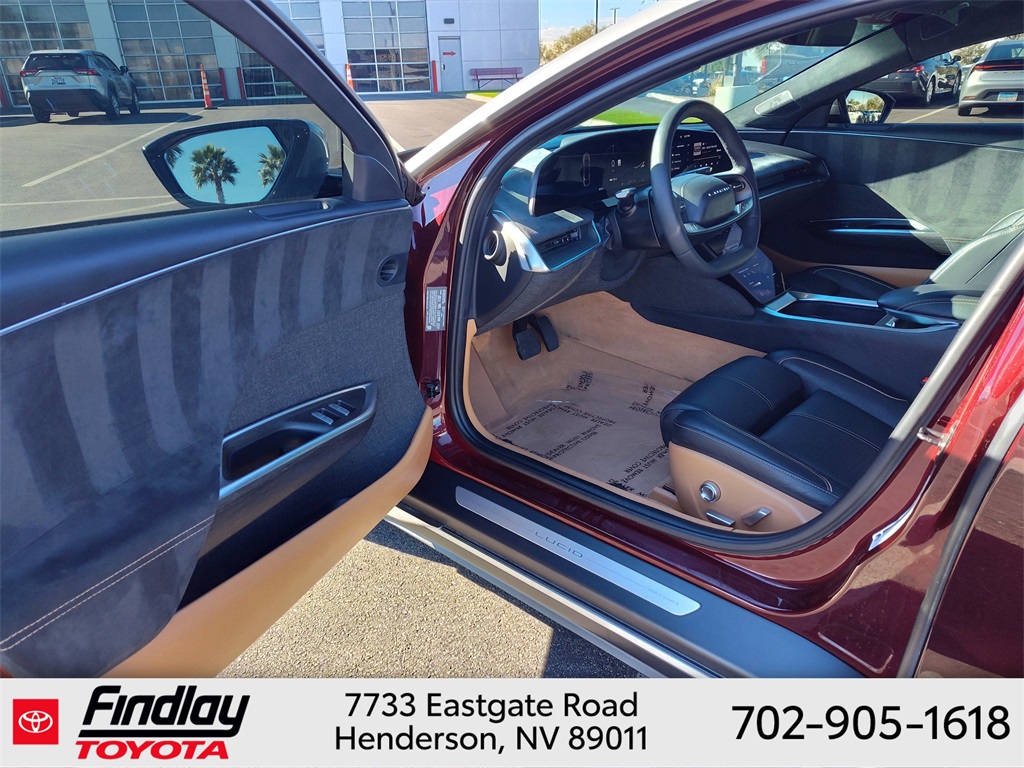 Looking for the best quality used cars near Las Vegas? Findlay Toyota of Henderson is your top destination. As the premier dealership in Nevada, we offer an extensive selection of top-notch pre-owned vehicles, ensuring you find the perfect car to fit your needs and budget. Conveniently located at 7733 Eastgate Rd in the Valley Automall, our dealership spans 12 1⁄2 acres and features a 145,000-square-foot facility, including Nevada’s only Master Certified Toyota Service Department. Our expert sales and financing teams are dedicated to providing a hassle-free buying experience, and our state-of-the-art service center is equipped to handle everything from routine maintenance to major repairs. Our multilingual staff speaks 14 languages, making us accessible to a diverse range of customers. Beyond exceptional service, we are committed to giving back to the Henderson community through initiatives like Toys for Tots and the Las Vegas Rescue Mission. Discover why Findlay Toyota of Henderson is the trusted choice for quality used cars and exceptional service. Visit us today and drive home in your dream car! This Lucid Air is equipped with the following equipment: 21 Speakers, 4-Wheel Disc Brakes, ABS brakes, Adaptive suspension, Air Conditioning, Alloy wheels, AM/FM radio, Apple CarPlay/Android Auto, Audio memory, Auto High-beam Headlights, Auto-dimming door mirrors, Auto-dimming Rear-View mirror, Automatic temperature control, Brake assist, Bumpers: body-color, Door auto-latch, Driver door bin, Driver vanity mirror, Dual front impact airbags, Dual front side impact airbags, Electronic Stability Control, Extended Nappa Full-Grain Leather Seat Trim, Exterior Parking Camera Rear, Four wheel independent suspension, Front anti-roll bar, Front Bucket Seats, Front Center Armrest, Front dual zone A/C, Front reading lights, Fully automatic headlights, Garage door transmitter, Genuine wood console insert, Genuine wood dashboard insert, Genuine wood door panel insert, Head restraints memory, Heated door mirrors, Heated front seats, Heated rear seats, Heated steering wheel, Illuminated entry, Knee airbag, Leather steering wheel, Low tire pressure warning, Memory seat, Navigation System, Occupant sensing airbag, Overhead airbag, Panic alarm, Passenger door bin, Passenger vanity mirror, Power adjustable front head restraints, Power door mirrors, Power driver seat, Power passenger seat, Power steering, Power windows, Radio data system, Radio: AM/FM/HD, Rain sensing wipers, Rear air conditioning, Rear anti-roll bar, Rear dual zone A/C, Rear fog lights, Rear reading lights, Rear seat center armrest, Rear Window Blind, Rear window defroster, Remote keyless entry, Security system, Speed control, Speed-sensing steering, Split folding rear seat, Steering wheel memory, Steering wheel mounted audio controls, Surreal Sound Pro, Telescoping steering wheel, Tilt steering wheel, Traction control, Trip computer, Turn signal indicator mirrors, Variably intermittent wipers, Ventilated front seats, and Wheels: 21" Aero Blade Cast Alloy. ** This 2022 Lucid Air is equipped with Electric Motor AWD**, ** and this Air is trimmed in Red with Lucid Black & Ceramic interior**.