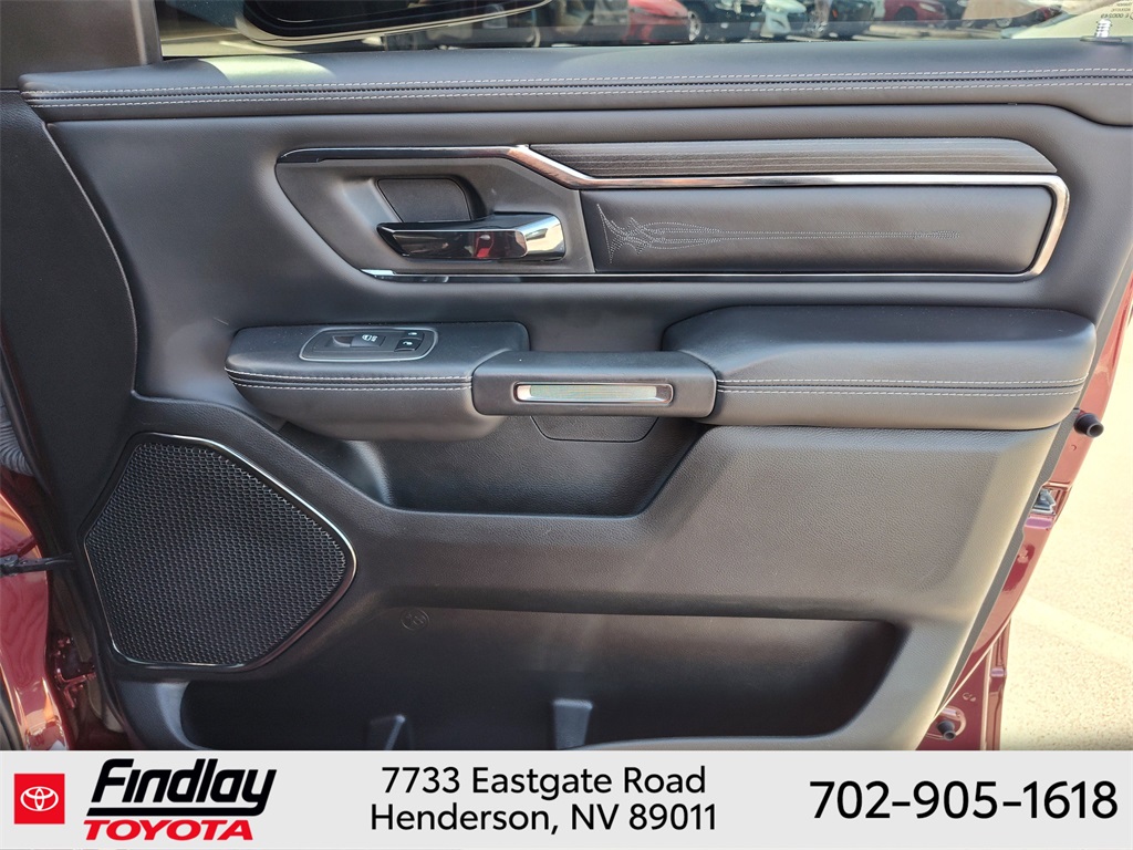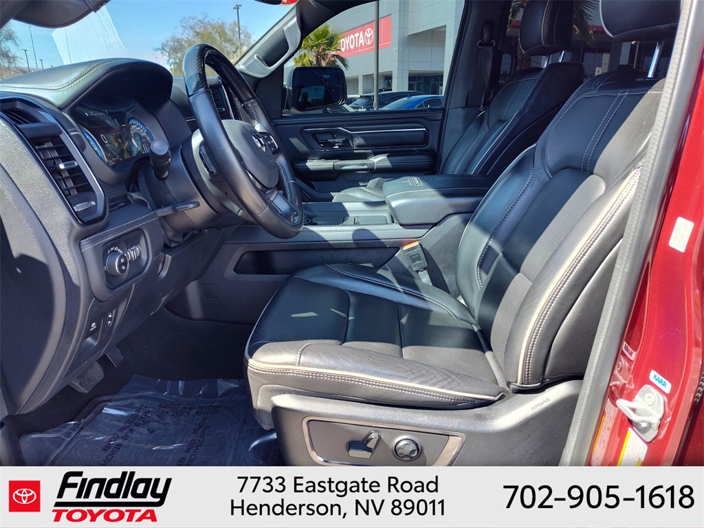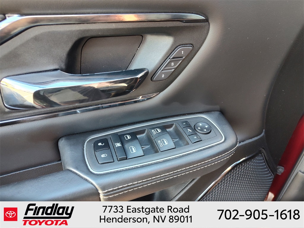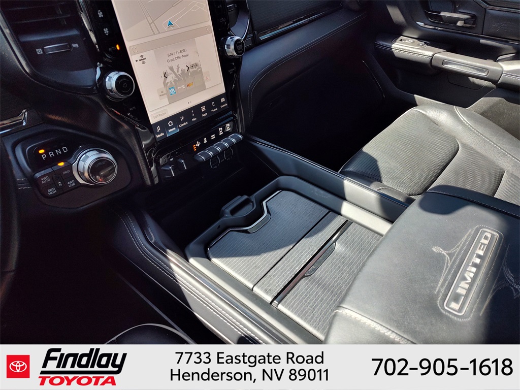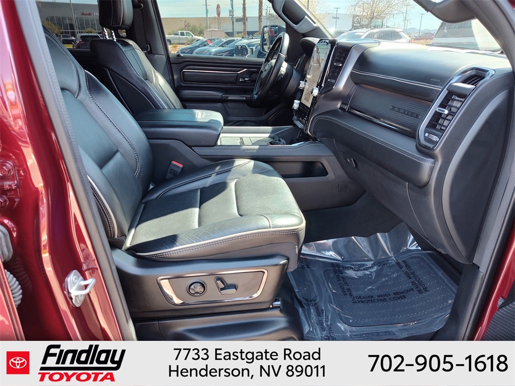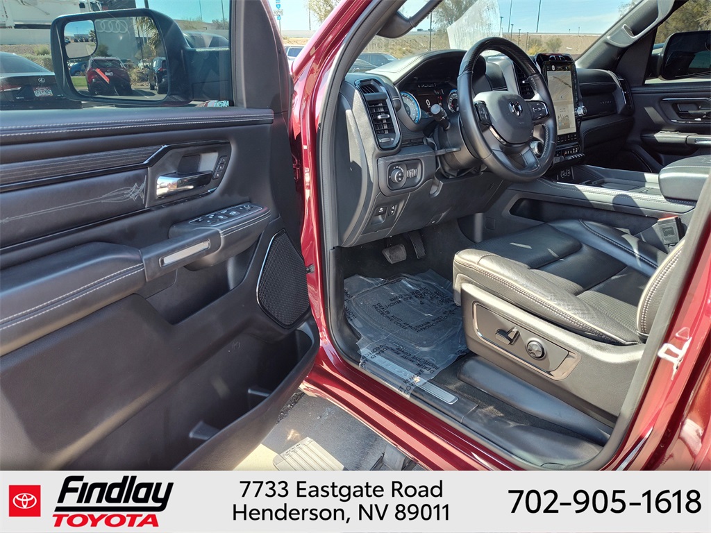 Looking for the best quality used cars near Las Vegas? Findlay Toyota of Henderson is your top destination. As the premier dealership in Nevada, we offer an extensive selection of top-notch pre-owned vehicles, ensuring you find the perfect car to fit your needs and budget. Conveniently located at 7733 Eastgate Rd in the Valley Automall, our dealership spans 12 1⁄2 acres and features a 145,000-square-foot facility, including Nevada’s only Master Certified Toyota Service Department. Our expert sales and financing teams are dedicated to providing a hassle-free buying experience, and our state-of-the-art service center is equipped to handle everything from routine maintenance to major repairs. Our multilingual staff speaks 14 languages, making us accessible to a diverse range of customers. Beyond exceptional service, we are committed to giving back to the Henderson community through initiatives like Toys for Tots and the Las Vegas Rescue Mission. Discover why Findlay Toyota of Henderson is the trusted choice for quality used cars and exceptional service. Visit us today and drive home in your dream car! This Ram 1500 is equipped with the following equipment: Body Color Bumper Group, Quick Order Package 25M Limited, 10 Speakers, 33 Gallon Fuel Tank, 4 Way Front Headrests, 4-Wheel Disc Brakes, 48V Belt Starter Generator, ABS brakes, Active Noise Control System, Adjustable pedals, Air Conditioning, Alloy wheels, AM/FM radio: SiriusXM with 360L, Anti-Spin Differential Rear Axle, Apple CarPlay/Android Auto, Audio memory, Auto High-beam Headlights, Auto-dimming door mirrors, Auto-Dimming Exterior Driver Mirror, Auto-Dimming Exterior Passenger Mirror, Auto-dimming Rear-View mirror, Auto-leveling suspension, Automatic temperature control, Bodyside moldings, Brake assist, Bucket Seats, Bumpers: chrome, Chrome Exterior Mirrors, Compass, Convex Wide-Angle Mirror Insert, Delay-off headlights, Driver door bin, Driver Seat Memory, Driver vanity mirror, Dual front impact airbags, Dual front side impact airbags, Dual Rear Exhaust w/Bright Tips, Electronic Stability Control, Exterior Mirrors Courtesy Lamps, Exterior Mirrors w/Heating Element, Exterior Mirrors w/Memory, Exterior Mirrors w/Supplemental Signals, Front anti-roll bar, Front Bucket Seats, Front Center Armrest w/Storage, Front dual zone A/C, Front fog lights, Front License Plate Bracket, Front reading lights, Front Seat Back Map Pockets, Front wheel independent suspension, Full Length Premium Floor Console, Fully automatic headlights, Garage door transmitter, Genuine wood console insert, Genuine wood dashboard insert, Genuine wood door panel insert, Heated door mirrors, Heated Front Seats, Heated front seats, Heated rear seats, Heated Second Row Seats, Heated Steering Wheel, Heated steering wheel, Heavy-Duty Engine Cooling, HEMI Badge, Illuminated entry, Leather steering wheel, Low tire pressure warning, Manufacturer's Statement of Origin, Memory seat, Navigation System, Occupant sensing airbag, Outside temperature display, Overhead airbag, Overhead console, Panic alarm, ParkView Rear Back-Up Camera, Passenger door bin, Passenger vanity mirror, Pedal memory, Power 4-Way Driver Lumbar Adjust, Power 4-Way Passenger Lumbar Adjust, Power 8-Way Driver & Passenger Seats, Power door mirrors, Power driver seat, Power passenger seat, Power steering, Power windows, Power-Folding Mirrors, Premium Leather Trimmed Bucket Seats, Radio data system, Radio: Uconnect 5 Nav w/12.0" Display, Rain sensing wipers, Rear 60/40 Folding Split Recline Seat, Rear anti-roll bar, Rear seat center armrest, Rear step bumper, Rear window defroster, Remote keyless entry, Security system, Speed control, Split folding rear seat, Steering wheel mounted audio controls, Tachometer, Telescoping steering wheel, Tilt steering wheel, Tr