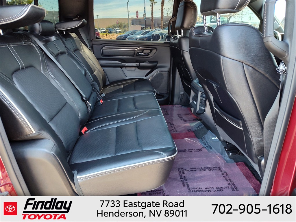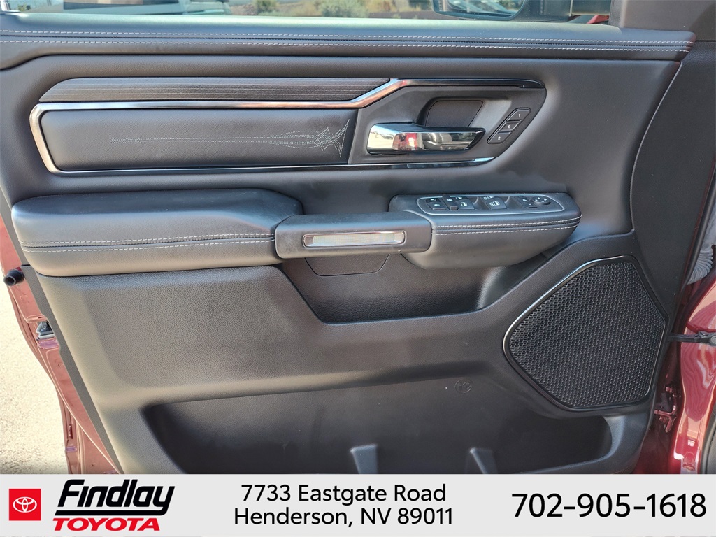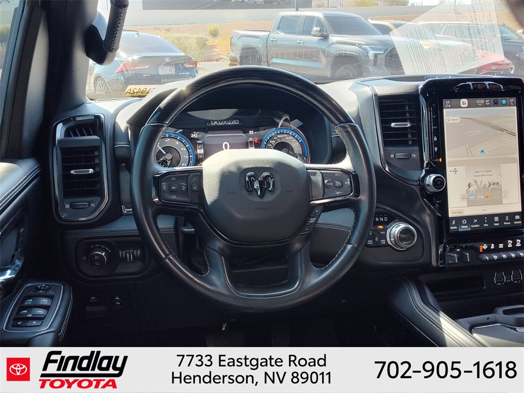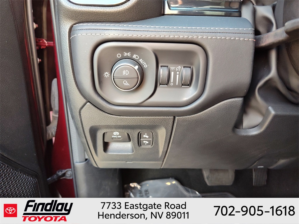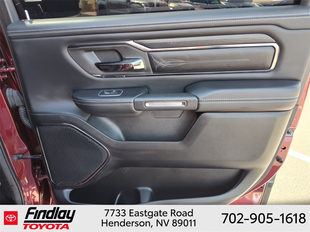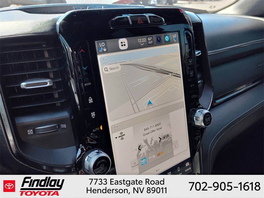 Looking for the best quality used cars near Las Vegas? Findlay Toyota of Henderson is your top destination. As the premier dealership in Nevada, we offer an extensive selection of top-notch pre-owned vehicles, ensuring you find the perfect car to fit your needs and budget. Conveniently located at 7733 Eastgate Rd in the Valley Automall, our dealership spans 12 1⁄2 acres and features a 145,000-square-foot facility, including Nevada’s only Master Certified Toyota Service Department. Our expert sales and financing teams are dedicated to providing a hassle-free buying experience, and our state-of-the-art service center is equipped to handle everything from routine maintenance to major repairs. Our multilingual staff speaks 14 languages, making us accessible to a diverse range of customers. Beyond exceptional service, we are committed to giving back to the Henderson community through initiatives like Toys for Tots and the Las Vegas Rescue Mission. Discover why Findlay Toyota of Henderson is the trusted choice for quality used cars and exceptional service. Visit us today and drive home in your dream car! This Ram 1500 is equipped with the following equipment: Body Color Bumper Group, Quick Order Package 25M Limited, 10 Speakers, 33 Gallon Fuel Tank, 4 Way Front Headrests, 4-Wheel Disc Brakes, 48V Belt Starter Generator, ABS brakes, Active Noise Control System, Adjustable pedals, Air Conditioning, Alloy wheels, AM/FM radio: SiriusXM with 360L, Anti-Spin Differential Rear Axle, Apple CarPlay/Android Auto, Audio memory, Auto High-beam Headlights, Auto-dimming door mirrors, Auto-Dimming Exterior Driver Mirror, Auto-Dimming Exterior Passenger Mirror, Auto-dimming Rear-View mirror, Auto-leveling suspension, Automatic temperature control, Bodyside moldings, Brake assist, Bucket Seats, Bumpers: chrome, Chrome Exterior Mirrors, Compass, Convex Wide-Angle Mirror Insert, Delay-off headlights, Driver door bin, Driver Seat Memory, Driver vanity mirror, Dual front impact airbags, Dual front side impact airbags, Dual Rear Exhaust w/Bright Tips, Electronic Stability Control, Exterior Mirrors Courtesy Lamps, Exterior Mirrors w/Heating Element, Exterior Mirrors w/Memory, Exterior Mirrors w/Supplemental Signals, Front anti-roll bar, Front Bucket Seats, Front Center Armrest w/Storage, Front dual zone A/C, Front fog lights, Front License Plate Bracket, Front reading lights, Front Seat Back Map Pockets, Front wheel independent suspension, Full Length Premium Floor Console, Fully automatic headlights, Garage door transmitter, Genuine wood console insert, Genuine wood dashboard insert, Genuine wood door panel insert, Heated door mirrors, Heated Front Seats, Heated front seats, Heated rear seats, Heated Second Row Seats, Heated Steering Wheel, Heated steering wheel, Heavy-Duty Engine Cooling, HEMI Badge, Illuminated entry, Leather steering wheel, Low tire pressure warning, Manufacturer's Statement of Origin, Memory seat, Navigation System, Occupant sensing airbag, Outside temperature display, Overhead airbag, Overhead console, Panic alarm, ParkView Rear Back-Up Camera, Passenger door bin, Passenger vanity mirror, Pedal memory, Power 4-Way Driver Lumbar Adjust, Power 4-Way Passenger Lumbar Adjust, Power 8-Way Driver & Passenger Seats, Power door mirrors, Power driver seat, Power passenger seat, Power steering, Power windows, Power-Folding Mirrors, Premium Leather Trimmed Bucket Seats, Radio data system, Radio: Uconnect 5 Nav w/12.0" Display, Rain sensing wipers, Rear 60/40 Folding Split Recline Seat, Rear anti-roll bar, Rear seat center armrest, Rear step bumper, Rear window defroster, Remote keyless entry, Security system, Speed control, Split folding rear seat, Steering wheel mounted audio controls, Tachometer, Telescoping steering wheel, Tilt steering wheel, Tr