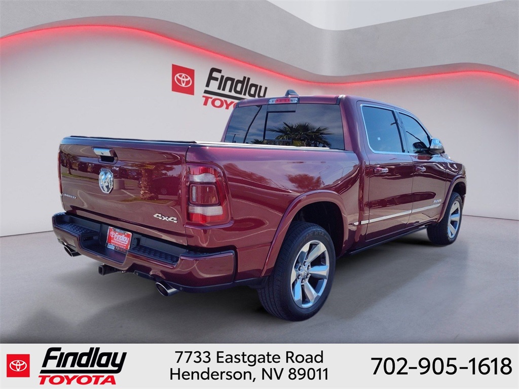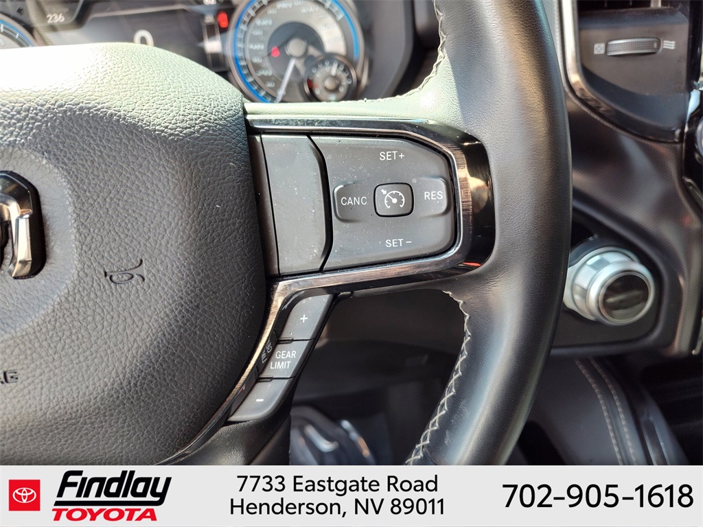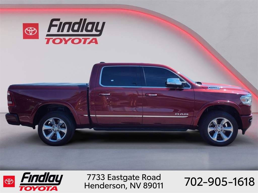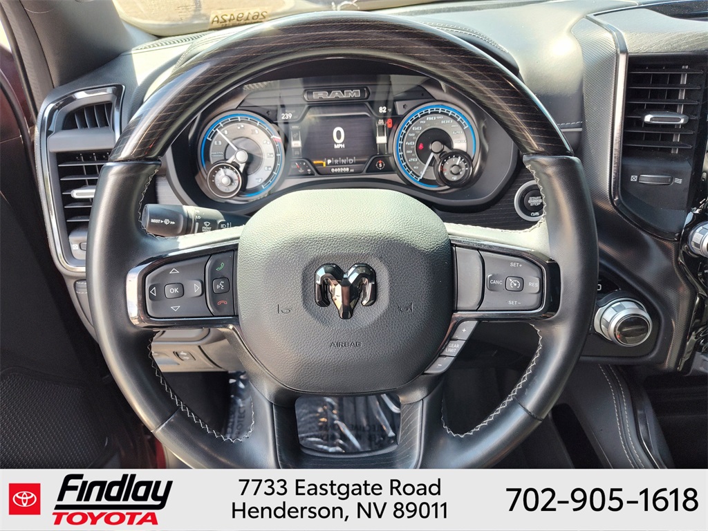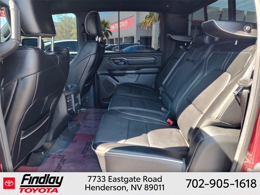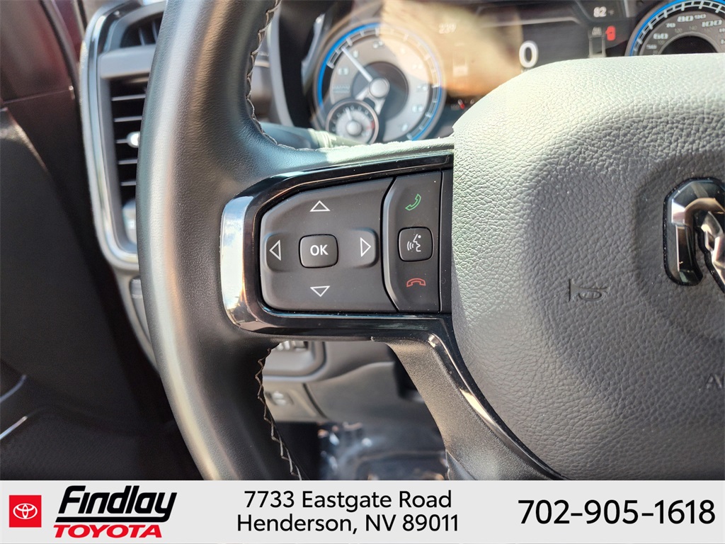 Looking for the best quality used cars near Las Vegas? Findlay Toyota of Henderson is your top destination. As the premier dealership in Nevada, we offer an extensive selection of top-notch pre-owned vehicles, ensuring you find the perfect car to fit your needs and budget. Conveniently located at 7733 Eastgate Rd in the Valley Automall, our dealership spans 12 1⁄2 acres and features a 145,000-square-foot facility, including Nevada’s only Master Certified Toyota Service Department. Our expert sales and financing teams are dedicated to providing a hassle-free buying experience, and our state-of-the-art service center is equipped to handle everything from routine maintenance to major repairs. Our multilingual staff speaks 14 languages, making us accessible to a diverse range of customers. Beyond exceptional service, we are committed to giving back to the Henderson community through initiatives like Toys for Tots and the Las Vegas Rescue Mission. Discover why Findlay Toyota of Henderson is the trusted choice for quality used cars and exceptional service. Visit us today and drive home in your dream car! This Ram 1500 is equipped with the following equipment: Body Color Bumper Group, Quick Order Package 25M Limited, 10 Speakers, 33 Gallon Fuel Tank, 4 Way Front Headrests, 4-Wheel Disc Brakes, 48V Belt Starter Generator, ABS brakes, Active Noise Control System, Adjustable pedals, Air Conditioning, Alloy wheels, AM/FM radio: SiriusXM with 360L, Anti-Spin Differential Rear Axle, Apple CarPlay/Android Auto, Audio memory, Auto High-beam Headlights, Auto-dimming door mirrors, Auto-Dimming Exterior Driver Mirror, Auto-Dimming Exterior Passenger Mirror, Auto-dimming Rear-View mirror, Auto-leveling suspension, Automatic temperature control, Bodyside moldings, Brake assist, Bucket Seats, Bumpers: chrome, Chrome Exterior Mirrors, Compass, Convex Wide-Angle Mirror Insert, Delay-off headlights, Driver door bin, Driver Seat Memory, Driver vanity mirror, Dual front impact airbags, Dual front side impact airbags, Dual Rear Exhaust w/Bright Tips, Electronic Stability Control, Exterior Mirrors Courtesy Lamps, Exterior Mirrors w/Heating Element, Exterior Mirrors w/Memory, Exterior Mirrors w/Supplemental Signals, Front anti-roll bar, Front Bucket Seats, Front Center Armrest w/Storage, Front dual zone A/C, Front fog lights, Front License Plate Bracket, Front reading lights, Front Seat Back Map Pockets, Front wheel independent suspension, Full Length Premium Floor Console, Fully automatic headlights, Garage door transmitter, Genuine wood console insert, Genuine wood dashboard insert, Genuine wood door panel insert, Heated door mirrors, Heated Front Seats, Heated front seats, Heated rear seats, Heated Second Row Seats, Heated Steering Wheel, Heated steering wheel, Heavy-Duty Engine Cooling, HEMI Badge, Illuminated entry, Leather steering wheel, Low tire pressure warning, Manufacturer's Statement of Origin, Memory seat, Navigation System, Occupant sensing airbag, Outside temperature display, Overhead airbag, Overhead console, Panic alarm, ParkView Rear Back-Up Camera, Passenger door bin, Passenger vanity mirror, Pedal memory, Power 4-Way Driver Lumbar Adjust, Power 4-Way Passenger Lumbar Adjust, Power 8-Way Driver & Passenger Seats, Power door mirrors, Power driver seat, Power passenger seat, Power steering, Power windows, Power-Folding Mirrors, Premium Leather Trimmed Bucket Seats, Radio data system, Radio: Uconnect 5 Nav w/12.0" Display, Rain sensing wipers, Rear 60/40 Folding Split Recline Seat, Rear anti-roll bar, Rear seat center armrest, Rear step bumper, Rear window defroster, Remote keyless entry, Security system, Speed control, Split folding rear seat, Steering wheel mounted audio controls, Tachometer, Telescoping steering wheel, Tilt steering wheel, Tr