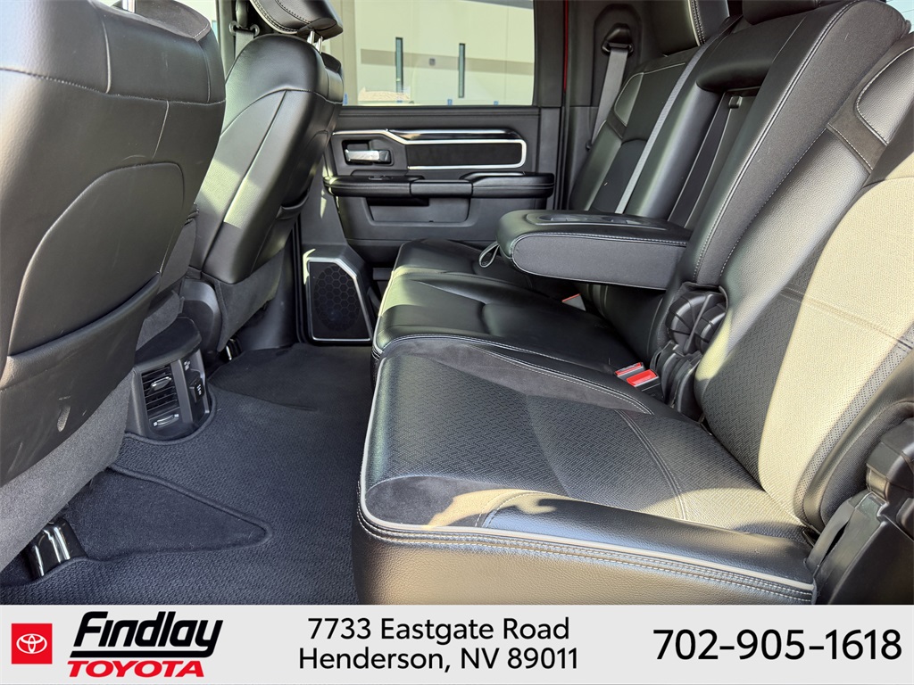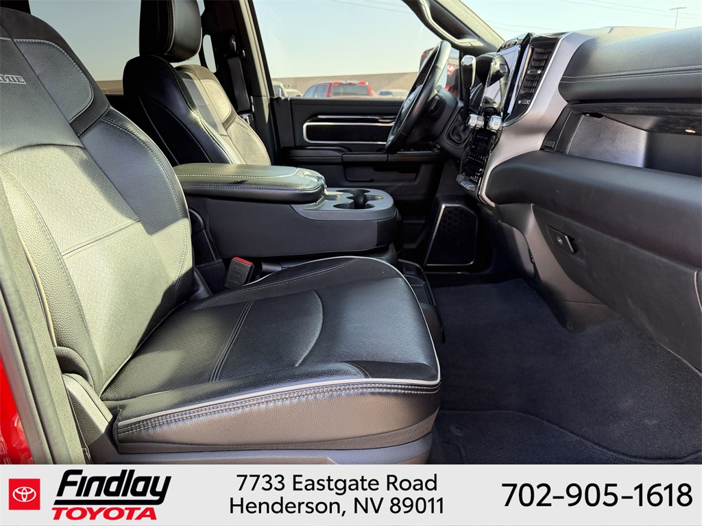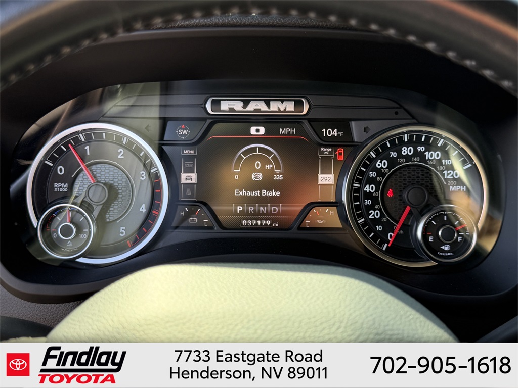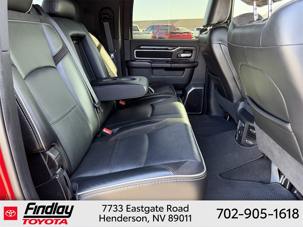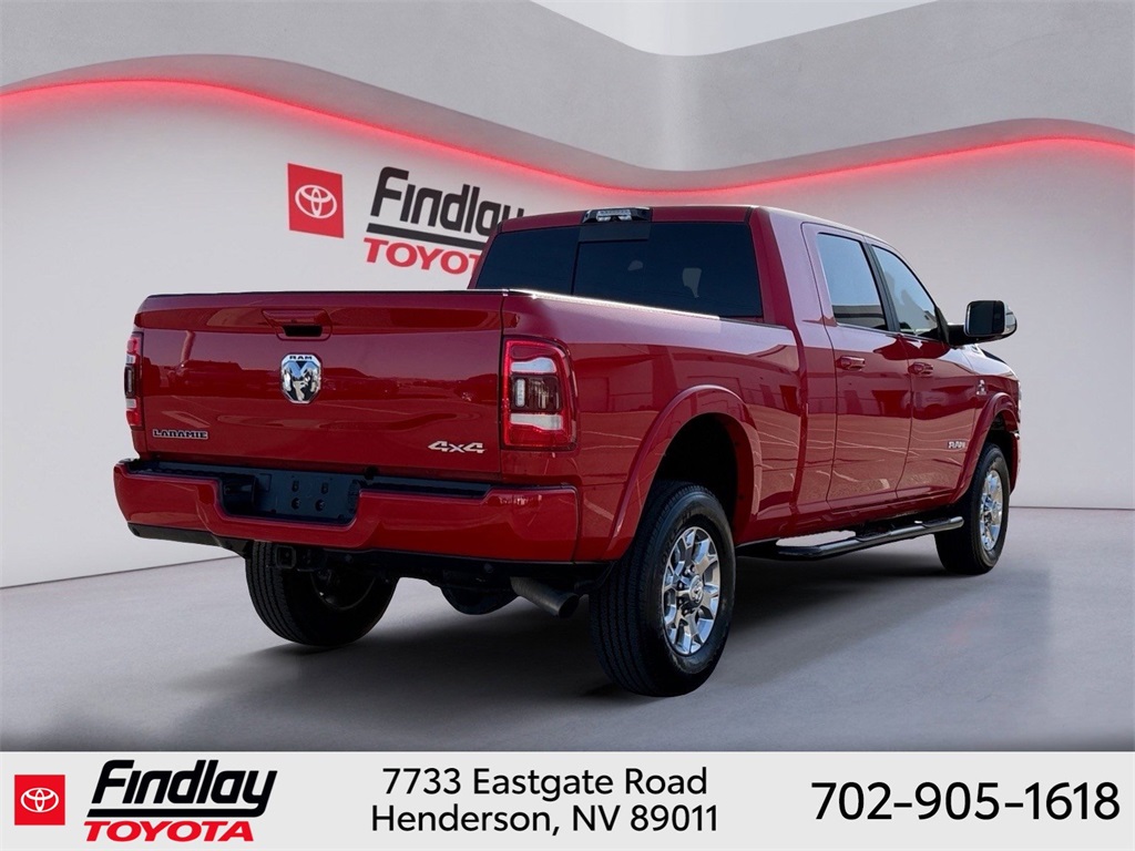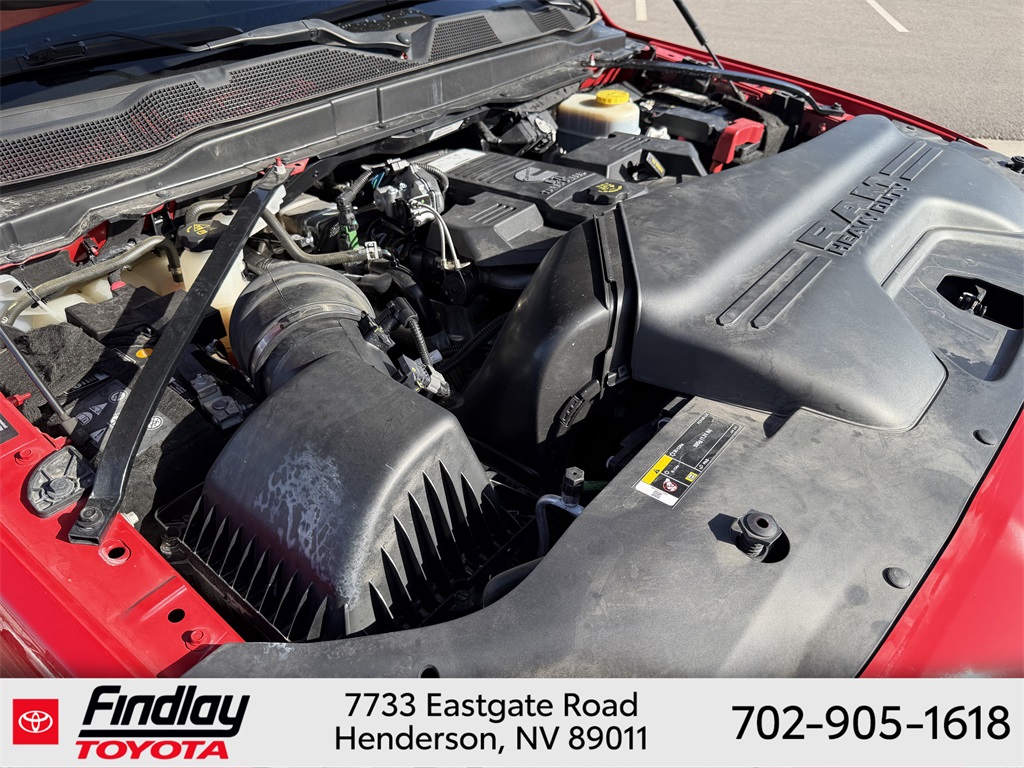 Looking for the best quality used cars near Las Vegas? Findlay Toyota of Henderson is your top destination. As the premier dealership in Nevada, we offer an extensive selection of top-notch pre-owned vehicles, ensuring you find the perfect car to fit your needs and budget. Conveniently located at 7733 Eastgate Rd in the Valley Automall, our dealership spans 12 1⁄2 acres and features a 145,000-square-foot facility, including Nevada’s only Master Certified Toyota Service Department. Our expert sales and financing teams are dedicated to providing a hassle-free buying experience, and our state-of-the-art service center is equipped to handle everything from routine maintenance to major repairs. Our multilingual staff speaks 14 languages, making us accessible to a diverse range of customers. Beyond exceptional service, we are committed to giving back to the Henderson community through initiatives like Toys for Tots and the Las Vegas Rescue Mission. Discover why Findlay Toyota of Henderson is the trusted choice for quality used cars and exceptional service. Visit us today and drive home in your dream car! This Ram 2500 is equipped with the following equipment: Cold Weather Group (Engine Block Heater and MOPAR Winter Front Grille Cover), Laramie Level An Equipment Group (Auto High Beam Headlamp Control, Chrome Exterior Mirrors, Exterior Mirrors Courtesy Lamps, Exterior Mirrors w/Heating Element, Exterior Mirrors w/Memory, Exterior Mirrors w/Supplemental Signals, Foam Bottle Insert (Door Trim Panel), Mirror Running Lights, Mirror-Mounted Aux Reverse Lamps, Power Adjustable Convex Aux Mirrors, Power Adjustable Pedals w/Memory, Power-Folding Mirrors, Pwr Convenience Chrome Tow Mirrors w/Spotter & Memory, Radio/Driver Seat/Mirrors/Pedals Memory, Rain Sensitive Windshield Wipers, Remote Tailgate Release, and Trailer Tow Mirrors), Quick Order Package 2HH Laramie, Sport Appearance Package (Black Interior Accents, Body Color Door Handles, Body Color Grille Surround, Painted Front Bumper, Painted Rear Bumper, and Sport Decal), #1 Seat Foam Cushion, 10 Speakers, 115V Auxiliary Rear Power Outlet, 12" Touchscreen Display, 2 Way Rear Headrest Seat, 220 Amp Alternator, 3.73 Axle Ratio, 4 Way Front Headrests, 4-Wheel Disc Brakes, 4G LTE Wi-Fi Hot Spot, 8.4" Touchscreen Display, ABS brakes, Active Noise Control System, Adjustable pedals, Air Conditioning, Alloy wheels, AM/FM radio: SiriusXM, Anti-Spin Differential Rear Axle, Apple CarPlay, Apple CarPlay/Android Auto, Auto-dimming Rear-View mirror, Automatic temperature control, Brake assist, Bumpers: chrome, Center Hub, Center Stop Lamp w/Cargo View Camera, Compass, Connectivity - US/Canada, Delay-off headlights, Driver door bin, Driver vanity mirror, Dual front impact airbags, Dual front side impact airbags, Electronic Stability Control, Electronically Controlled Throttle, Front anti-roll bar, Front Center Armrest w/Storage, Front dual zone A/C, Front fog lights, Front License Plate Bracket, Front reading lights, Front Seat Back Map Pockets, Fully automatic headlights, Garage door transmitter, Global Telematics Box Module (TBM), Google Android Auto, GPS Antenna Input, Heated door mirrors, Heated Front Seats, Heated front seats, Heated Steering Wheel, Heated steering wheel, High Back Seats, Illuminated entry, Integrated Center Stack Radio, Integrated Voice Command w/Bluetooth, Leather steering wheel, Leather Trim 40/20/40 Bench Seat, LED Bed Lighting, Low tire pressure warning, Manufacturer's Statement of Origin, MOPAR Spray In Bedliner, Occupant sensing airbag, Outside temperature display, Overhead airbag, Overhead console, Panic alarm, ParkView Rear Back-Up Camera, Passenger door bin, Passenger vanity mirror, Power 2-Way Driver Lumbar Adjust, Power 2-Way Passenger Lumbar Adjust, Power Adjust 8-Way Driver