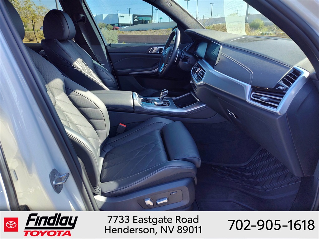 Looking for the best quality used cars near Las Vegas? Findlay Toyota of Henderson is your top destination. As the premier dealership in Nevada, we offer an extensive selection of top-notch pre-owned vehicles, ensuring you find the perfect car to fit your needs and budget. Conveniently located at 7733 Eastgate Rd in the Valley Automall, our dealership spans 12 1⁄2 acres and features a 145,000-square-foot facility, including Nevada’s only Master Certified Toyota Service Department. Our expert sales and financing teams are dedicated to providing a hassle-free buying experience, and our state-of-the-art service center is equipped to handle everything from routine maintenance to major repairs. Our multilingual staff speaks 14 languages, making us accessible to a diverse range of customers. Beyond exceptional service, we are committed to giving back to the Henderson community through initiatives like Toys for Tots and the Las Vegas Rescue Mission. Discover why Findlay Toyota of Henderson is the trusted choice for quality used cars and exceptional service. Visit us today and drive home in your dream car! This BMW X5 is equipped with the following equipment: Connected Package Pro, Parking Assistance Package (Active Park Distance Control, Drive Recorder, Parking Assistant Plus, Rear-View Camera, and Surround View w/3D View), Black Black Sensafin, 10 Speakers, 3.39 Axle Ratio, 4-Wheel Disc Brakes, 4-Zone Automatic Climate Control, ABS brakes, Air Conditioning, Alloy wheels, AM/FM radio: SiriusXM with 360L, AM/FM Stereo, Auto High-beam Headlights, Auto tilt-away steering wheel, Auto-dimming door mirrors, Auto-dimming Rear-View mirror, Automatic temperature control, BMW Assist eCall, BMW TeleServices, Brake assist, Bumpers: body-color, Compass, ConnectedDrive Services, Delay-off headlights, Driver door bin, Driver Lumbar Support Only (DISC), Driver vanity mirror, Dual front impact airbags, Dual front side impact airbags, Electronic Stability Control, Emergency communication system: BMW Assist eCall, Enhanced USB & Bluetooth w/Smartphone Integration, Exterior Parking Camera Rear, Four wheel independent suspension, Front anti-roll bar, Front Bucket Seats, Front Center Armrest, Front dual zone A/C, Front reading lights, Fully automatic headlights, Garage door transmitter, Genuine wood console insert, Genuine wood dashboard insert, Genuine wood door panel insert, Head restraints memory, Heated door mirrors, Heated Front Seats, Heated front seats, Hi-Fi Sound System, Illuminated entry, Knee airbag, Leather Shift Knob, Leather steering wheel, Live Cockpit Pro w/Navigation, Low tire pressure warning, Lumbar Support, Memory seat, Navigation System, Occupant sensing airbag, Outside temperature display, Overhead airbag, Panic alarm, Passenger door bin, Passenger vanity mirror, Power adjustable front head restraints, Power door mirrors, Power driver seat, Power Front Seats, Power moonroof, Power passenger seat, Power steering, Power windows, Radio data system, Rain sensing wipers, Rear anti-roll bar, Rear reading lights, Rear seat center armrest, Rear window defroster, Rear window wiper, Remote keyless entry, Security system, Sensafin Upholstery, SiriusXM Satellite Radio, Speed control, Speed-sensing steering, Speed-Sensitive Wipers, Split folding rear seat, Spoiler, Sport Seats, Sport steering wheel, Steering wheel mounted audio controls, Tachometer, Telescoping steering wheel, Tilt steering wheel, Traction control, Trip computer, Turn signal indicator mirrors, Variably intermittent wipers, Wheels: 19" x 9" V-Spoke, and Wheels: 21" x 9.5" Fr & 21" x 10.5" Rr Bi-Color. ** This 2023 BMW X5 is equipped with 3.0L I6 DOHC 24V TwinPower Turbo RWD**, ** and this X5 is trimmed in Alpine White with Black interior**, Black Black Sensafin.