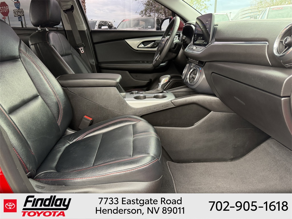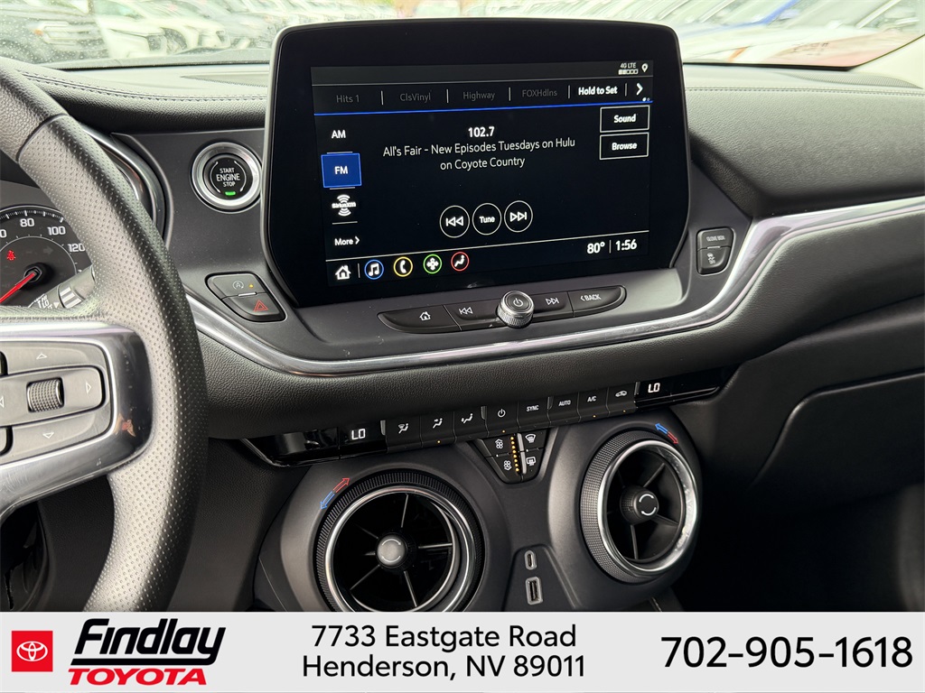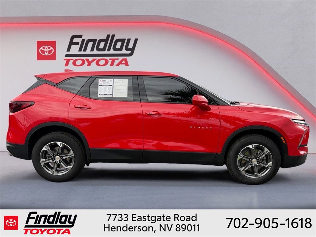 Looking for the best quality used cars near Las Vegas? Findlay Toyota of Henderson is your top destination. As the premier dealership in Nevada, we offer an extensive selection of top-notch pre-owned vehicles, ensuring you find the perfect car to fit your needs and budget. Conveniently located at 7733 Eastgate Rd in the Valley Automall, our dealership spans 12 1⁄2 acres and features a 145,000-square-foot facility, including Nevada’s only Master Certified Toyota Service Department. Our expert sales and financing teams are dedicated to providing a hassle-free buying experience, and our state-of-the-art service center is equipped to handle everything from routine maintenance to major repairs. Our multilingual staff speaks 14 languages, making us accessible to a diverse range of customers. Beyond exceptional service, we are committed to giving back to the Henderson community through initiatives like Toys for Tots and the Las Vegas Rescue Mission. Discover why Findlay Toyota of Henderson is the trusted choice for quality used cars and exceptional service. Visit us today and drive home in your dream car! This Chevrolet Blazer is equipped with the following equipment: Preferred Equipment Group 2LT, 170 Amp Alternator, 3.47 Final Drive Axle Ratio, 4-Way Manual Front Passenger Seat Adjuster, 4-Wheel Disc Brakes, 6 Speakers, 6-Speaker Audio System Feature, 8-Way Power Driver Seat Adjuster, ABS brakes, Air Conditioning, Alloy wheels, AM/FM radio: SiriusXM with 360L, Apple CarPlay/Android Auto, Auto High-beam Headlights, Automatic temperature control, Brake assist, Bumpers: body-color, Child-Seat-Sensing Airbag, Compass, Delay-off headlights, Driver door bin, Driver vanity mirror, Dual front impact airbags, Dual front side impact airbags, Electronic Stability Control, Emergency communication system: OnStar and Chevrolet connected services capable, Four wheel independent suspension, Front & Rear Black Bowties, Front anti-roll bar, Front Bucket Seats, Front Center Armrest, Front dual zone A/C, Front reading lights, Fully automatic headlights, Heated door mirrors, Illuminated entry, Knee airbag, Leather Shift Knob, Low tire pressure warning, Occupant sensing airbag, Outside temperature display, Overhead airbag, Overhead console, Panic alarm, Passenger door bin, Passenger vanity mirror, Power door mirrors, Power Driver Lumbar Control, Power driver seat, Power steering, Power windows, Premium audio system: Chevrolet Infotainment 3 Plus, Premium Cloth Seat Trim, Radio data system, Radio: Chevrolet Infotainment 3 Plus System, Rear anti-roll bar, Rear reading lights, Rear seat center armrest, Rear window defroster, Rear window wiper, Remote keyless entry, Ride & Handling Suspension, Security system, SiriusXM w/360L, Speed control, Speed-sensing steering, Split folding rear seat, Spoiler, Steering wheel mounted audio controls, Tachometer, Telescoping steering wheel, Tilt steering wheel, Traction control, Trip computer, Variably intermittent wipers, Voltmeter, and Wheels: 18" Grazen Metallic Aluminum. ** This 2023 Chevrolet Blazer is equipped with 2.0L Turbocharged FWD**, ** and this Blazer is trimmed in Red Hot with Jet Black interior**.