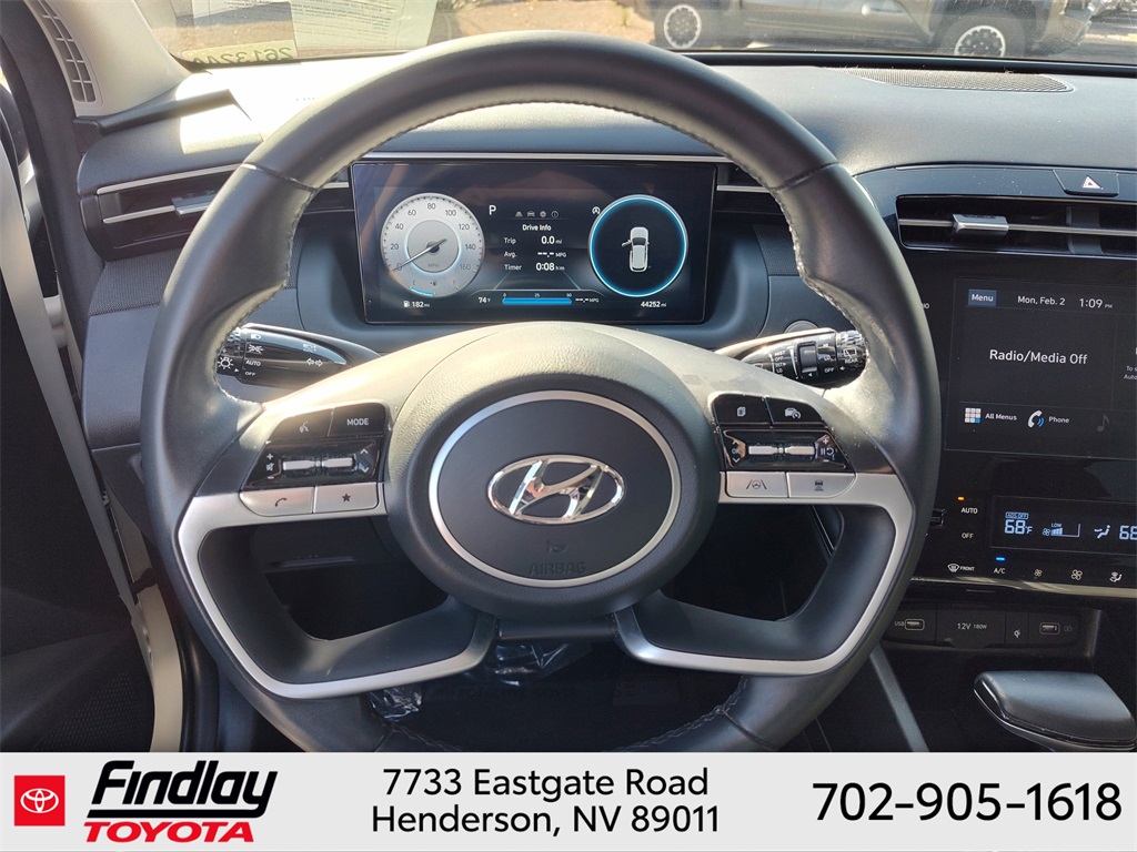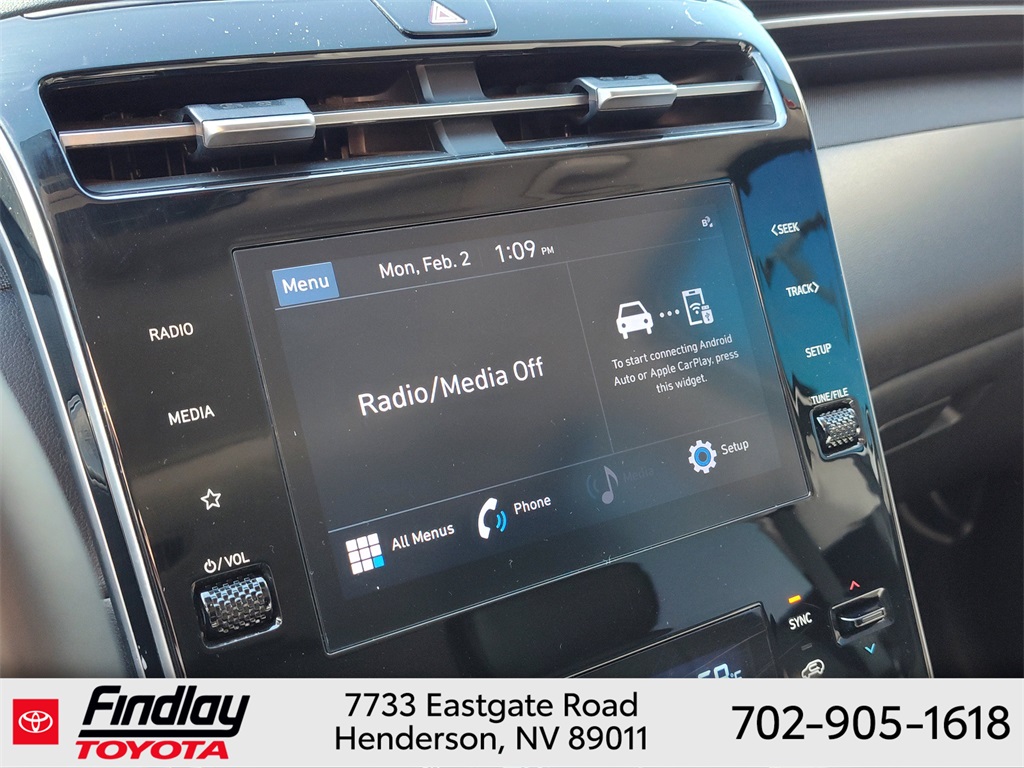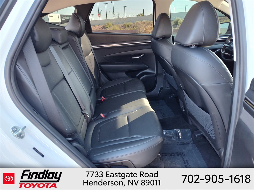 Looking for the best quality used cars near Las Vegas? Findlay Toyota of Henderson is your top destination. As the premier dealership in Nevada, we offer an extensive selection of top-notch pre-owned vehicles, ensuring you find the perfect car to fit your needs and budget. Conveniently located at 7733 Eastgate Rd in the Valley Automall, our dealership spans 12 1⁄2 acres and features a 145,000-square-foot facility, including Nevada’s only Master Certified Toyota Service Department. Our expert sales and financing teams are dedicated to providing a hassle-free buying experience, and our state-of-the-art service center is equipped to handle everything from routine maintenance to major repairs. Our multilingual staff speaks 14 languages, making us accessible to a diverse range of customers. Beyond exceptional service, we are committed to giving back to the Henderson community through initiatives like Toys for Tots and the Las Vegas Rescue Mission. Discover why Findlay Toyota of Henderson is the trusted choice for quality used cars and exceptional service. Visit us today and drive home in your dream car! This Hyundai Tucson is equipped with the following equipment: Convenience Package (10.25" Digital Instrument Cluster, Auto-Dimming Interior Mirror w/Homelink, Dual Automatic Temperature Control, H-Tex Seat Trim, Leather-Wrapped Shift Knob, Leather-Wrapped Steering Wheel, LED Interior Lights (Room, Map), Option Group 02, Power Sunroof, Ultrasonic Rear Occupant Alert, and Wheels: 19" x 7.5J" Machine-Face Finish Alloy), 3.648 Axle Ratio, 4-Wheel Disc Brakes, 6 Speakers, ABS brakes, Air Conditioning, Alloy wheels, AM/FM radio: SiriusXM, Apple CarPlay & Android Auto, Auto High-beam Headlights, Brake assist, Bumpers: body-color, Cargo Net, Cargo Tray, Carpeted Floor Mats, Delay-off headlights, Driver door bin, Driver vanity mirror, Dual front impact airbags, Dual front side impact airbags, Electronic Stability Control, Emergency communication system: Blue Link Connected Car Service (3-year complimentary subscription), First Aid Kit, Four wheel independent suspension, Front anti-roll bar, Front Bucket Seats, Front Center Armrest, Front reading lights, Fully automatic headlights, Heated door mirrors, Heated Front Bucket Seats, Heated front seats, Illuminated entry, Low tire pressure warning, Occupant sensing airbag, Outside temperature display, Overhead airbag, Overhead console, Panic alarm, Passenger door bin, Passenger vanity mirror, Power door mirrors, Power driver seat, Power Liftgate, Power steering, Power windows, Radio data system, Radio: AM/FM/HD/SiriusXM Audio System, Rear anti-roll bar, Rear seat center armrest, Rear window defroster, Rear window wiper, Remote keyless entry, Roof rack: rails only, Security system, Speed control, Split folding rear seat, Spoiler, Stain & Odor Resistant Cloth Seat Trim, Steering wheel mounted audio controls, Tachometer, Telescoping steering wheel, Tilt steering wheel, Traction control, Trip computer, Turn signal indicator mirrors, Variably intermittent wipers, Wheel Locks, and Wheels: 17" x 7.0J" Alloy. ** This 2023 Hyundai Tucson is equipped with 2.5L I4 DGI DOHC 16V LEV3-ULEV70 187hp FWD**, ** and this Tucson is trimmed in Serenity White Pearl with Black interior**.