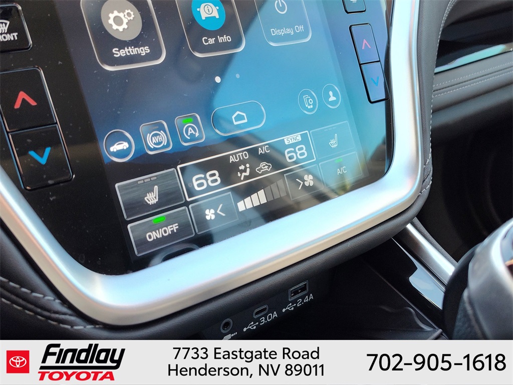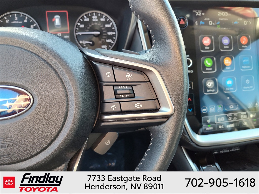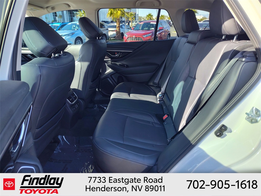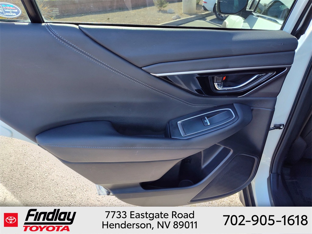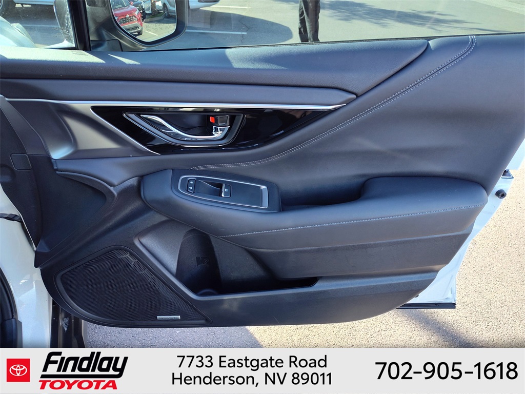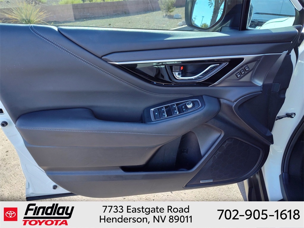 Looking for the best quality used cars near Las Vegas? Findlay Toyota of Henderson is your top destination. As the premier dealership in Nevada, we offer an extensive selection of top-notch pre-owned vehicles, ensuring you find the perfect car to fit your needs and budget. Conveniently located at 7733 Eastgate Rd in the Valley Automall, our dealership spans 12 1⁄2 acres and features a 145,000-square-foot facility, including Nevada’s only Master Certified Toyota Service Department. Our expert sales and financing teams are dedicated to providing a hassle-free buying experience, and our state-of-the-art service center is equipped to handle everything from routine maintenance to major repairs. Our multilingual staff speaks 14 languages, making us accessible to a diverse range of customers. Beyond exceptional service, we are committed to giving back to the Henderson community through initiatives like Toys for Tots and the Las Vegas Rescue Mission. Discover why Findlay Toyota of Henderson is the trusted choice for quality used cars and exceptional service. Visit us today and drive home in your dream car! This Subaru Outback is equipped with the following equipment: 12 Speakers, 3.90 Axle Ratio, 4-Wheel Disc Brakes, ABS brakes, Air Conditioning, Alloy wheels, AM/FM radio: SiriusXM, Auto High-beam Headlights, Auto-dimming Rear-View mirror, Automatic temperature control, Brake assist, Bumpers: body-color, Compass, Driver door bin, Driver vanity mirror, Dual front impact airbags, Dual front side impact airbags, Electronic Stability Control, Emergency communication system: STARLINK Safety Plus (3-year free trial), Exterior Parking Camera Rear, Four wheel independent suspension, Front anti-roll bar, Front Bucket Seats, Front Center Armrest w/Storage, Front dual zone A/C, Front fog lights, Front reading lights, Fully automatic headlights, Garage door transmitter: HomeLink, harman/kardon® Speakers, Heated door mirrors, Heated Front Bucket Seats, Heated front seats, Heated rear seats, Illuminated entry, Knee airbag, Leather Shift Knob, Leather steering wheel, Low tire pressure warning, Memory seat, Occupant sensing airbag, Outside temperature display, Overhead airbag, Overhead console, Panic alarm, Passenger door bin, Passenger vanity mirror, Perforated Leather-Trimmed Upholstery, Power door mirrors, Power driver seat, Power Liftgate, Power passenger seat, Power steering, Power windows, Radio: Subaru STARLINK 11.6" Multimedia Plus Sys, Rear anti-roll bar, Rear seat center armrest, Rear window defroster, Rear window wiper, Remote keyless entry, Roof rack, Security system, Speed control, Speed-sensing steering, Split folding rear seat, Spoiler, Steering wheel mounted audio controls, Steering Wheel Paddle Shift Control Switches, Tachometer, Telescoping steering wheel, Tilt steering wheel, Traction control, Trip computer, Turn signal indicator mirrors, Variably intermittent wipers, and Wheels: 18" x 7J Black Aluminum Alloy. ** This 2023 Subaru Outback is equipped with 2.5L 4-Cylinder DOHC 16V AWD**, ** and this Outback is trimmed in Crystal White Pearl with Black interior**.