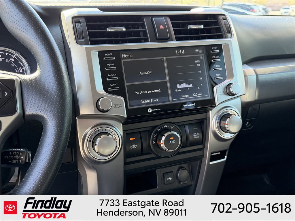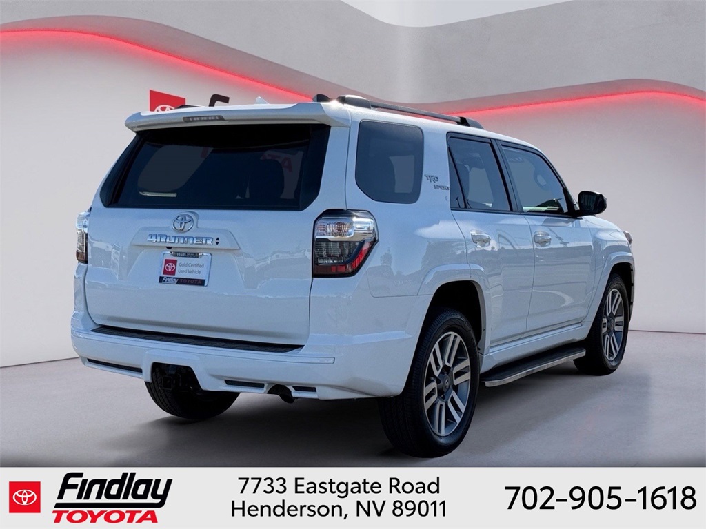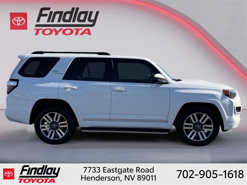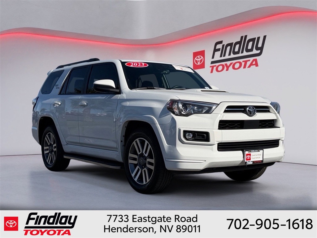 Looking for the best quality used cars near Las Vegas? Findlay Toyota of Henderson is your top destination. As the premier dealership in Nevada, we offer an extensive selection of top-notch pre-owned vehicles, ensuring you find the perfect car to fit your needs and budget. Conveniently located at 7733 Eastgate Rd in the Valley Automall, our dealership spans 12 1⁄2 acres and features a 145,000-square-foot facility, including Nevada’s only Master Certified Toyota Service Department. Our expert sales and financing teams are dedicated to providing a hassle-free buying experience, and our state-of-the-art service center is equipped to handle everything from routine maintenance to major repairs. Our multilingual staff speaks 14 languages, making us accessible to a diverse range of customers. Beyond exceptional service, we are committed to giving back to the Henderson community through initiatives like Toys for Tots and the Las Vegas Rescue Mission. Discover why Findlay Toyota of Henderson is the trusted choice for quality used cars and exceptional service. Visit us today and drive home in your dream car! This Toyota 4Runner is equipped with the following equipment: Black Artificial Leather, 3.727 Axle Ratio, 4-Wheel Disc Brakes, 8 Speakers, ABS brakes, Air Conditioning, Alloy wheels, AM/FM radio: SiriusXM, Anti-whiplash front head restraints, Apple CarPlay/Android Auto, Auto High-beam Headlights, Black Roof Rails, Brake assist, Bumpers: body-color, Driver door bin, Driver vanity mirror, Dual front impact airbags, Dual front side impact airbags, Electronic Stability Control, Emergency communication system: Safety Connect (1-year trial), Exterior Parking Camera Rear, Front anti-roll bar, Front Bucket Seats, Front Center Armrest, Front fog lights, Front reading lights, Front wheel independent suspension, Heated door mirrors, Illuminated entry, Knee airbag, Leather Shift Knob, Leather steering wheel, Low tire pressure warning, Occupant sensing airbag, Outside temperature display, Overhead airbag, Overhead console, Panic alarm, Passenger door bin, Passenger vanity mirror, Power door mirrors, Power driver seat, Power steering, Power windows, Radio: Audio, Rear anti-roll bar, Rear seat center armrest, Rear window defroster, Rear window wiper, Remote keyless entry, Roof rack: rails only, Security system, Shift Knob, SofTex Seat Trim, Speed control, Speed-sensing steering, Split folding rear seat, Spoiler, Steering wheel mounted audio controls, Tachometer, Telescoping steering wheel, Tilt steering wheel, Traction control, TRD Sport Badge, TRD Sport Carpet Floor Mats, Trip computer, Variably intermittent wipers, and Wheels: 20" Unique Dual 6-Spoke Alloy. ** This 2023 Toyota 4Runner is equipped with 4.0L V6 DOHC 24V RWD**, ** and this 4Runner is trimmed in Ice with Black interior**, Black Artificial Leather.