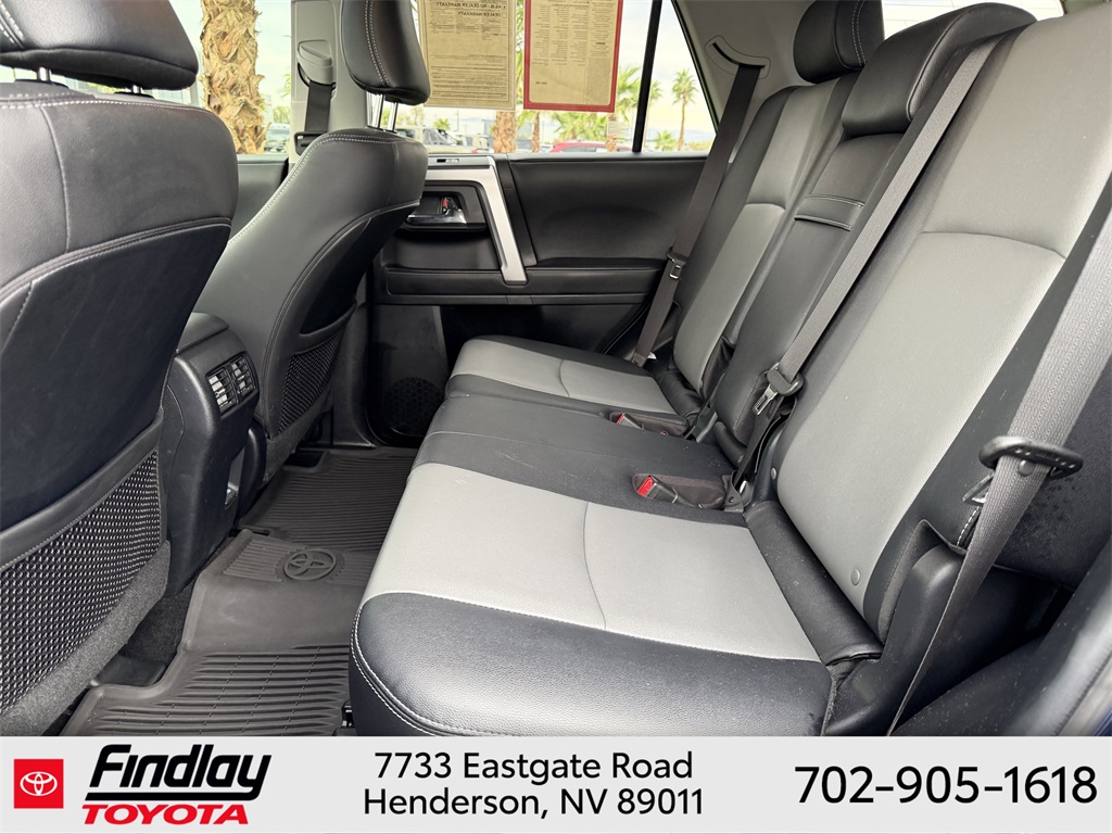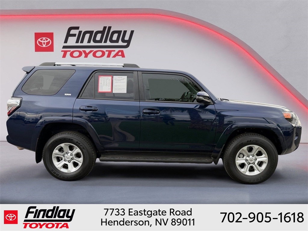 Looking for the best quality used cars near Las Vegas? Findlay Toyota of Henderson is your top destination. As the premier dealership in Nevada, we offer an extensive selection of top-notch pre-owned vehicles, ensuring you find the perfect car to fit your needs and budget. Conveniently located at 7733 Eastgate Rd in the Valley Automall, our dealership spans 12 1⁄2 acres and features a 145,000-square-foot facility, including Nevada’s only Master Certified Toyota Service Department. Our expert sales and financing teams are dedicated to providing a hassle-free buying experience, and our state-of-the-art service center is equipped to handle everything from routine maintenance to major repairs. Our multilingual staff speaks 14 languages, making us accessible to a diverse range of customers. Beyond exceptional service, we are committed to giving back to the Henderson community through initiatives like Toys for Tots and the Las Vegas Rescue Mission. Discover why Findlay Toyota of Henderson is the trusted choice for quality used cars and exceptional service. Visit us today and drive home in your dream car! This Toyota 4Runner is equipped with the following equipment: 4WD, Blackgraphite S Artificial Leather, 17" 6-Spoke Alloy Wheels, 3.727 Axle Ratio, 4-Wheel Disc Brakes, 8 Speakers, ABS brakes, Air Conditioning, Alloy wheels, AM/FM radio: SiriusXM, Anti-whiplash front head restraints, Apple CarPlay/Android Auto, Auto High-beam Headlights, Auto-dimming Rear-View mirror, Brake assist, Bumpers: body-color, Compass, Driver door bin, Driver vanity mirror, Dual front impact airbags, Dual front side impact airbags, Electronic Stability Control, Emergency communication system: Safety Connect (1-year trial), Exterior Parking Camera Rear, Front anti-roll bar, Front Bucket Seats, Front Center Armrest, Front fog lights, Front reading lights, Front wheel independent suspension, Garage Door Opener, Garage door transmitter: HomeLink, Heated door mirrors, Heated Front Bucket Seats, Heated front seats, Heated Outside Rear-View Mirrors, Illuminated entry, Knee airbag, Leather Shift Knob, Leather steering wheel, Low tire pressure warning, Navigation System, Occupant sensing airbag, Outside temperature display, Overhead airbag, Overhead console, Panic alarm, Passenger door bin, Passenger vanity mirror, Power door mirrors, Power driver seat, Power passenger seat, Power steering, Power windows, Radio: Premium Audio w/Dynamic Navigation, Rear anti-roll bar, Rear seat center armrest, Rear window defroster, Rear window wiper, Remote keyless entry, Security system, SofTex Seat Trim, Speed control, Speed-sensing steering, Split folding rear seat, Spoiler, Steering wheel mounted audio controls, Tachometer, Telescoping steering wheel, Tilt steering wheel, Traction control, Trip computer, Turn signal indicator mirrors, and Variably intermittent wipers. ** This 2023 Toyota 4Runner is equipped with 4.0L V6 DOHC 24V 4WD**, ** and this 4Runner is trimmed in Nautical Blue with Blackgraphite S interior**, 4WD, Blackgraphite S Artificial Leather.