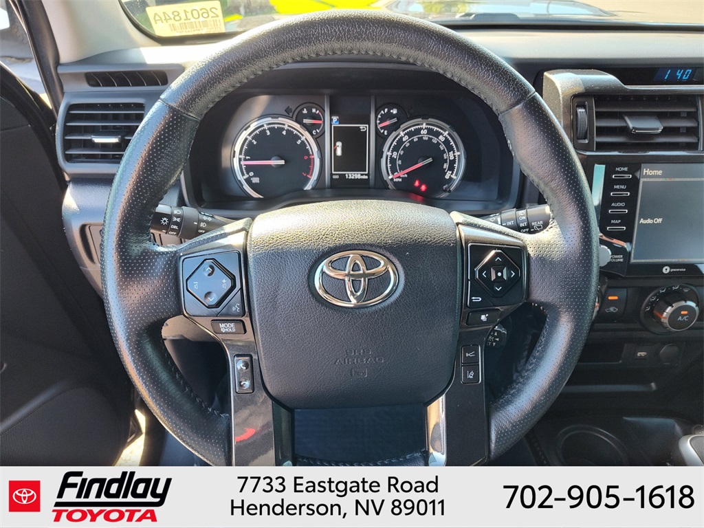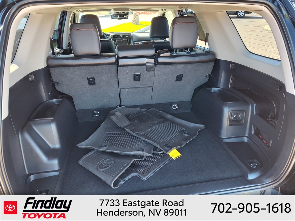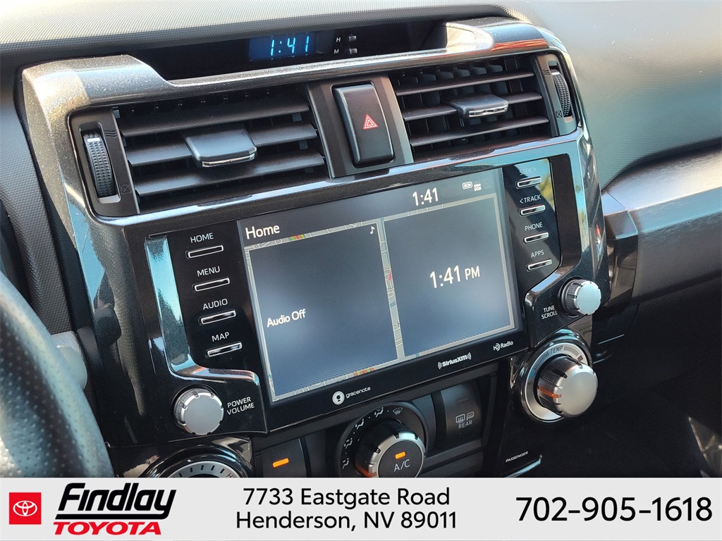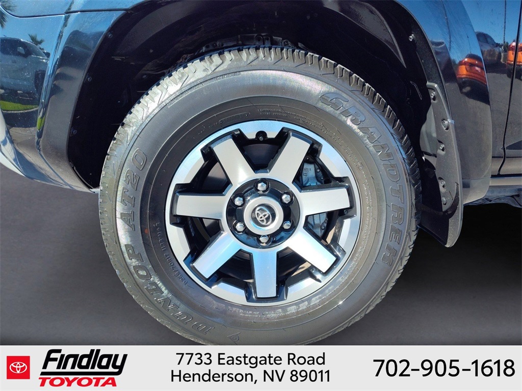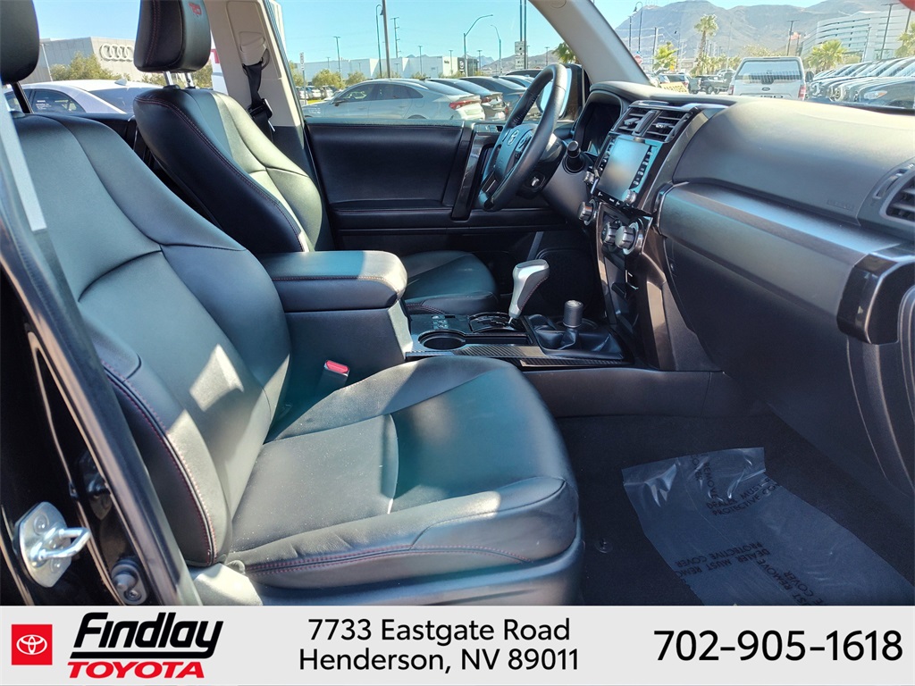 Looking for the best quality used cars near Las Vegas? Findlay Toyota of Henderson is your top destination. As the premier dealership in Nevada, we offer an extensive selection of top-notch pre-owned vehicles, ensuring you find the perfect car to fit your needs and budget. Conveniently located at 7733 Eastgate Rd in the Valley Automall, our dealership spans 12 1⁄2 acres and features a 145,000-square-foot facility, including Nevada’s only Master Certified Toyota Service Department. Our expert sales and financing teams are dedicated to providing a hassle-free buying experience, and our state-of-the-art service center is equipped to handle everything from routine maintenance to major repairs. Our multilingual staff speaks 14 languages, making us accessible to a diverse range of customers. Beyond exceptional service, we are committed to giving back to the Henderson community through initiatives like Toys for Tots and the Las Vegas Rescue Mission. Discover why Findlay Toyota of Henderson is the trusted choice for quality used cars and exceptional service. Visit us today and drive home in your dream car! This Toyota 4Runner is equipped with the following equipment: Toyota Gold Certified Certified, 4WD, Black/Graphite w/Leather Seat Trim, 3.727 Axle Ratio, 4-Wheel Disc Brakes, 8 Speakers, ABS brakes, Air Conditioning, Alloy wheels, AM/FM radio: SiriusXM, Anti-whiplash front head restraints, Apple CarPlay/Android Auto, Auto High-beam Headlights, Auto-dimming Rear-View mirror, Black Roof Rails, Brake assist, Bumpers: body-color, Compass, Driver door bin, Driver vanity mirror, Dual front impact airbags, Dual front side impact airbags, Electronic Stability Control, Emergency communication system: Safety Connect (1-year trial), Exterior Parking Camera Rear, Front anti-roll bar, Front Bucket Seats, Front Center Armrest, Front fog lights, Front reading lights, Front wheel independent suspension, Garage Door Opener, Garage door transmitter: HomeLink, Heated door mirrors, Heated Front Bucket Seats, Heated front seats, Heated Outside Rear-View Mirrors, Illuminated entry, Knee airbag, Leather Shift Knob, Low tire pressure warning, Navigation System, Occupant sensing airbag, Outside temperature display, Overhead airbag, Overhead console, Panic alarm, Passenger door bin, Passenger vanity mirror, Power door mirrors, Power driver seat, Power passenger seat, Power steering, Power windows, Radio: Premium Audio w/Dynamic Navigation, Rear anti-roll bar, Rear seat center armrest, Rear window defroster, Rear window wiper, Remote keyless entry, Security system, SofTex Seat Trim, Speed control, Speed-sensing steering, Split folding rear seat, Spoiler, Steering wheel mounted audio controls, Tachometer, Telescoping steering wheel, Tilt steering wheel, Traction control, Trip computer, Turn signal indicator mirrors, Variably intermittent wipers, and Wheels: 17" Unique 7-Spoke Off-Road Alloy. ** This 2023 Toyota 4Runner is equipped with 4.0L V6 DOHC 24V 4WD**, ** and this 4Runner is trimmed in Midnight Black Metallic with Black/Graphite