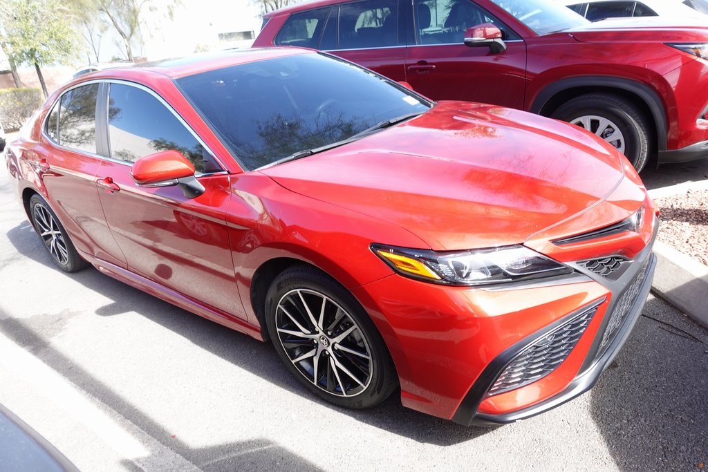 Looking for the best quality used cars near Las Vegas? Findlay Toyota of Henderson is your top destination. As the premier dealership in Nevada, we offer an extensive selection of top-notch pre-owned vehicles, ensuring you find the perfect car to fit your needs and budget. Conveniently located at 7733 Eastgate Rd in the Valley Automall, our dealership spans 12 1⁄2 acres and features a 145,000-square-foot facility, including Nevada’s only Master Certified Toyota Service Department. Our expert sales and financing teams are dedicated to providing a hassle-free buying experience, and our state-of-the-art service center is equipped to handle everything from routine maintenance to major repairs. Our multilingual staff speaks 14 languages, making us accessible to a diverse range of customers. Beyond exceptional service, we are committed to giving back to the Henderson community through initiatives like Toys for Tots and the Las Vegas Rescue Mission. Discover why Findlay Toyota of Henderson is the trusted choice for quality used cars and exceptional service. Visit us today and drive home in your dream car! This Toyota Camry is equipped with the following equipment: Toyota Gold Certified Certified, Black w/Sport SofTex Seat Trim w/Fabric Inserts, 4-Wheel Disc Brakes, 6 Speakers, ABS brakes, Air Conditioning, Alloy wheels, AM/FM radio: SiriusXM, Apple CarPlay/Android Auto, Auto High-beam Headlights, Automatic temperature control, Brake assist, Bumpers: body-color, Delay-off headlights, Driver door bin, Driver vanity mirror, Dual front impact airbags, Dual front side impact airbags, Electronic Stability Control, Emergency communication system: Safety Connect (1-year trial), Exterior Parking Camera Rear, Four wheel independent suspension, Front anti-roll bar, Front Bucket Seats, Front Center Armrest, Front dual zone A/C, Front reading lights, Fully automatic headlights, Heated door mirrors, Illuminated entry, Knee airbag, Leather steering wheel, Low tire pressure warning, Occupant sensing airbag, Outside temperature display, Overhead airbag, Overhead console, Panic alarm, Passenger door bin, Passenger vanity mirror, Power door mirrors, Power driver seat, Power steering, Power windows, Radio data system, Radio: Audio, Rear anti-roll bar, Rear seat center armrest, Rear side impact airbag, Rear window defroster, Remote keyless entry, Security system, Speed control, Speed-sensing steering, Split folding rear seat, Spoiler, Sport SofTex Seat Trim w/Fabric Inserts, Steering wheel mounted audio controls, Tachometer, Telescoping steering wheel, Tilt steering wheel, Traction control, Trip computer, Turn signal indicator mirrors, and Variably intermittent wipers. ** This 2023 Toyota Camry is equipped with 2.5L I4 DOHC 16V FWD**, ** and this Camry is trimmed in Supersonic Red with Black interior**, Black w/Sport SofTex Seat Trim w/Fabric Inserts.