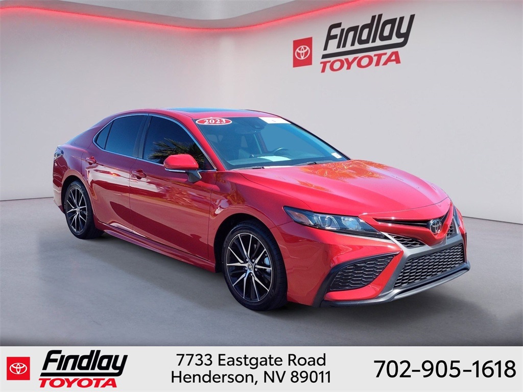 Looking for the best quality used cars near Las Vegas? Findlay Toyota of Henderson is your top destination. As the premier dealership in Nevada, we offer an extensive selection of top-notch pre-owned vehicles, ensuring you find the perfect car to fit your needs and budget. Conveniently located at 7733 Eastgate Rd in the Valley Automall, our dealership spans 12 1⁄2 acres and features a 145,000-square-foot facility, including Nevada’s only Master Certified Toyota Service Department. Our expert sales and financing teams are dedicated to providing a hassle-free buying experience, and our state-of-the-art service center is equipped to handle everything from routine maintenance to major repairs. Our multilingual staff speaks 14 languages, making us accessible to a diverse range of customers. Beyond exceptional service, we are committed to giving back to the Henderson community through initiatives like Toys for Tots and the Las Vegas Rescue Mission. Discover why Findlay Toyota of Henderson is the trusted choice for quality used cars and exceptional service. Visit us today and drive home in your dream car! This Toyota Camry is equipped with the following equipment: Toyota Gold Certified Certified, Black w/Sport SofTex Seat Trim w/Fabric Inserts, 4-Wheel Disc Brakes, 6 Speakers, ABS brakes, Air Conditioning, Alloy wheels, AM/FM radio: SiriusXM, Apple CarPlay/Android Auto, Auto High-beam Headlights, Automatic temperature control, Brake assist, Bumpers: body-color, Delay-off headlights, Driver door bin, Driver vanity mirror, Dual front impact airbags, Dual front side impact airbags, Electronic Stability Control, Emergency communication system: Safety Connect (1-year trial), Exterior Parking Camera Rear, Four wheel independent suspension, Front anti-roll bar, Front Bucket Seats, Front Center Armrest, Front dual zone A/C, Front reading lights, Fully automatic headlights, Heated door mirrors, Illuminated entry, Knee airbag, Leather steering wheel, Low tire pressure warning, Occupant sensing airbag, Outside temperature display, Overhead airbag, Overhead console, Panic alarm, Passenger door bin, Passenger vanity mirror, Power door mirrors, Power driver seat, Power steering, Power windows, Radio data system, Radio: Audio, Rear anti-roll bar, Rear seat center armrest, Rear side impact airbag, Rear window defroster, Remote keyless entry, Security system, Speed control, Speed-sensing steering, Split folding rear seat, Spoiler, Sport SofTex Seat Trim w/Fabric Inserts, Steering wheel mounted audio controls, Tachometer, Telescoping steering wheel, Tilt steering wheel, Traction control, Trip computer, Turn signal indicator mirrors, and Variably intermittent wipers. ** This 2023 Toyota Camry is equipped with 2.5L I4 DOHC 16V FWD**, ** and this Camry is trimmed in Supersonic Red with Black interior**, Black w/Sport SofTex Seat Trim w/Fabric Inserts.