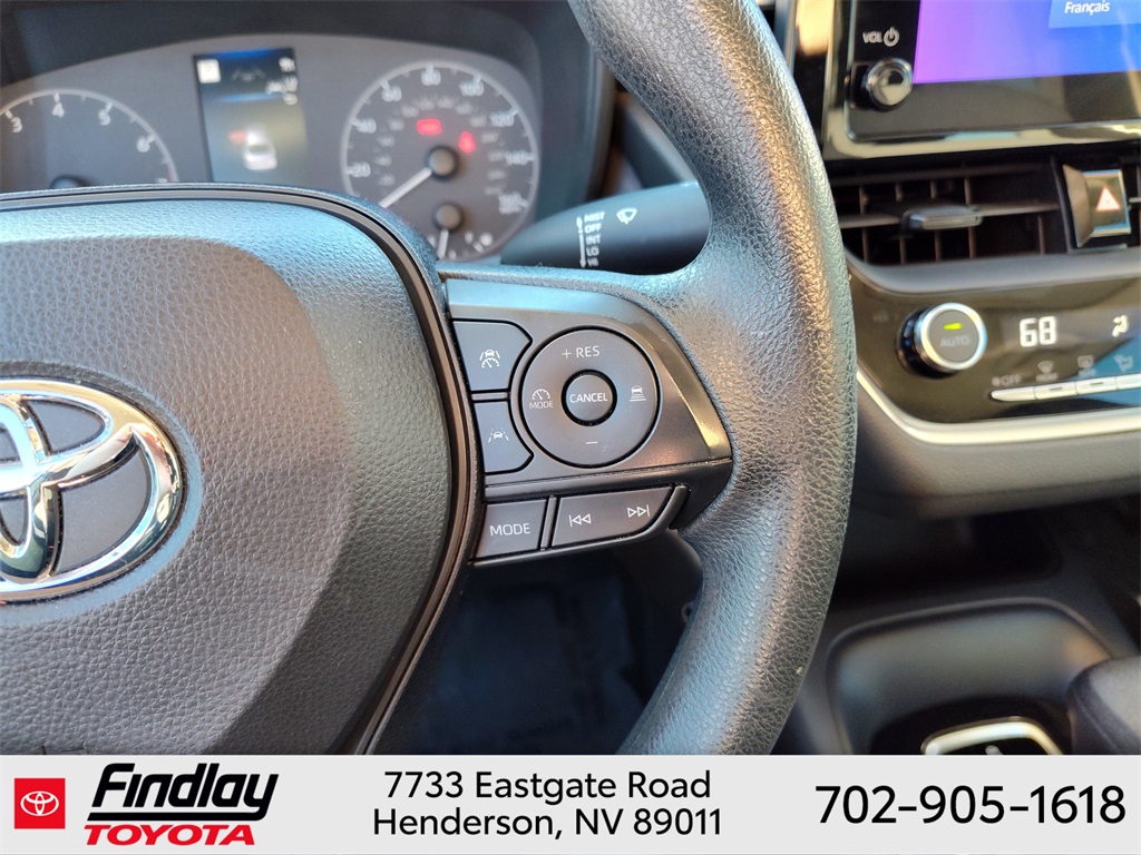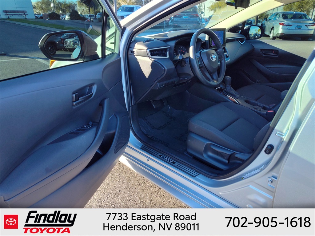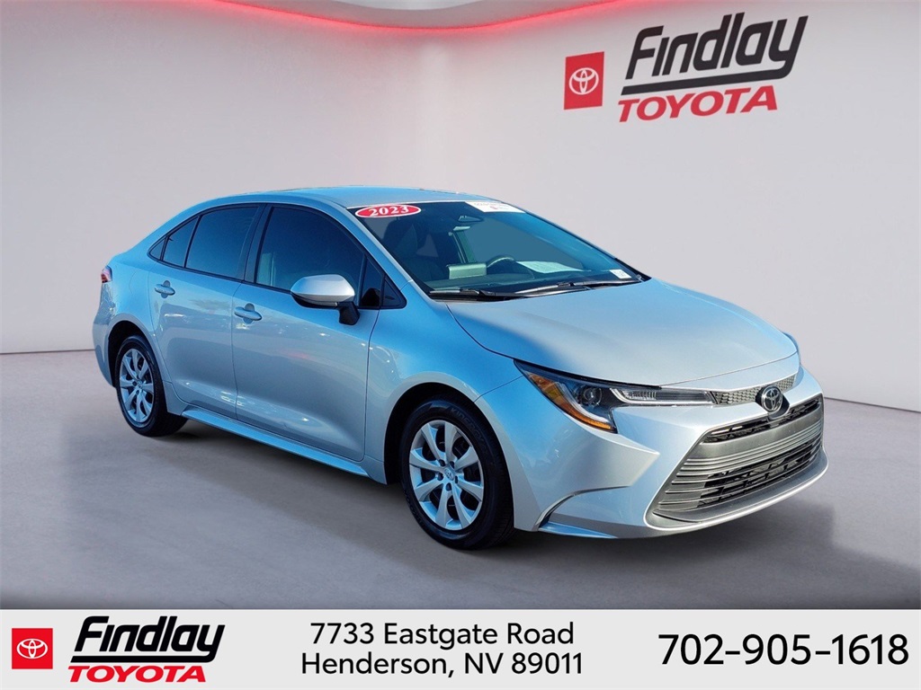 Looking for the best quality used cars near Las Vegas? Findlay Toyota of Henderson is your top destination. As the premier dealership in Nevada, we offer an extensive selection of top-notch pre-owned vehicles, ensuring you find the perfect car to fit your needs and budget. Conveniently located at 7733 Eastgate Rd in the Valley Automall, our dealership spans 12 1⁄2 acres and features a 145,000-square-foot facility, including Nevada’s only Master Certified Toyota Service Department. Our expert sales and financing teams are dedicated to providing a hassle-free buying experience, and our state-of-the-art service center is equipped to handle everything from routine maintenance to major repairs. Our multilingual staff speaks 14 languages, making us accessible to a diverse range of customers. Beyond exceptional service, we are committed to giving back to the Henderson community through initiatives like Toys for Tots and the Las Vegas Rescue Mission. Discover why Findlay Toyota of Henderson is the trusted choice for quality used cars and exceptional service. Visit us today and drive home in your dream car! This Toyota Corolla is equipped with the following equipment: Toyota Gold Certified Certified, 4-Wheel Disc Brakes, 6 Speakers, ABS brakes, Air Conditioning, AM/FM radio: SiriusXM, Auto High-beam Headlights, Automatic temperature control, Brake assist, Bumpers: body-color, Delay-off headlights, Driver door bin, Driver vanity mirror, Dual front impact airbags, Dual front side impact airbags, Electronic Stability Control, Emergency communication system: Safety Connect (up to 10-year trial subscription), Exterior Parking Camera Rear, Front anti-roll bar, Front Bucket Seats, Front Center Armrest, Front reading lights, Front wheel independent suspension, Fully automatic headlights, Illuminated entry, Knee airbag, Low tire pressure warning, Occupant sensing airbag, Outside temperature display, Overhead airbag, Panic alarm, Passenger door bin, Passenger vanity mirror, Power door mirrors, Power steering, Power windows, Premium Fabric Seat Trim, Radio data system, Radio: 8" Toyota Audio Multimedia, Rear anti-roll bar, Rear seat center armrest, Rear side impact airbag, Rear window defroster, Remote keyless entry, Speed control, Split folding rear seat, Steering wheel mounted audio controls, Tachometer, Telescoping steering wheel, Tilt steering wheel, Traction control, Trip computer, Variably intermittent wipers, and Wheels: 16" Wide Vent Steel. ** This 2023 Toyota Corolla is equipped with 2.0L I4 DOHC 16V FWD**, ** and this Corolla is trimmed in Silver with Black W/Premium Fabric Seat Trim interior**.