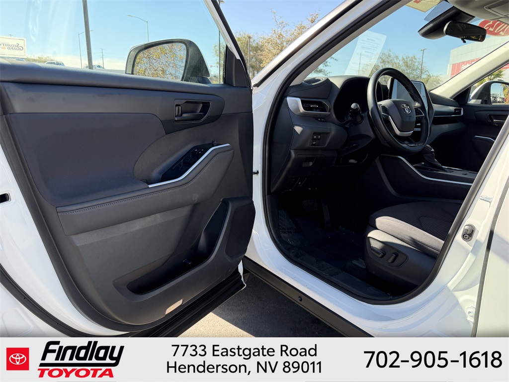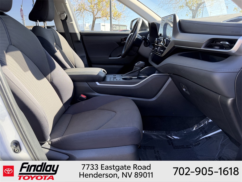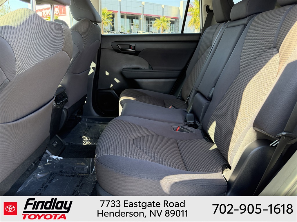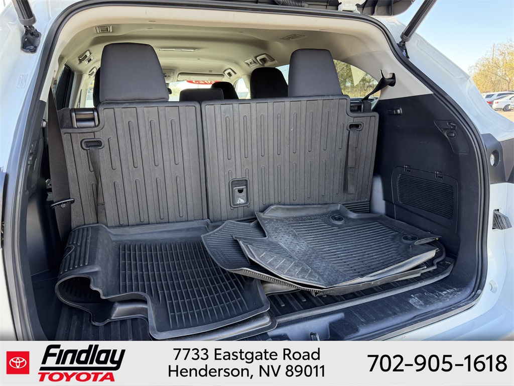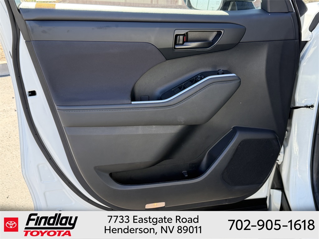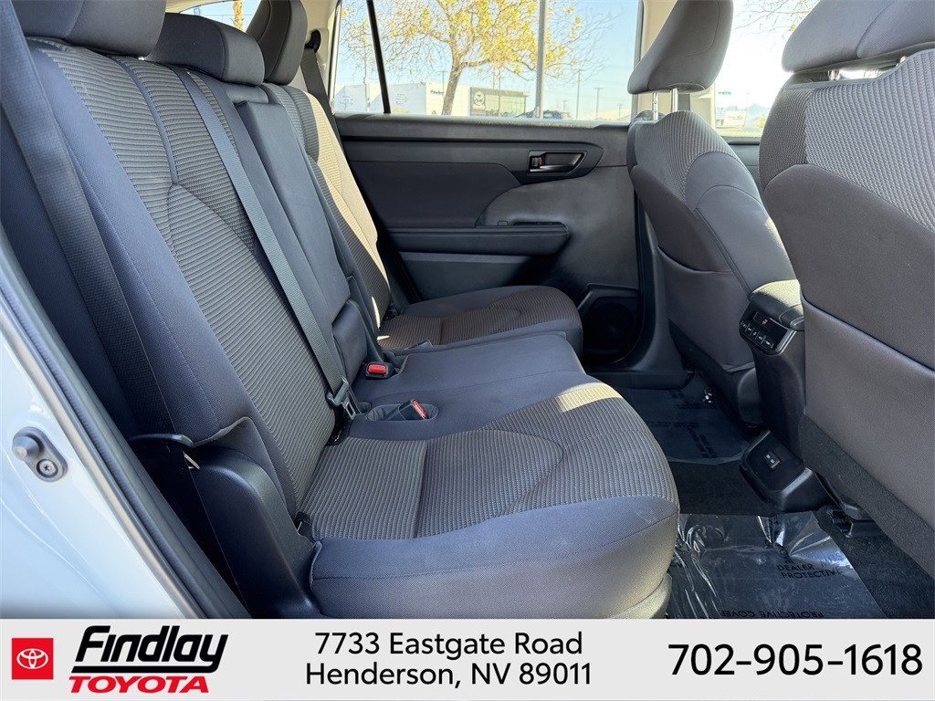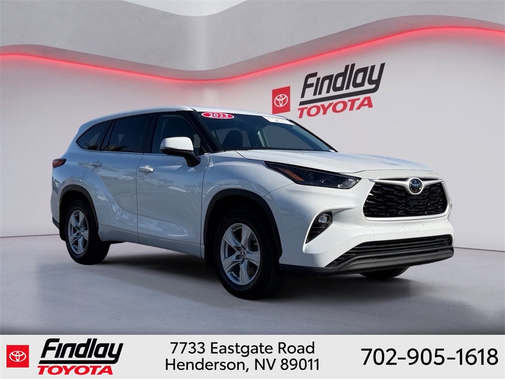 Looking for the best quality used cars near Las Vegas? Findlay Toyota of Henderson is your top destination. As the premier dealership in Nevada, we offer an extensive selection of top-notch pre-owned vehicles, ensuring you find the perfect car to fit your needs and budget. Conveniently located at 7733 Eastgate Rd in the Valley Automall, our dealership spans 12 1⁄2 acres and features a 145,000-square-foot facility, including Nevada’s only Master Certified Toyota Service Department. Our expert sales and financing teams are dedicated to providing a hassle-free buying experience, and our state-of-the-art service center is equipped to handle everything from routine maintenance to major repairs. Our multilingual staff speaks 14 languages, making us accessible to a diverse range of customers. Beyond exceptional service, we are committed to giving back to the Henderson community through initiatives like Toys for Tots and the Las Vegas Rescue Mission. Discover why Findlay Toyota of Henderson is the trusted choice for quality used cars and exceptional service. Visit us today and drive home in your dream car! This Toyota Highlander is equipped with the following equipment: 18" Painted Alloy Wheels, 3.329 Axle Ratio, 3rd row seats: split-bench, 4-Wheel Disc Brakes, 6 Speakers, ABS brakes, Air Conditioning, Alloy wheels, AM/FM radio: SiriusXM, Apple CarPlay/Android Auto, Auto High-beam Headlights, Automatic temperature control, Brake assist, Bumpers: body-color, Delay-off headlights, Driver door bin, Driver vanity mirror, Dual front impact airbags, Dual front side impact airbags, Electronic Stability Control, Emergency communication system: Safety Connect (up to 10-year trial subscription), Exterior Parking Camera Rear, Fabric Seat Trim, Four wheel independent suspension, Front anti-roll bar, Front Bucket Seats, Front Center Armrest, Front dual zone A/C, Front reading lights, Fully automatic headlights, Heated door mirrors, Illuminated entry, Knee airbag, Low tire pressure warning, Occupant sensing airbag, Outside temperature display, Overhead airbag, Overhead console, Panic alarm, Passenger door bin, Passenger vanity mirror, Power door mirrors, Power driver seat, Power steering, Power windows, Radio: 8" Toyota Audio Multimedia, Rear air conditioning, Rear anti-roll bar, Rear reading lights, Rear seat center armrest, Rear window defroster, Rear window wiper, Reclining 3rd row seat, Remote keyless entry, Speed control, Speed-sensing steering, Split folding rear seat, Spoiler, Steering wheel mounted audio controls, Tachometer, Telescoping steering wheel, Tilt steering wheel, Traction control, Trip computer, Turn signal indicator mirrors, and Variably intermittent wipers. ** This 2023 Toyota Highlander is equipped with 2.4L I4 PDI Turbocharged DOHC 16V LEV3-SULEV30 265hp FWD**, ** and this Highlander is trimmed in Wind Chill with Black interior**.
