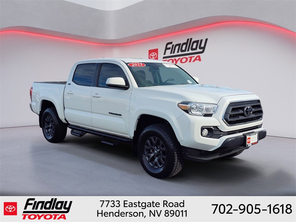 Looking for the best quality used cars near Las Vegas? Findlay Toyota of Henderson is your top destination. As the premier dealership in Nevada, we offer an extensive selection of top-notch pre-owned vehicles, ensuring you find the perfect car to fit your needs and budget. Conveniently located at 7733 Eastgate Rd in the Valley Automall, our dealership spans 12 1⁄2 acres and features a 145,000-square-foot facility, including Nevada’s only Master Certified Toyota Service Department. Our expert sales and financing teams are dedicated to providing a hassle-free buying experience, and our state-of-the-art service center is equipped to handle everything from routine maintenance to major repairs. Our multilingual staff speaks 14 languages, making us accessible to a diverse range of customers. Beyond exceptional service, we are committed to giving back to the Henderson community through initiatives like Toys for Tots and the Las Vegas Rescue Mission. Discover why Findlay Toyota of Henderson is the trusted choice for quality used cars and exceptional service. Visit us today and drive home in your dream car! This Toyota Tacoma is equipped with the following equipment: Toyota Gold Certified Certified, 6 Speakers, ABS brakes, Air Conditioning, Alloy wheels, AM/FM radio: SiriusXM, Anti-whiplash front head restraints, Apple CarPlay/Android Auto, Auto High-beam Headlights, Auto-dimming Rear-View mirror, Automatic temperature control, Axle Ratio: 3.91, Black Headlamp Bezel, Brake assist, Bumpers: body-color, Daytime Running Lamps, Driver door bin, Dual front impact airbags, Dual front side impact airbags, Electronic Stability Control, Emergency communication system: Safety Connect (1-year trial), Exterior Parking Camera Rear, Fabric Seat Trim, Front anti-roll bar, Front Bucket Seats, Front Center Armrest, Front dual zone A/C, Front fog lights, Front reading lights, Front Seats, Front wheel independent suspension, Heated door mirrors, Illuminated entry, Knee airbag, Low tire pressure warning, Occupant sensing airbag, Outside temperature display, Overhead airbag, Overhead console, Panic alarm, Passenger door bin, Power door mirrors, Power driver seat, Power steering, Power windows, Radio: Audio, Rear step bumper, Remote keyless entry, Speed control, Speed-sensing steering, Split folding rear seat, Steering wheel mounted audio controls, Tachometer, Telescoping steering wheel, Tilt steering wheel, Traction control, Trip computer, Variably intermittent wipers, and Wheels: 16" Dark Gray Alloy. ** This 2023 Toyota Tacoma is equipped with 3.5L V6 RWD**, ** and this Tacoma is trimmed in Ice Cap with Cement interior**.