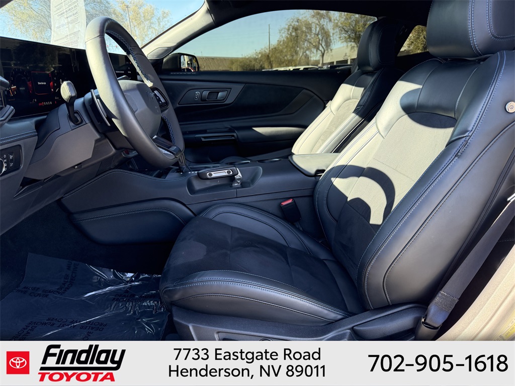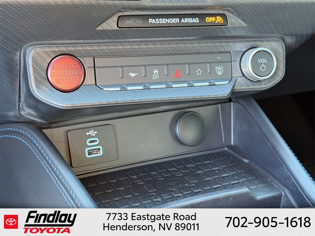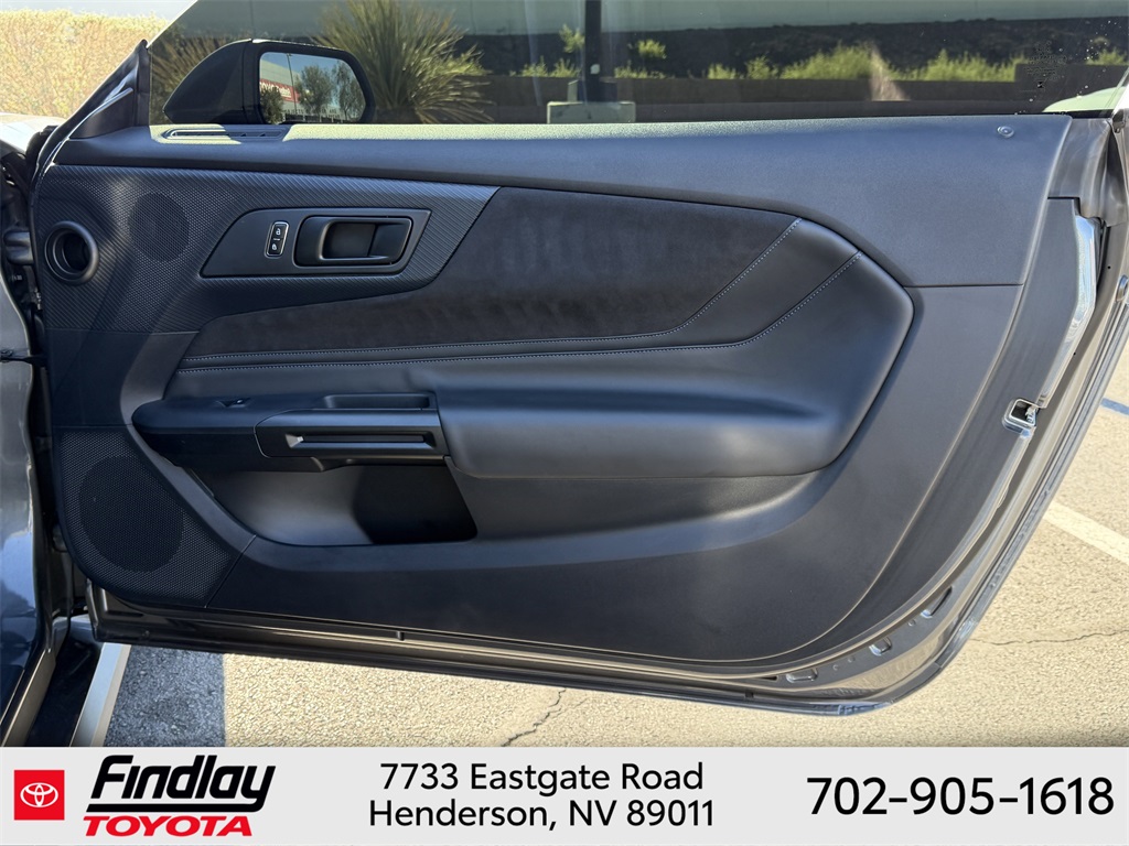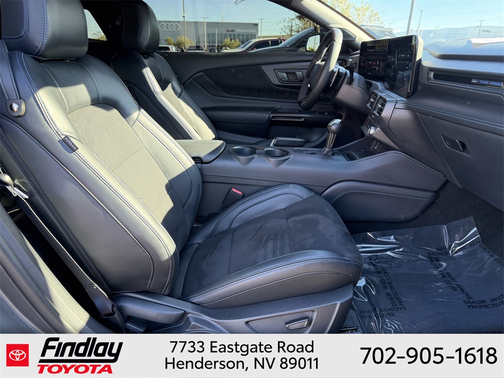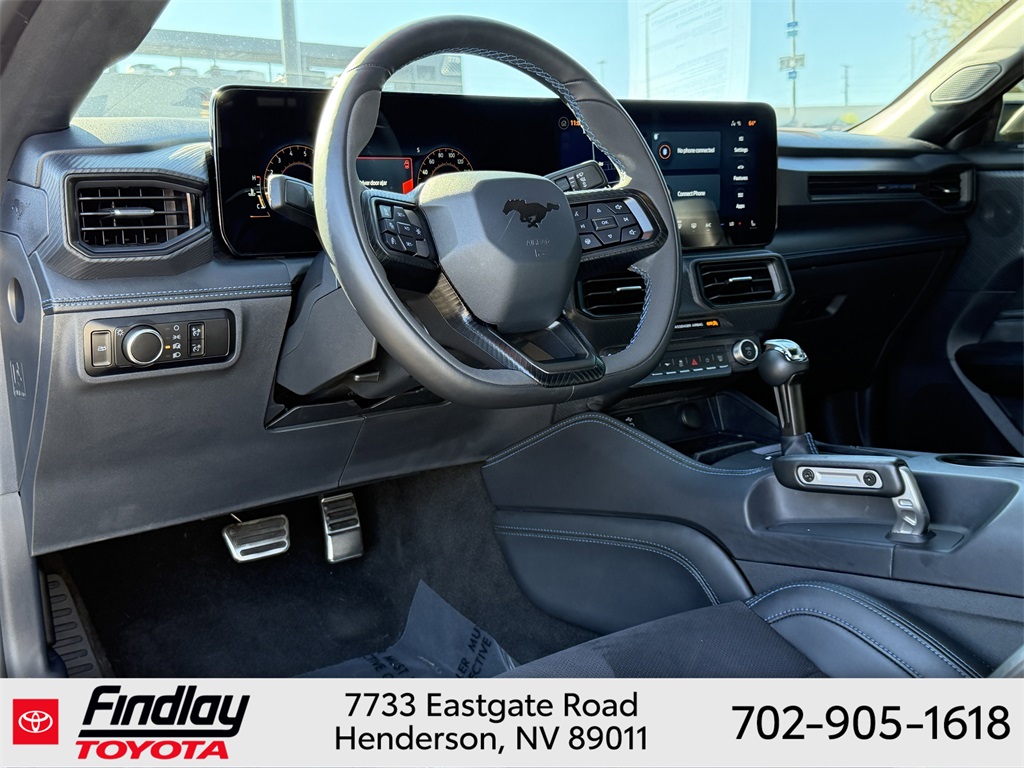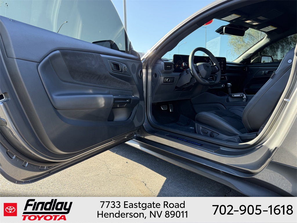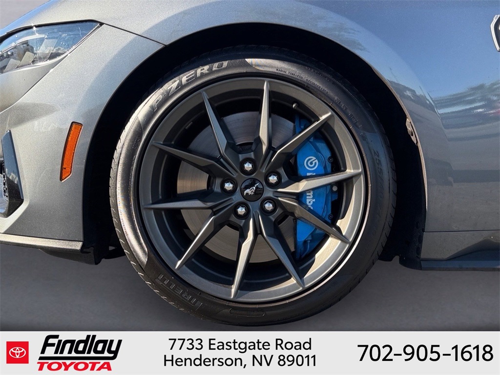 Looking for the best quality used cars near Las Vegas? Findlay Toyota of Henderson is your top destination. As the premier dealership in Nevada, we offer an extensive selection of top-notch pre-owned vehicles, ensuring you find the perfect car to fit your needs and budget. Conveniently located at 7733 Eastgate Rd in the Valley Automall, our dealership spans 12 1⁄2 acres and features a 145,000-square-foot facility, including Nevada’s only Master Certified Toyota Service Department. Our expert sales and financing teams are dedicated to providing a hassle-free buying experience, and our state-of-the-art service center is equipped to handle everything from routine maintenance to major repairs. Our multilingual staff speaks 14 languages, making us accessible to a diverse range of customers. Beyond exceptional service, we are committed to giving back to the Henderson community through initiatives like Toys for Tots and the Las Vegas Rescue Mission. Discover why Findlay Toyota of Henderson is the trusted choice for quality used cars and exceptional service. Visit us today and drive home in your dream car! This Ford Mustang is equipped with the following equipment: Equipment Group 700A Deluxe Package (Aluminum Foot Pedals, Approach Detection, Cloth/Vinyl Climate-Controlled Bucket Seats, Memory Driver Seat & Mirrors, and Universal Garage Door Opener (UGDO)), Ford Co-Pilot360 Assist+ (Adaptive Speed Control w/Stop & Go, Connected Built-In Navigation, and Lane-Keeping System w/Lane Keeping Aid), Security Package (Active Anti-Theft System, Electronic-Locking Center Console, and Wheel Locking Kit), 12 Speakers, 4-Wheel Disc Brakes, ABS brakes, Adaptive suspension, Air Conditioning, Alloy wheels, AM/FM radio: SiriusXM with 360L, AM/FM Stereo, Auto High-beam Headlights, Auto-dimming Rear-View mirror, Automatic temperature control, B&O Sound System by Bang & Olufsen, Brake assist, Bumpers: body-color, Cloth/Vinyl Heated Bucket Seats, Compass, Delay-off headlights, Driver door bin, Driver vanity mirror, Dual front impact airbags, Dual front side impact airbags, Electronic Stability Control, Emergency communication system: 911 Assist, Exterior Parking Camera Rear, Four wheel independent suspension, Front anti-roll bar, Front Bucket Seats, Front Center Armrest, Front dual zone A/C, Front reading lights, Fully automatic headlights, Grabber Blue Brake Calipers w/White Logo, HD Radio, Heated front seats, Heated steering wheel, Illuminated entry, Knee airbag, Low tire pressure warning, Navigation system: Connected Navigation, Occupant sensing airbag, Outside temperature display, Overhead airbag, Overhead console, Panic alarm, Passenger door bin, Passenger vanity mirror, Power door mirrors, Power driver seat, Power passenger seat, Power steering, Power windows, Radio data system, Rain sensing wipers, Rear anti-roll bar, Rear Parking Sensors, Rear window defroster, Remote keyless entry, SiriusXM w/360L, Speed control, Speed-sensing steering, Speed-Sensitive Wipers, Split folding rear seat, Spoiler, Sport steering wheel, Steering wheel mounted audio controls, SYNC 4.0 QNX, Tachometer, Tarnish Dark Low Gloss/Gloss Blk Vinyl Hood Stripe, Telescoping steering wheel, Tilt steering wheel, Traction control, Trip computer, Variably intermittent wipers, Voltmeter, and Wheels: 19" x 9.5" Fr & 19" x 10" Rr Aluminum. ** This 2024 Ford Mustang is equipped with 4V RWD**, ** and this Mustang is trimmed in Carbonized Gray Metallic with Deep Indigo interior**.