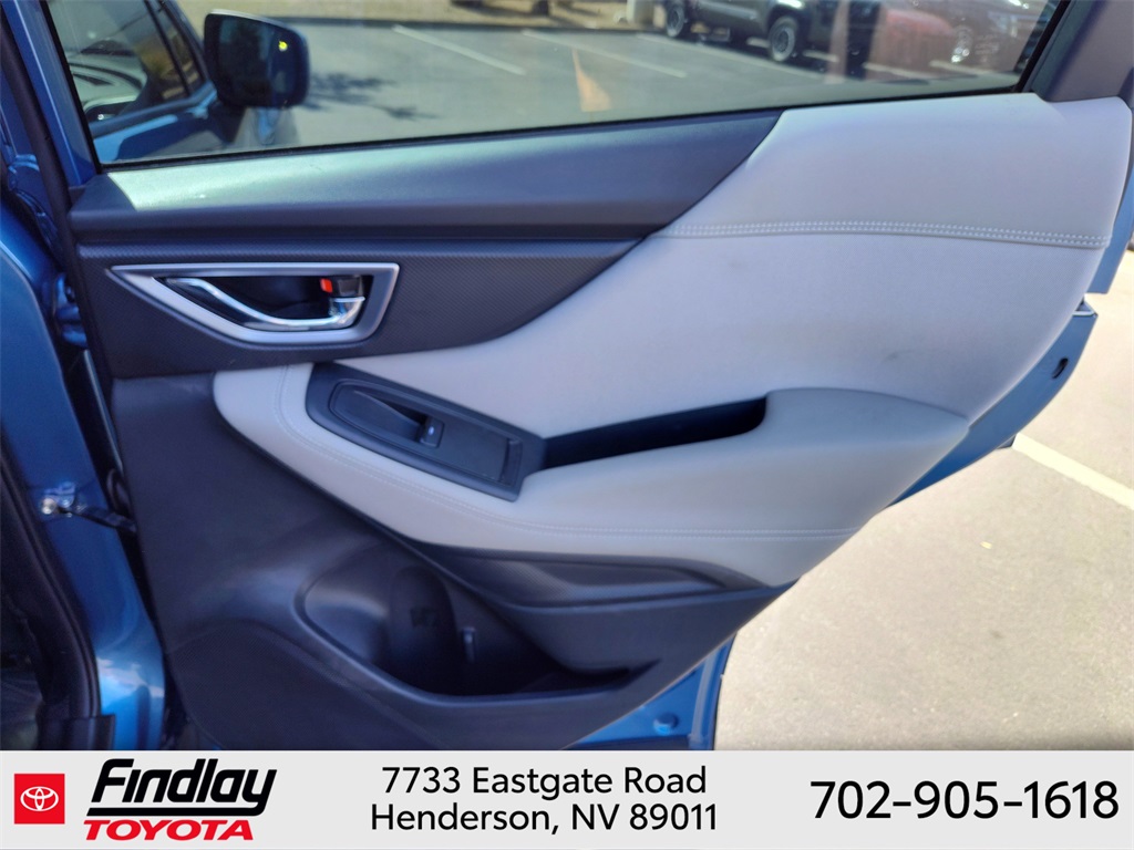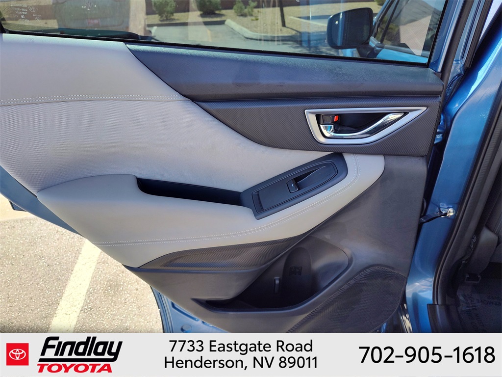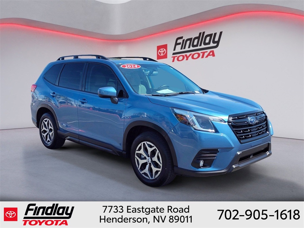 Looking for the best quality used cars near Las Vegas? Findlay Toyota of Henderson is your top destination. As the premier dealership in Nevada, we offer an extensive selection of top-notch pre-owned vehicles, ensuring you find the perfect car to fit your needs and budget. Conveniently located at 7733 Eastgate Rd in the Valley Automall, our dealership spans 12 1⁄2 acres and features a 145,000-square-foot facility, including Nevada’s only Master Certified Toyota Service Department. Our expert sales and financing teams are dedicated to providing a hassle-free buying experience, and our state-of-the-art service center is equipped to handle everything from routine maintenance to major repairs. Our multilingual staff speaks 14 languages, making us accessible to a diverse range of customers. Beyond exceptional service, we are committed to giving back to the Henderson community through initiatives like Toys for Tots and the Las Vegas Rescue Mission. Discover why Findlay Toyota of Henderson is the trusted choice for quality used cars and exceptional service. Visit us today and drive home in your dream car! This Subaru Forester is equipped with the following equipment: Blind Spot Detection w/RCTA & Power Rear Gate (Blind-Spot Detection (BSD), Driver's Seatback Divided Pocket, Dual USB Charge Ports, EyeSight System, Multi-Function High Grade Display, and Power Rear Gate), 3.70 Axle Ratio, 4-Wheel Disc Brakes, 6 Speakers, ABS brakes, Air Conditioning, Alloy wheels, AM/FM radio: SiriusXM, Anti-whiplash front head restraints, Auto High-beam Headlights, Auto-Dimming Exterior Mirror w/Approach Light, Auto-Dimming Mirror w/Compass & HomeLink, Automatic temperature control, Brake assist, Bumpers: body-color, Driver door bin, Driver vanity mirror, Dual front impact airbags, Dual front side impact airbags, Electronic Stability Control, Emergency communication system: STARLINK Safety and Security (Subscription Required), Exterior Parking Camera Rear, Four wheel independent suspension, Front anti-roll bar, Front Bucket Seats, Front Center Armrest, Front fog lights, Front reading lights, Fully automatic headlights, Heated door mirrors, Heated Front Bucket Seats, Heated front seats, Illuminated entry, Knee airbag, Leather steering wheel, Low tire pressure warning, Occupant sensing airbag, Outside temperature display, Overhead airbag, Overhead console, Panic alarm, Passenger door bin, Passenger vanity mirror, Power door mirrors, Power driver seat, Power moonroof: Panoramic, Power steering, Power windows, Premium Cloth Upholstery, Radio data system, Radio: Subaru STARLINK 6.5" Multimedia Plus System, Rear anti-roll bar, Rear seat center armrest, Rear window defroster, Rear window wiper, Remote keyless entry, Roof rack: rails only, Security system, Speed control, Speed-sensing steering, Split folding rear seat, Spoiler, STARLINK/Apple CarPlay/Android Auto, Steering wheel mounted audio controls, Tachometer, Telescoping steering wheel, Tilt steering wheel, Traction control, Trip computer, Variably intermittent wipers, and Wheels: 17" x 7.0 J Black Machine Finish Alloy. ** This 2024 Subaru Forester is equipped with 2.5L 4-Cylinder DOHC 16V AWD**, ** and this Forester is trimmed in Horizon Blue Pearl with Gray interior**.