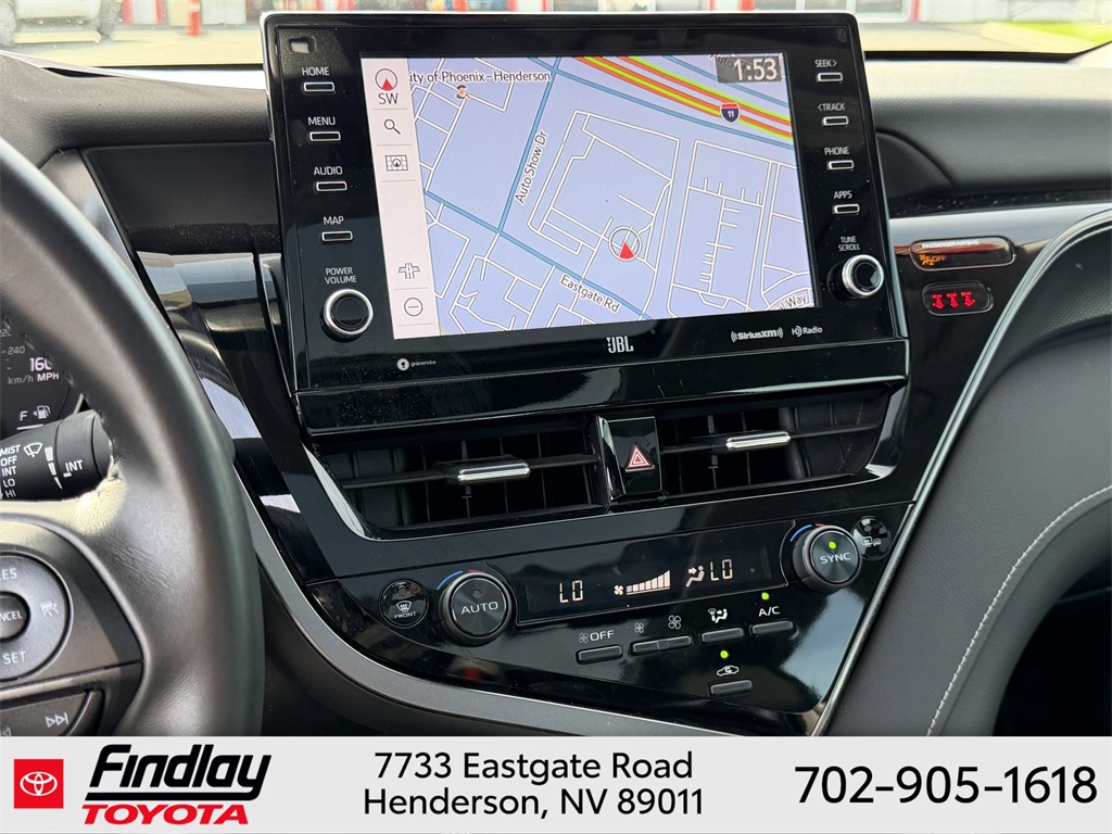 Looking for the best quality used cars near Las Vegas? Findlay Toyota of Henderson is your top destination. As the premier dealership in Nevada, we offer an extensive selection of top-notch pre-owned vehicles, ensuring you find the perfect car to fit your needs and budget. Conveniently located at 7733 Eastgate Rd in the Valley Automall, our dealership spans 12 1⁄2 acres and features a 145,000-square-foot facility, including Nevada’s only Master Certified Toyota Service Department. Our expert sales and financing teams are dedicated to providing a hassle-free buying experience, and our state-of-the-art service center is equipped to handle everything from routine maintenance to major repairs. Our multilingual staff speaks 14 languages, making us accessible to a diverse range of customers. Beyond exceptional service, we are committed to giving back to the Henderson community through initiatives like Toys for Tots and the Las Vegas Rescue Mission. Discover why Findlay Toyota of Henderson is the trusted choice for quality used cars and exceptional service. Visit us today and drive home in your dream car! This Toyota Camry is equipped with the following equipment: Black Perforate Leather, 4-Wheel Disc Brakes, 9 Speakers, ABS brakes, Air Conditioning, Alloy wheels, AM/FM radio: SiriusXM, Apple CarPlay/Android Auto, Auto High-beam Headlights, Auto-dimming Rear-View mirror, Automatic temperature control, Brake assist, Bumpers: body-color, Compass, Delay-off headlights, Driver door bin, Driver vanity mirror, Dual front impact airbags, Dual front side impact airbags, Electronic Stability Control, Emergency communication system: Safety Connect (1-year trial), Exterior Parking Camera Rear, Four wheel independent suspension, Front anti-roll bar, Front Bucket Seats, Front Center Armrest, Front dual zone A/C, Front reading lights, Fully automatic headlights, Garage door transmitter: HomeLink, Heads-Up Display, Heated door mirrors, Heated front seats, Illuminated entry, Knee airbag, Leather steering wheel, Low tire pressure warning, Multi-Stage Heated Front Bucket Seats, Occupant sensing airbag, Outside temperature display, Overhead airbag, Overhead console, Panic alarm, Passenger door bin, Passenger vanity mirror, Perforated Leather Seat Trim, Power door mirrors, Power driver seat, Power moonroof, Power passenger seat, Power steering, Power windows, Radio data system, Radio: Audio Plus w/JBL, Rear anti-roll bar, Rear reading lights, Rear seat center armrest, Rear side impact airbag, Rear window defroster, Remote keyless entry, Security system, Speed control, Speed-sensing steering, Split folding rear seat, Spoiler, Steering wheel mounted audio controls, Tachometer, Telescoping steering wheel, Tilt steering wheel, Traction control, Trip computer, Turn signal indicator mirrors, Variably intermittent wipers, and Wheels: 19" x 8J Alloy. ** This 2024 Toyota Camry is equipped with 3.5L V6 DOHC 24V FWD**, ** and this Camry is trimmed in Gray with Black Perforate interior**, Black Perforate Leather.