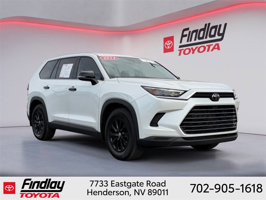 Looking for the best quality used cars near Las Vegas? Findlay Toyota of Henderson is your top destination. As the premier dealership in Nevada, we offer an extensive selection of top-notch pre-owned vehicles, ensuring you find the perfect car to fit your needs and budget. Conveniently located at 7733 Eastgate Rd in the Valley Automall, our dealership spans 12 1⁄2 acres and features a 145,000-square-foot facility, including Nevada’s only Master Certified Toyota Service Department. Our expert sales and financing teams are dedicated to providing a hassle-free buying experience, and our state-of-the-art service center is equipped to handle everything from routine maintenance to major repairs. Our multilingual staff speaks 14 languages, making us accessible to a diverse range of customers. Beyond exceptional service, we are committed to giving back to the Henderson community through initiatives like Toys for Tots and the Las Vegas Rescue Mission. Discover why Findlay Toyota of Henderson is the trusted choice for quality used cars and exceptional service. Visit us today and drive home in your dream car! This Toyota Grand Highlander is equipped with the following equipment: 18" Aluminum Alloy Wheels, 3.33 Axle Ratio, 3rd row seats: split-bench, 4-Wheel Disc Brakes, 6 Speakers, ABS brakes, Air Conditioning, Alloy wheels, AM/FM radio: SiriusXM, Apple CarPlay/Android Auto, Auto High-beam Headlights, Auto-dimming Rear-View mirror, Automatic temperature control, Brake assist, Bumpers: body-color, Delay-off headlights, Driver door bin, Driver vanity mirror, Dual front impact airbags, Dual front side impact airbags, Electronic Stability Control, Emergency communication system: Safety Connect (up to 10-year trial subscription), Exterior Parking Camera Rear, Four wheel independent suspension, Front anti-roll bar, Front Bucket Seats, Front Center Armrest, Front dual zone A/C, Front reading lights, Fully automatic headlights, Garage door transmitter: HomeLink, Heated door mirrors, Heated Front Seats, Heated front seats, Illuminated entry, Knee airbag, Leather Shift Knob, Leather steering wheel, Low tire pressure warning, Navigation system: Drive Connect Cloud Navigation (1-year trial subscription), Occupant sensing airbag, Outside temperature display, Overhead airbag, Overhead console, Panic alarm, Passenger door bin, Passenger vanity mirror, Power door mirrors, Power driver seat, Power Liftgate, Power passenger seat, Power steering, Power windows, Radio: 12.3" Toyota Audio Multimedia, Rear air conditioning, Rear anti-roll bar, Rear reading lights, Rear window defroster, Rear window wiper, Reclining 3rd row seat, Remote keyless entry, Security system, SofTex Seat Trim, Speed control, Speed-sensing steering, Split folding rear seat, Spoiler, Steering wheel mounted audio controls, Tachometer, Telescoping steering wheel, Tilt steering wheel, Traction control, Trip computer, Turn signal indicator mirrors, and Variably intermittent wipers. ** This 2024 Toyota Grand Highlander is equipped with 2.4L 4-Cylinder AWD**, ** and this Grand Highlander is trimmed in White with Ea20 interior**.