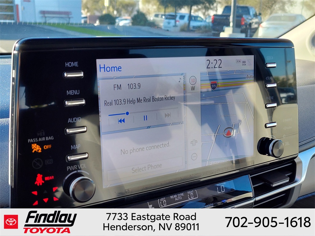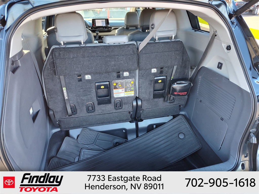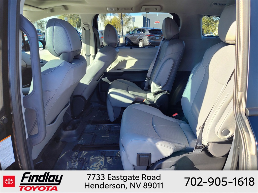 Looking for the best quality used cars near Las Vegas? Findlay Toyota of Henderson is your top destination. As the premier dealership in Nevada, we offer an extensive selection of top-notch pre-owned vehicles, ensuring you find the perfect car to fit your needs and budget. Conveniently located at 7733 Eastgate Rd in the Valley Automall, our dealership spans 12 1⁄2 acres and features a 145,000-square-foot facility, including Nevada’s only Master Certified Toyota Service Department. Our expert sales and financing teams are dedicated to providing a hassle-free buying experience, and our state-of-the-art service center is equipped to handle everything from routine maintenance to major repairs. Our multilingual staff speaks 14 languages, making us accessible to a diverse range of customers. Beyond exceptional service, we are committed to giving back to the Henderson community through initiatives like Toys for Tots and the Las Vegas Rescue Mission. Discover why Findlay Toyota of Henderson is the trusted choice for quality used cars and exceptional service. Visit us today and drive home in your dream car! This Toyota Sienna is equipped with the following equipment: Toyota Certified Used Hybrids Certified, 12 Speakers, 3rd row seats: split-bench, 4-Wheel Disc Brakes, ABS brakes, Air Conditioning, Alloy wheels, AM/FM radio: SiriusXM, Apple CarPlay/Android Auto, Auto High-beam Headlights, Auto-dimming door mirrors, Auto-dimming Rear-View mirror, Automatic temperature control, Axle Ratio: TBA, Brake assist, Bumpers: body-color, Compass, Delay-off headlights, Door auto-latch, Driver door bin, Driver vanity mirror, Driver's Seat Mounted Armrest, Dual front impact airbags, Dual front side impact airbags, Electronic Stability Control, Emergency communication system: Safety Connect (3-year trial), Exterior Parking Camera Rear, Four wheel independent suspension, Front anti-roll bar, Front Bucket Seats, Front dual zone A/C, Front fog lights, Front Heated Bucket Seats, Front reading lights, Fully automatic headlights, Garage door transmitter: HomeLink, Heated door mirrors, Heated front seats, Illuminated entry, Knee airbag, Lane Departure Warning System, Leather Seat Material, Leather Shift Knob, Leather steering wheel, Low tire pressure warning, Memory seat, Navigation System, Occupant sensing airbag, Outside temperature display, Overhead airbag, Overhead console, Panic alarm, Passenger door bin, Passenger seat mounted armrest, Passenger vanity mirror, Power door mirrors, Power driver seat, Power Liftgate, Power moonroof, Power passenger seat, Power steering, Power windows, Radio data system, Radio: Premium JBL Audio w/Navigation, Rear air conditioning, Rear anti-roll bar, Rear dual zone A/C, Rear reading lights, Rear side impact airbag, Rear window defroster, Rear window wiper, Reclining 3rd row seat, Remote keyless entry, Speed control, Speed-sensing steering, Split folding rear seat, Spoiler, Steering wheel memory, Steering wheel mounted audi