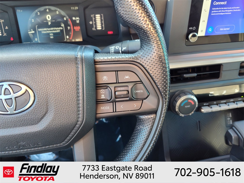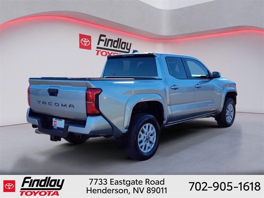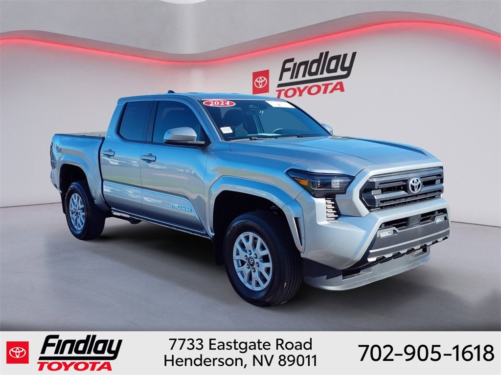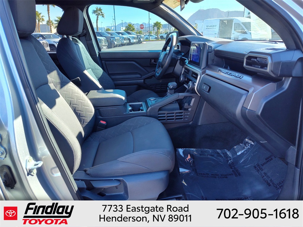 Looking for the best quality used cars near Las Vegas? Findlay Toyota of Henderson is your top destination. As the premier dealership in Nevada, we offer an extensive selection of top-notch pre-owned vehicles, ensuring you find the perfect car to fit your needs and budget. Conveniently located at 7733 Eastgate Rd in the Valley Automall, our dealership spans 12 1⁄2 acres and features a 145,000-square-foot facility, including Nevada’s only Master Certified Toyota Service Department. Our expert sales and financing teams are dedicated to providing a hassle-free buying experience, and our state-of-the-art service center is equipped to handle everything from routine maintenance to major repairs. Our multilingual staff speaks 14 languages, making us accessible to a diverse range of customers. Beyond exceptional service, we are committed to giving back to the Henderson community through initiatives like Toys for Tots and the Las Vegas Rescue Mission. Discover why Findlay Toyota of Henderson is the trusted choice for quality used cars and exceptional service. Visit us today and drive home in your dream car! This Toyota Tacoma is equipped with the following equipment: 3.583 Axle Ratio, 4-Wheel Disc Brakes, 6 Speakers, ABS brakes, Air Conditioning, Alloy wheels, AM/FM radio: SiriusXM, Anti-whiplash front head restraints, Apple CarPlay/Android Auto, Auto High-beam Headlights, Auto-dimming Rear-View mirror, Brake assist, Bumpers: body-color, Driver door bin, Dual front impact airbags, Dual front side impact airbags, Electronic Stability Control, Emergency communication system: Safety Connect (1-year trial), Exterior Parking Camera Rear, Four wheel independent suspension, Front anti-roll bar, Front Bucket Seats, Front Center Armrest, Front fog lights, Front reading lights, Fully automatic headlights, Heated door mirrors, Illuminated entry, Knee airbag, Low tire pressure warning, Occupant sensing airbag, Outside temperature display, Overhead airbag, Overhead console, Panic alarm, Passenger door bin, Power door mirrors, Power steering, Power windows, Radio: 8" Toyota Audio Multimedia, Rear step bumper, Rear window defroster, Remote keyless entry, Speed control, Speed-sensing steering, Split folding rear seat, Steering wheel mounted audio controls, Tachometer, Telescoping steering wheel, Tilt steering wheel, Traction control, Trip computer, and Variably intermittent wipers. ** This 2024 Toyota Tacoma is equipped with 2.4L 4-Cylinder RWD**, ** and this Tacoma is trimmed in Celestial Silver Metallic with Black interior**.