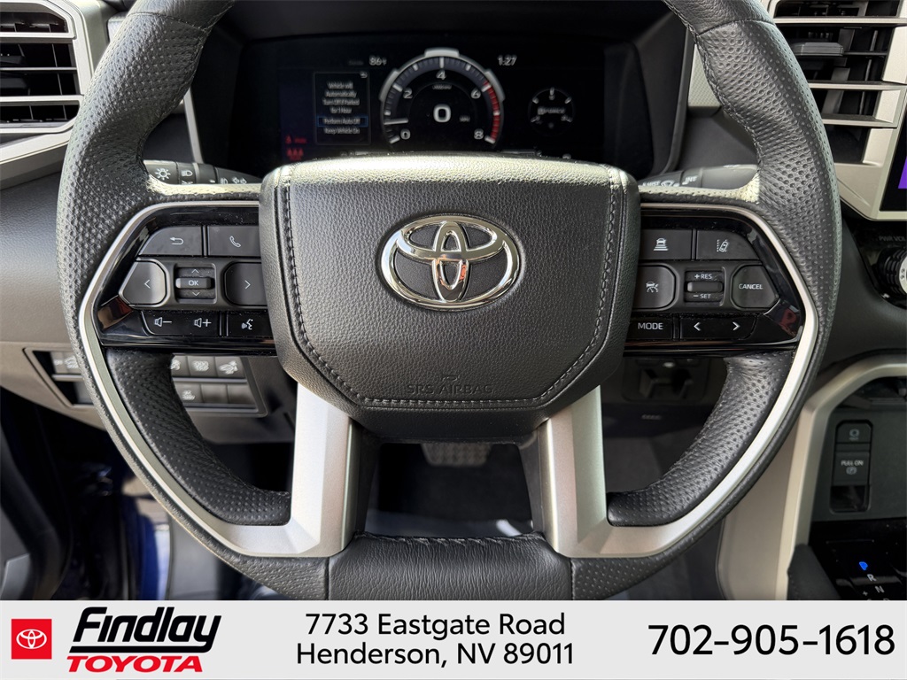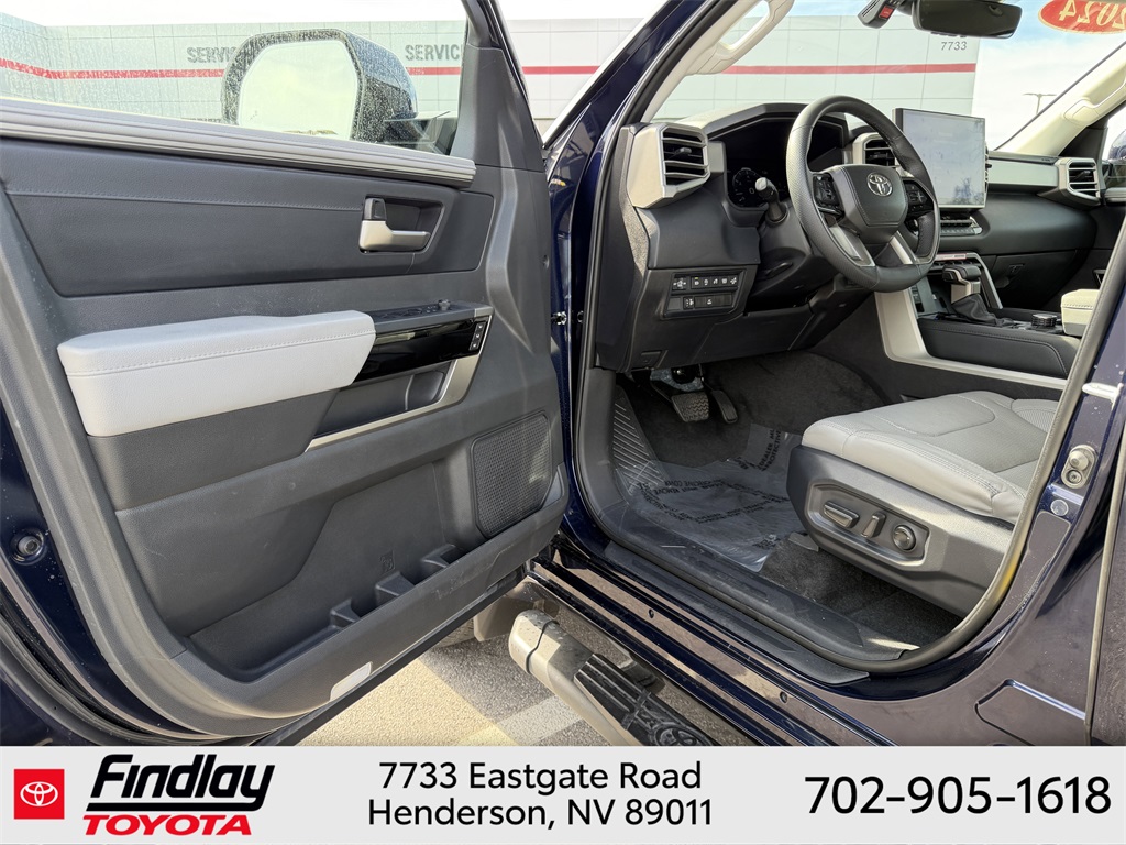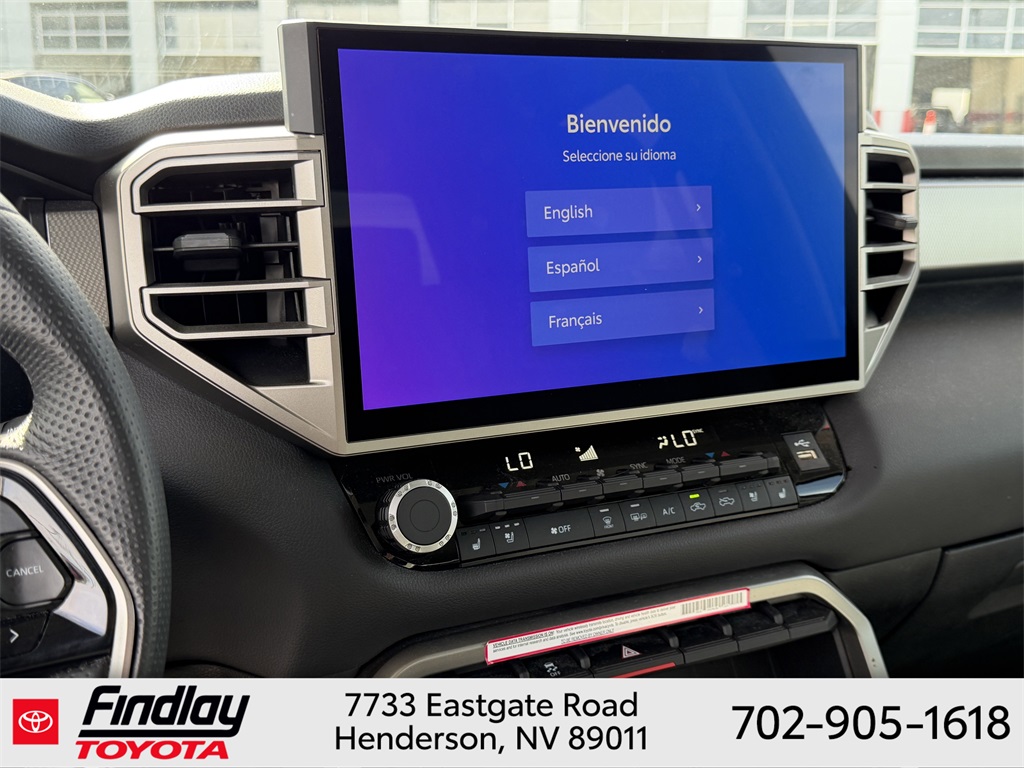 Looking for the best quality used cars near Las Vegas? Findlay Toyota of Henderson is your top destination. As the premier dealership in Nevada, we offer an extensive selection of top-notch pre-owned vehicles, ensuring you find the perfect car to fit your needs and budget. Conveniently located at 7733 Eastgate Rd in the Valley Automall, our dealership spans 12 1⁄2 acres and features a 145,000-square-foot facility, including Nevada’s only Master Certified Toyota Service Department. Our expert sales and financing teams are dedicated to providing a hassle-free buying experience, and our state-of-the-art service center is equipped to handle everything from routine maintenance to major repairs. Our multilingual staff speaks 14 languages, making us accessible to a diverse range of customers. Beyond exceptional service, we are committed to giving back to the Henderson community through initiatives like Toys for Tots and the Las Vegas Rescue Mission. Discover why Findlay Toyota of Henderson is the trusted choice for quality used cars and exceptional service. Visit us today and drive home in your dream car! This Toyota Tundra is equipped with the following equipment: 4WD, Boulder w/SofTex Seat Trim, 20" Alloy Wheels, 3.31 Axle Ratio, 4-Wheel Disc Brakes, 8-Way Pwr Adjustable Heated/Ventilated Front Seats, 9 Speakers, ABS brakes, Air Conditioning, Alloy wheels, AM/FM radio: SiriusXM, Apple CarPlay/Android Auto, Auto High-beam Headlights, Auto-dimming door mirrors, Auto-dimming Rear-View mirror, Automatic temperature control, Brake assist, Bumpers: body-color, Delay-off headlights, Driver door bin, Driver vanity mirror, Dual front impact airbags, Dual front side impact airbags, Electronic Stability Control, Emergency communication system: Safety Connect (10-year trial), Exterior Parking Camera Rear, Front anti-roll bar, Front Bucket Seats, Front Center Armrest, Front dual zone A/C, Front fog lights, Front reading lights, Front wheel independent suspension, Fully automatic headlights, Garage door transmitter: HomeLink, Heated door mirrors, Heated front seats, Illuminated entry, Knee airbag, Leather Shift Knob, Low tire pressure warning, Memory seat, Navigation System, Occupant sensing airbag, Outside temperature display, Overhead airbag, Overhead console, Panic alarm, Passenger door bin, Passenger vanity mirror, Power door mirrors, Power driver seat, Power passenger seat, Power steering, Power windows, Radio data system, Radio: Audio Multimedia System, Rear reading lights, Rear seat center armrest, Rear step bumper, Rear window defroster, Remote keyless entry, Safety Connect, Security system, SofTex Seat Trim, Speed control, Speed-sensing steering, Split folding rear seat, Steering wheel mounted audio controls, Tachometer, Telescoping steering wheel, Tilt steering wheel, Traction control, Trip computer, Turn signal indicator mirrors, Variably intermittent wipers, Ventilated front seats, and Voltmeter. ** This 2024 Toyota Tundra is equipped with 3.4L V6 4WD**, ** and this Tundra is trimmed in Blueprint with Boulder interior**, 4WD, Boulder w/SofTex Seat Trim.