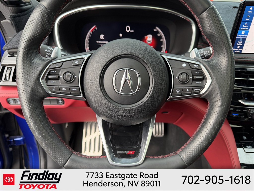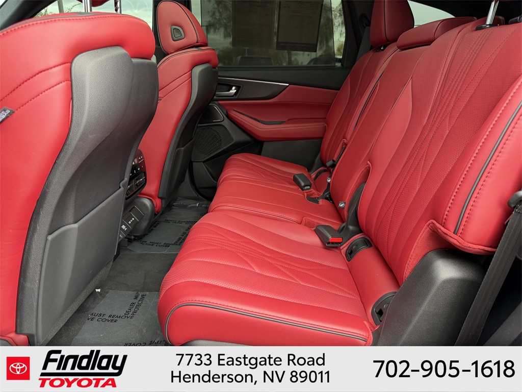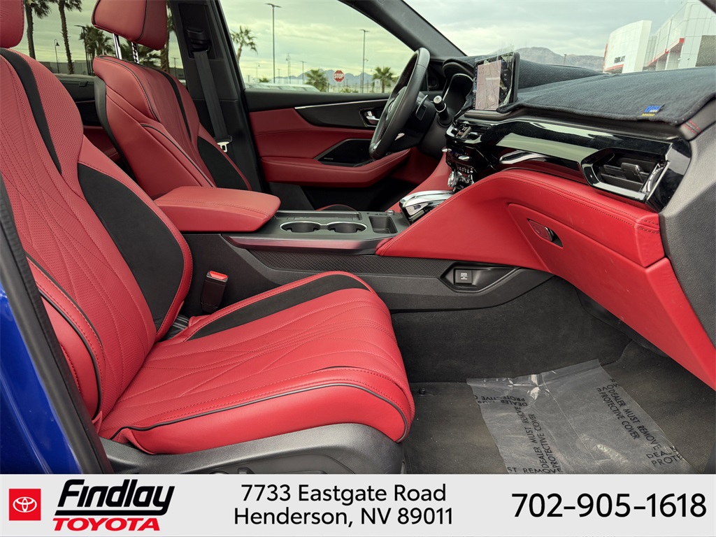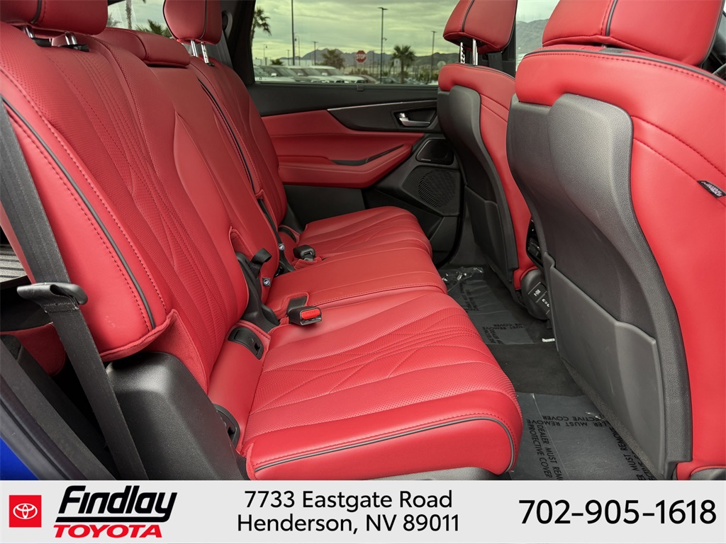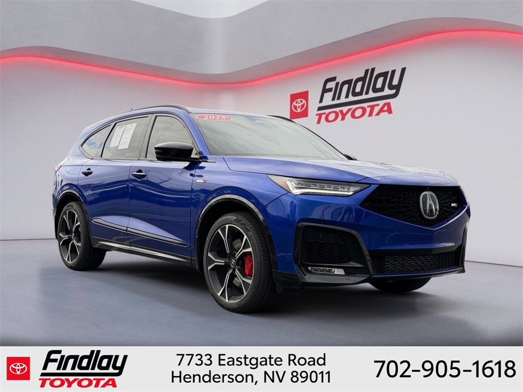 Looking for the best quality used cars near Las Vegas? Findlay Toyota of Henderson is your top destination. As the premier dealership in Nevada, we offer an extensive selection of top-notch pre-owned vehicles, ensuring you find the perfect car to fit your needs and budget. Conveniently located at 7733 Eastgate Rd in the Valley Automall, our dealership spans 12 1⁄2 acres and features a 145,000-square-foot facility, including Nevada’s only Master Certified Toyota Service Department. Our expert sales and financing teams are dedicated to providing a hassle-free buying experience, and our state-of-the-art service center is equipped to handle everything from routine maintenance to major repairs. Our multilingual staff speaks 14 languages, making us accessible to a diverse range of customers. Beyond exceptional service, we are committed to giving back to the Henderson community through initiatives like Toys for Tots and the Las Vegas Rescue Mission. Discover why Findlay Toyota of Henderson is the trusted choice for quality used cars and exceptional service. Visit us today and drive home in your dream car! This Acura MDX is equipped with the following equipment: Red w/Curvilinear Qltd Perforated Prem Milano Lthr Seats, 3rd row seats: split-bench, 4-Wheel Disc Brakes, ABS brakes, Adaptive suspension, Air Conditioning, Alloy wheels, Anti-whiplash front head restraints, Apple CarPlay/Android Auto, Audio memory, Auto High-beam Headlights, Auto tilt-away steering wheel, Auto-dimming Rear-View mirror, Auto-leveling suspension, Automatic temperature control, Brake assist, Bumpers: body-color, Compass, Delay-off headlights, Driver door bin, Driver vanity mirror, Dual front impact airbags, Dual front side impact airbags, Electronic Stability Control, Emergency communication system: AcuraLink, Exterior Parking Camera Rear, Four wheel independent suspension, Front anti-roll bar, Front Bucket Seats, Front Center Armrest, Front dual zone A/C, Front fog lights, Front reading lights, Fully automatic headlights, Garage door transmitter: HomeLink, Heads-Up Display, Heated door mirrors, Heated front seats, Heated rear seats, Heated steering wheel, HVAC memory, Illuminated entry, Knee airbag, Lane departure: Lane Keeping Assist System (LKAS) active, Leather steering wheel, Low tire pressure warning, Memory seat, Navigation system: Google built-in (3-Years Unlimited Data Plan for In-Vehicle Apps), Occupant sensing airbag, Outside temperature display, Overhead airbag, Overhead console, Panic alarm, Passenger door bin, Passenger vanity mirror, Power door mirrors, Power driver seat, Power Liftgate, Power moonroof, Power passenger seat, Power steering, Power windows, Premium audio system: ELS Studio 3D Signature Edition, Radio data system, Rain sensing wipers, Rear air conditioning, Rear anti-roll bar, Rear reading lights, Rear seat center armrest, Rear window defroster, Rear window wiper, Remote keyless entry, Security system, Speed control, Speed-sensing steering, Speed-Sensitive Wipers, Split folding rear seat, Spoiler, Sport steering wheel, Steering wheel memory, Steering wheel mounted audio controls, Tachometer, Telescoping steering wheel, Tilt steering wheel, Traction control, Trip computer, Turn signal indicator mirrors, Variably intermittent wipers, Ventilated front seats, and Wheels: 21" x 9.5J Aluminum Alloy. ** This 2025 Acura MDX is equipped with 3.0L V6 DOHC 24V AWD**, ** and this MDX is trimmed in Apex Blue Pearl with Red interior**, Red w/Curvilinear Qltd Perforated Prem Milano Lthr Seats.