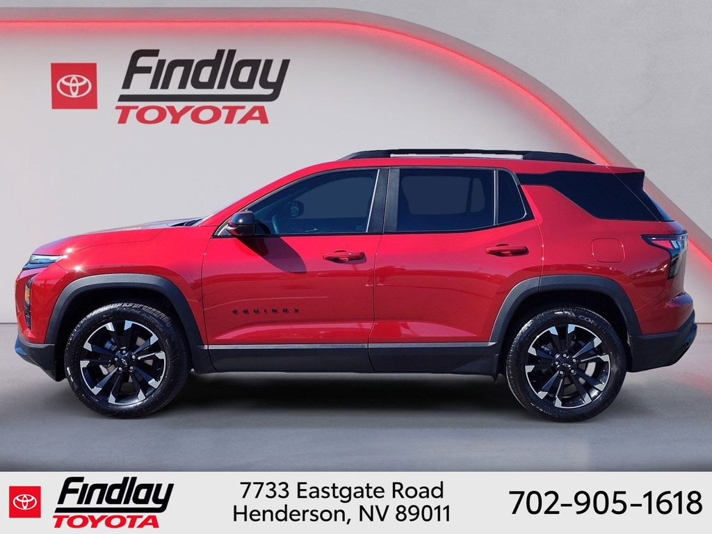 Looking for the best quality used cars near Las Vegas? Findlay Toyota of Henderson is your top destination. As the premier dealership in Nevada, we offer an extensive selection of top-notch pre-owned vehicles, ensuring you find the perfect car to fit your needs and budget. Conveniently located at 7733 Eastgate Rd in the Valley Automall, our dealership spans 12 1⁄2 acres and features a 145,000-square-foot facility, including Nevada’s only Master Certified Toyota Service Department. Our expert sales and financing teams are dedicated to providing a hassle-free buying experience, and our state-of-the-art service center is equipped to handle everything from routine maintenance to major repairs. Our multilingual staff speaks 14 languages, making us accessible to a diverse range of customers. Beyond exceptional service, we are committed to giving back to the Henderson community through initiatives like Toys for Tots and the Las Vegas Rescue Mission. Discover why Findlay Toyota of Henderson is the trusted choice for quality used cars and exceptional service. Visit us today and drive home in your dream car! This Chevrolet Equinox is equipped with the following equipment: Convenience Package III (Front Passenger 2-Way Power Lumbar Seat Adjuster, Front Passenger 8-Way Power Seat Adjuster, Heated Rear Outboard Seating Positions, Memory Settings, Ventilated Driver Seat, and Ventilated Front Passenger Seat), Preferred Equipment Group 2RS, Safety & Technology Package (Front Fog Lamps, HD Surround Vision, Rear Pedestrian Alert, and Traffic Sign Recognition), AWD, 2-Way Power Driver Lumbar Control Seat Adjuster, 3.47 Final Drive Axle Ratio, 4-Wheel Disc Brakes, 6 Speakers, ABS brakes, Air Conditioning, Alloy wheels, AM/FM radio: SiriusXM, Auto High-beam Headlights, Automatic temperature control, Brake assist, Bumpers: body-color, Compass, Delay-off headlights, Driver 8-Way Power Seat Adjuster, Driver door bin, Driver vanity mirror, Dual front impact airbags, Dual front side impact airbags, Electronic Stability Control, Emergency communication system: OnStar and Chevrolet connected services capable, Evotex Seat Trim, Four wheel independent suspension, Front anti-roll bar, Front Bucket Seats, Front Center Armrest, Front dual zone A/C, Front Passenger 4-Way Manual Seat Adjuster, Front reading lights, Fully automatic headlights, Garage door transmitter, Heated door mirrors, Heated Driver & Front Passenger Seats, Heated front seats, Heated steering wheel, Illuminated entry, Low tire pressure warning, Navigation System, Occupant sensing airbag, Outside temperature display, Overhead airbag, Overhead console, Panic alarm, Passenger door bin, Passenger vanity mirror, Power door mirrors, Power driver seat, Power Dual Glass Panoramic Sliding Sunroof, Power Liftgate, Power steering, Power windows, Premium audio system: Chevrolet Infotainment 3, Radio data system, Radio: 11.3" Diagonal Advanced Color LCD Display, Rain sensing wipers, Rear anti-roll bar, Rear Camera Mirror Washer, Rear reading lights, Rear seat center armrest, Rear window defroster, Rear window wiper, Remote keyless entry, Retractable Cargo Shade, Security system, SiriusXM, Speed control, Speed-sensing steering, Split folding rear seat, Spoiler, Sport steering wheel, Steering wheel mounted audio controls, Tachometer, Telescoping steering wheel, Tilt steering wheel, Traction control, Trip computer, Universal Home Remote Non-Functional, Variably intermittent wipers, Vertical Cargo Net (LPO), and Wheels: 19" Carbon Flash Metallic Aluminum. ** This 2025 Chevrolet Equinox is equipped with 1.5L DOHC AWD**, ** and this Equinox is trimmed in Radiant Red Tintcoat with Black With Red Accents interior**, AWD.
