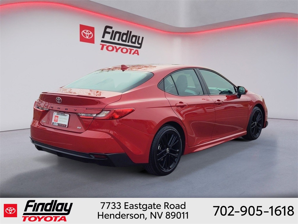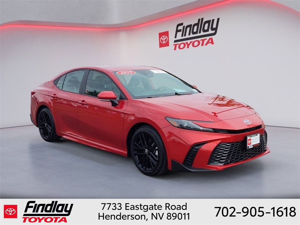 Looking for the best quality used cars near Las Vegas? Findlay Toyota of Henderson is your top destination. As the premier dealership in Nevada, we offer an extensive selection of top-notch pre-owned vehicles, ensuring you find the perfect car to fit your needs and budget. Conveniently located at 7733 Eastgate Rd in the Valley Automall, our dealership spans 12 1⁄2 acres and features a 145,000-square-foot facility, including Nevada’s only Master Certified Toyota Service Department. Our expert sales and financing teams are dedicated to providing a hassle-free buying experience, and our state-of-the-art service center is equipped to handle everything from routine maintenance to major repairs. Our multilingual staff speaks 14 languages, making us accessible to a diverse range of customers. Beyond exceptional service, we are committed to giving back to the Henderson community through initiatives like Toys for Tots and the Las Vegas Rescue Mission. Discover why Findlay Toyota of Henderson is the trusted choice for quality used cars and exceptional service. Visit us today and drive home in your dream car! This Toyota Camry is equipped with the following equipment: 2.5L 4-Cylinder 16V DOHC, Black, 4-Wheel Disc Brakes, 6 Speakers, ABS brakes, Air Conditioning, Alloy wheels, AM/FM radio: SiriusXM, Apple CarPlay/Android Auto, Auto High-beam Headlights, Automatic temperature control, Brake assist, Bumpers: body-color, Delay-off headlights, Driver door bin, Driver vanity mirror, Dual front impact airbags, Dual front side impact airbags, Electronic Stability Control, Emergency communication system: Safety Connect (up to 10-year trial subscription), Exterior Parking Camera Rear, Four wheel independent suspension, Front anti-roll bar, Front Bucket Seats, Front Center Armrest, Front dual zone A/C, Front reading lights, Fully automatic headlights, Heated door mirrors, Illuminated entry, Knee airbag, Low tire pressure warning, Occupant sensing airbag, Outside temperature display, Overhead airbag, Overhead console, Panic alarm, Passenger door bin, Passenger vanity mirror, Power door mirrors, Power steering, Power windows, Radio data system, Rear anti-roll bar, Rear seat center armrest, Rear side impact airbag, Rear window defroster, Remote keyless entry, Security system, Speed control, Speed-sensing steering, Split folding rear seat, Steering wheel mounted audio controls, Telescoping steering wheel, Tilt steering wheel, Traction control, Trip computer, Turn signal indicator mirrors, and Variably intermittent wipers. ** This 2025 Toyota Camry is equipped with 2.5L 4-Cylinder 16V DOHC FWD**, ** and this Camry is trimmed in Red with Black interior**, 2.5L 4-Cylinder 16V DOHC, Black.