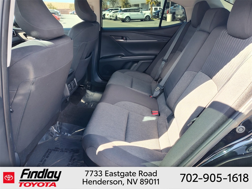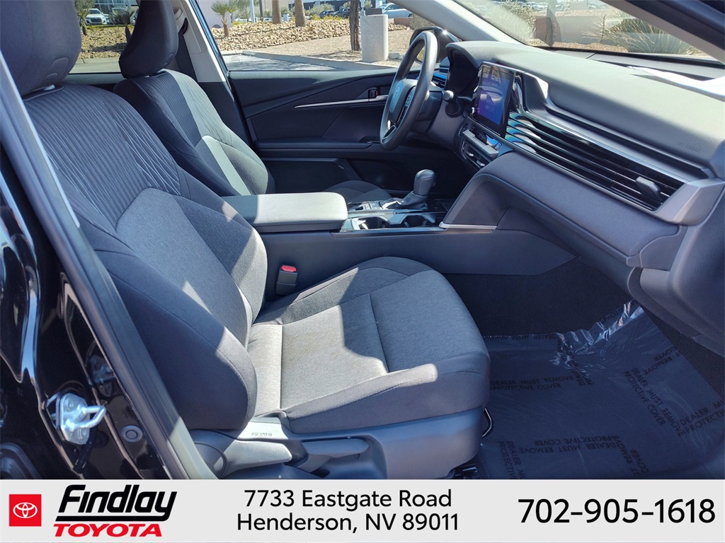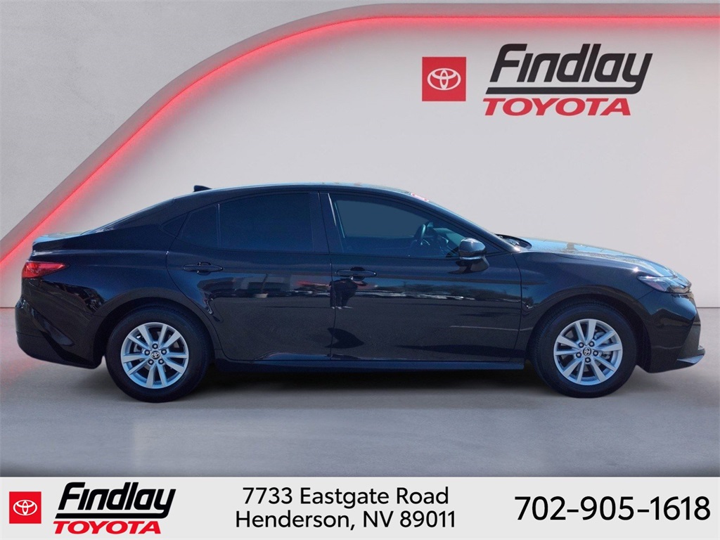 Looking for the best quality used cars near Las Vegas? Findlay Toyota of Henderson is your top destination. As the premier dealership in Nevada, we offer an extensive selection of top-notch pre-owned vehicles, ensuring you find the perfect car to fit your needs and budget. Conveniently located at 7733 Eastgate Rd in the Valley Automall, our dealership spans 12 1⁄2 acres and features a 145,000-square-foot facility, including Nevada’s only Master Certified Toyota Service Department. Our expert sales and financing teams are dedicated to providing a hassle-free buying experience, and our state-of-the-art service center is equipped to handle everything from routine maintenance to major repairs. Our multilingual staff speaks 14 languages, making us accessible to a diverse range of customers. Beyond exceptional service, we are committed to giving back to the Henderson community through initiatives like Toys for Tots and the Las Vegas Rescue Mission. Discover why Findlay Toyota of Henderson is the trusted choice for quality used cars and exceptional service. Visit us today and drive home in your dream car! This Toyota Camry is equipped with the following equipment: Toyota Gold Certified Certified, 2.5L 4-Cylinder 16V DOHC, Black w/Fabric Seat Trim, 4-Wheel Disc Brakes, 6 Speakers, ABS brakes, Air Conditioning, Alloy wheels, AM/FM radio: SiriusXM, Apple CarPlay/Android Auto, Auto High-beam Headlights, Automatic temperature control, Brake assist, Bumpers: body-color, Delay-off headlights, Driver door bin, Driver vanity mirror, Dual front impact airbags, Dual front side impact airbags, Electronic Stability Control, Emergency communication system: Safety Connect (up to 10-year trial subscription), Exterior Parking Camera Rear, Four wheel independent suspension, Front anti-roll bar, Front Bucket Seats, Front Center Armrest, Front dual zone A/C, Front reading lights, Fully automatic headlights, Heated door mirrors, Illuminated entry, Knee airbag, Low tire pressure warning, Occupant sensing airbag, Outside temperature display, Overhead airbag, Overhead console, Panic alarm, Passenger door bin, Passenger vanity mirror, Power door mirrors, Power steering, Power windows, Radio data system, Rear anti-roll bar, Rear seat center armrest, Rear side impact airbag, Rear window defroster, Remote keyless entry, Security system, Speed control, Speed-sensing steering, Split folding rear seat, Steering wheel mounted audio controls, Telescoping steering wheel, Tilt steering wheel, Traction control, Trip computer, Turn signal indicator mirrors, and Variably intermittent wipers. ** This 2025 Toyota Camry is equipped with 2.5L 4-Cylinder 16V DOHC FWD**, ** and this Camry is trimmed in Midnight Black Metallic with Black interior**, 2.5L 4-Cylinder 16V DOHC, Black w/Fabric Seat Trim.