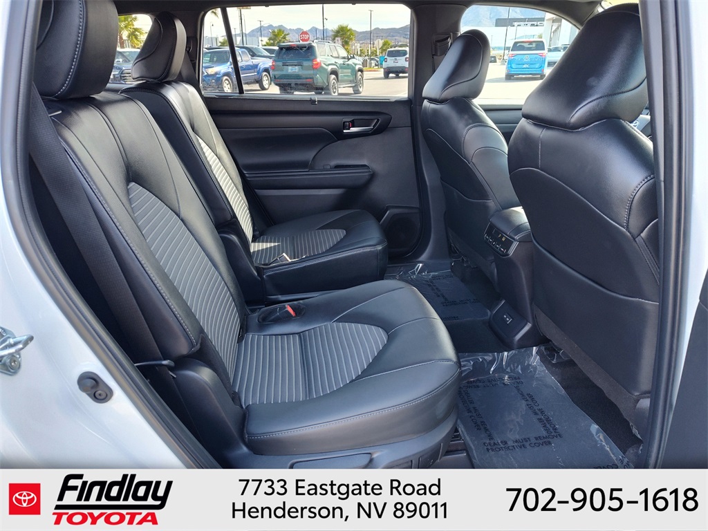 Looking for the best quality used cars near Las Vegas? Findlay Toyota of Henderson is your top destination. As the premier dealership in Nevada, we offer an extensive selection of top-notch pre-owned vehicles, ensuring you find the perfect car to fit your needs and budget. Conveniently located at 7733 Eastgate Rd in the Valley Automall, our dealership spans 12 1⁄2 acres and features a 145,000-square-foot facility, including Nevada’s only Master Certified Toyota Service Department. Our expert sales and financing teams are dedicated to providing a hassle-free buying experience, and our state-of-the-art service center is equipped to handle everything from routine maintenance to major repairs. Our multilingual staff speaks 14 languages, making us accessible to a diverse range of customers. Beyond exceptional service, we are committed to giving back to the Henderson community through initiatives like Toys for Tots and the Las Vegas Rescue Mission. Discover why Findlay Toyota of Henderson is the trusted choice for quality used cars and exceptional service. Visit us today and drive home in your dream car! This Toyota Highlander is equipped with the following equipment: AWD, 3rd row seats: split-bench, 4-Wheel Disc Brakes, ABS brakes, Air Conditioning, Alloy wheels, AM/FM radio: SiriusXM, Apple CarPlay/Android Auto, Auto High-beam Headlights, Automatic temperature control, Brake assist, Bumpers: body-color, Delay-off headlights, Driver door bin, Driver vanity mirror, Dual front impact airbags, Dual front side impact airbags, Electronic Stability Control, Emergency communication system: Safety Connect (up to 10-year trial subscription), Exterior Parking Camera Rear, Four wheel independent suspension, Front anti-roll bar, Front Bucket Seats, Front Center Armrest, Front dual zone A/C, Front fog lights, Front reading lights, Fully automatic headlights, Heated door mirrors, Illuminated entry, Knee airbag, Leather Shift Knob, Leather steering wheel, Low tire pressure warning, Occupant sensing airbag, Outside temperature display, Overhead airbag, Overhead console, Panic alarm, Passenger door bin, Passenger vanity mirror, Power door mirrors, Power driver seat, Power Liftgate, Power steering, Power windows, Rear air conditioning, Rear anti-roll bar, Rear reading lights, Rear window defroster, Rear window wiper, Reclining 3rd row seat, Remote keyless entry, Security system, Speed control, Speed-sensing steering, Split folding rear seat, Spoiler, Steering wheel mounted audio controls, Tachometer, Telescoping steering wheel, Tilt steering wheel, Traction control, Trip computer, Turn signal indicator mirrors, and Variably intermittent wipers. ** This 2025 Toyota Highlander is equipped with 2.4L 4-Cylinder AWD**, ** and this Highlander is trimmed in White with Black interior**, AWD.