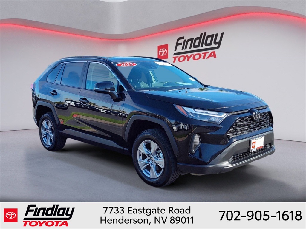 Looking for the best quality used cars near Las Vegas? Findlay Toyota of Henderson is your top destination. As the premier dealership in Nevada, we offer an extensive selection of top-notch pre-owned vehicles, ensuring you find the perfect car to fit your needs and budget. Conveniently located at 7733 Eastgate Rd in the Valley Automall, our dealership spans 12 1⁄2 acres and features a 145,000-square-foot facility, including Nevada’s only Master Certified Toyota Service Department. Our expert sales and financing teams are dedicated to providing a hassle-free buying experience, and our state-of-the-art service center is equipped to handle everything from routine maintenance to major repairs. Our multilingual staff speaks 14 languages, making us accessible to a diverse range of customers. Beyond exceptional service, we are committed to giving back to the Henderson community through initiatives like Toys for Tots and the Las Vegas Rescue Mission. Discover why Findlay Toyota of Henderson is the trusted choice for quality used cars and exceptional service. Visit us today and drive home in your dream car! This Toyota RAV4 is equipped with the following equipment: Black Cloth, 4-Wheel Disc Brakes, 6 Speakers, ABS brakes, Air Conditioning, Alloy wheels, AM/FM radio: SiriusXM, Auto High-beam Headlights, Automatic temperature control, Brake assist, Bumpers: body-color, Delay-off headlights, Driver door bin, Driver vanity mirror, Dual front impact airbags, Dual front side impact airbags, Electronic Stability Control, Emergency communication system: Safety Connect (10-year trial), Exterior Parking Camera Rear, Fabric Seat Trim, Four wheel independent suspension, Front anti-roll bar, Front Bucket Seats, Front Center Armrest, Front dual zone A/C, Front reading lights, Fully automatic headlights, Heated door mirrors, Illuminated entry, Knee airbag, Low tire pressure warning, Occupant sensing airbag, Outside temperature display, Overhead airbag, Overhead console, Panic alarm, Passenger door bin, Passenger vanity mirror, Power door mirrors, Power driver seat, Power steering, Power windows, Radio data system, Radio: AM/FM/XM Audio System, Rear anti-roll bar, Rear seat center armrest, Rear window defroster, Rear window wiper, Remote keyless entry, Speed control, Speed-sensing steering, Split folding rear seat, Spoiler, Steering wheel mounted audio controls, Tachometer, Telescoping steering wheel, Tilt steering wheel, Traction control, Trip computer, Turn signal indicator mirrors, Variably intermittent wipers, and Wheels: 17" 5-Spoke Silver Alloy. ** This 2025 Toyota RAV4 is equipped with 2.5L 4-Cylinder DOHC Dual VVT-i FWD**, ** and this RAV4 is trimmed in Black with Black interior**, Black Cloth.