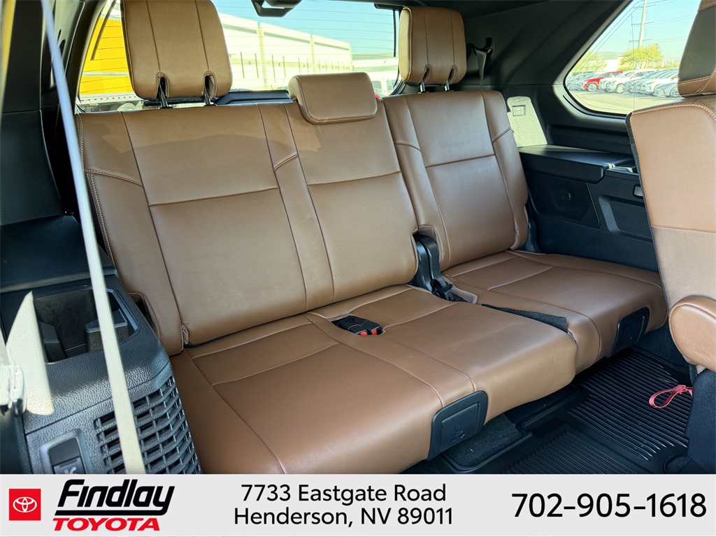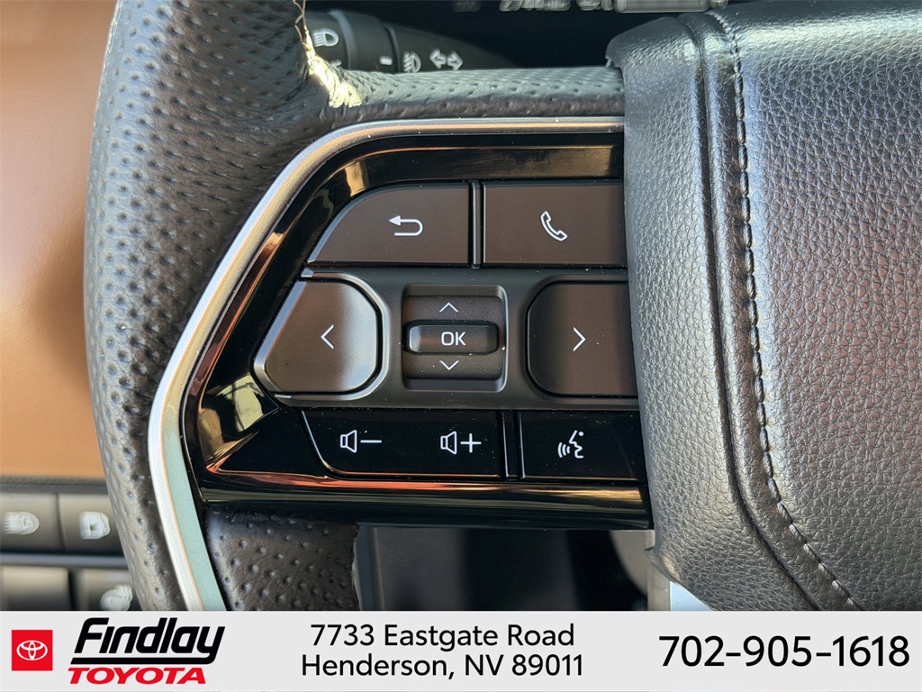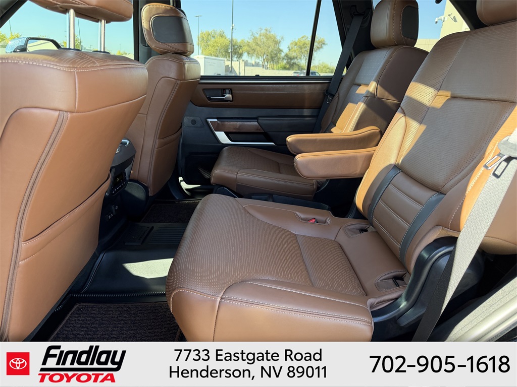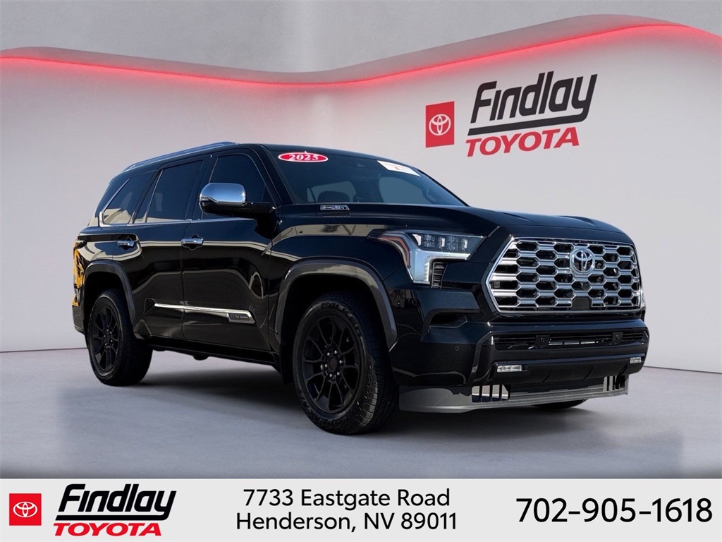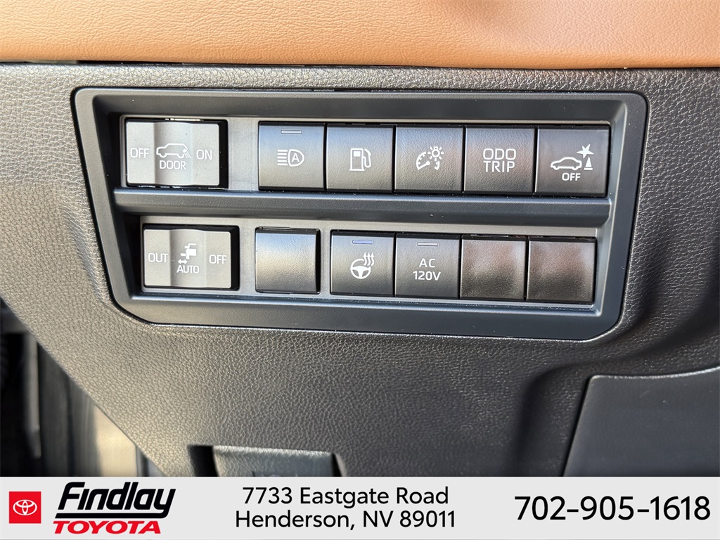 Looking for the best quality used cars near Las Vegas? Findlay Toyota of Henderson is your top destination. As the premier dealership in Nevada, we offer an extensive selection of top-notch pre-owned vehicles, ensuring you find the perfect car to fit your needs and budget. Conveniently located at 7733 Eastgate Rd in the Valley Automall, our dealership spans 12 1⁄2 acres and features a 145,000-square-foot facility, including Nevada’s only Master Certified Toyota Service Department. Our expert sales and financing teams are dedicated to providing a hassle-free buying experience, and our state-of-the-art service center is equipped to handle everything from routine maintenance to major repairs. Our multilingual staff speaks 14 languages, making us accessible to a diverse range of customers. Beyond exceptional service, we are committed to giving back to the Henderson community through initiatives like Toys for Tots and the Las Vegas Rescue Mission. Discover why Findlay Toyota of Henderson is the trusted choice for quality used cars and exceptional service. Visit us today and drive home in your dream car! This Toyota Sequoia is equipped with the following equipment: V6 Hybrid, 10-Speed Automatic, 4WD, 14 Speakers, 20" Alloy Wheels, 3rd row seats: split-bench, 4-Wheel Disc Brakes, ABS brakes, Air Conditioning, Alloy wheels, AM/FM radio: SiriusXM, Anti-whiplash front head restraints, Apple CarPlay/Android Auto, Auto High-beam Headlights, Auto tilt-away steering wheel, Auto-dimming door mirrors, Auto-dimming Rear-View mirror, Automatic temperature control, Brake assist, Bumpers: body-color, Compass, Delay-off headlights, Driver door bin, Driver vanity mirror, Dual front impact airbags, Dual front side impact airbags, Electronic Stability Control, Emergency communication system: Safety Connect (10-year trial), Exterior Parking Camera Rear, Front anti-roll bar, Front Bucket Seats, Front Center Armrest w/Storage, Front dual zone A/C, Front fog lights, Front reading lights, Front wheel independent suspension, Fully automatic headlights, Garage door transmitter: HomeLink, Genuine wood door panel insert, Headlight cleaning, Heated & Ventilated Front Seats, Heated door mirrors, Heated front seats, Heated rear seats, Heated steering wheel, Illuminated entry, Knee airbag, Leather Shift Knob, Leather steering wheel, Low tire pressure warning, Memory seat, Navigation system: Drive Connect (1 year trial) includes Cloud Navigation with real time traffic and Google POI, Occupant sensing airbag, Outside temperature display, Overhead airbag, Overhead console, Panic alarm, Passenger door bin, Passenger vanity mirror, Power door mirrors, Power driver seat, Power Liftgate, Power moonroof, Power passenger seat, Power steering, Power windows, Premium audio system: JBL, Premium Leather Seat Trim, Radio: 14" Toyota Audio Multimedia w/JBL Prem Aud, Rain sensing wipers, Rear air conditioning, Rear reading lights, Rear seat center armrest, Rear window defroster, Rear window wiper, Reclining 3rd row seat, Remote keyless entry, Security system, Speed control, Speed-sensing steering, Split folding rear seat, Spoiler, Sport steering wheel, Steering wheel mounted audio controls, Tachometer, Telescoping steering wheel, Tilt steering wheel, Traction control, Trip computer, Turn signal indicator mirrors, Variably intermittent wipers, Ventilated front seats, Ventilated rear seats, and Voltmeter. ** This 2025 Toyota Sequoia is equipped with V6 Hybrid 4WD**, ** and this Sequoia is trimmed in Midnight Black Metallic with Saddle Tan interior**, V6 Hybrid, 10-Speed Automatic, 4WD.