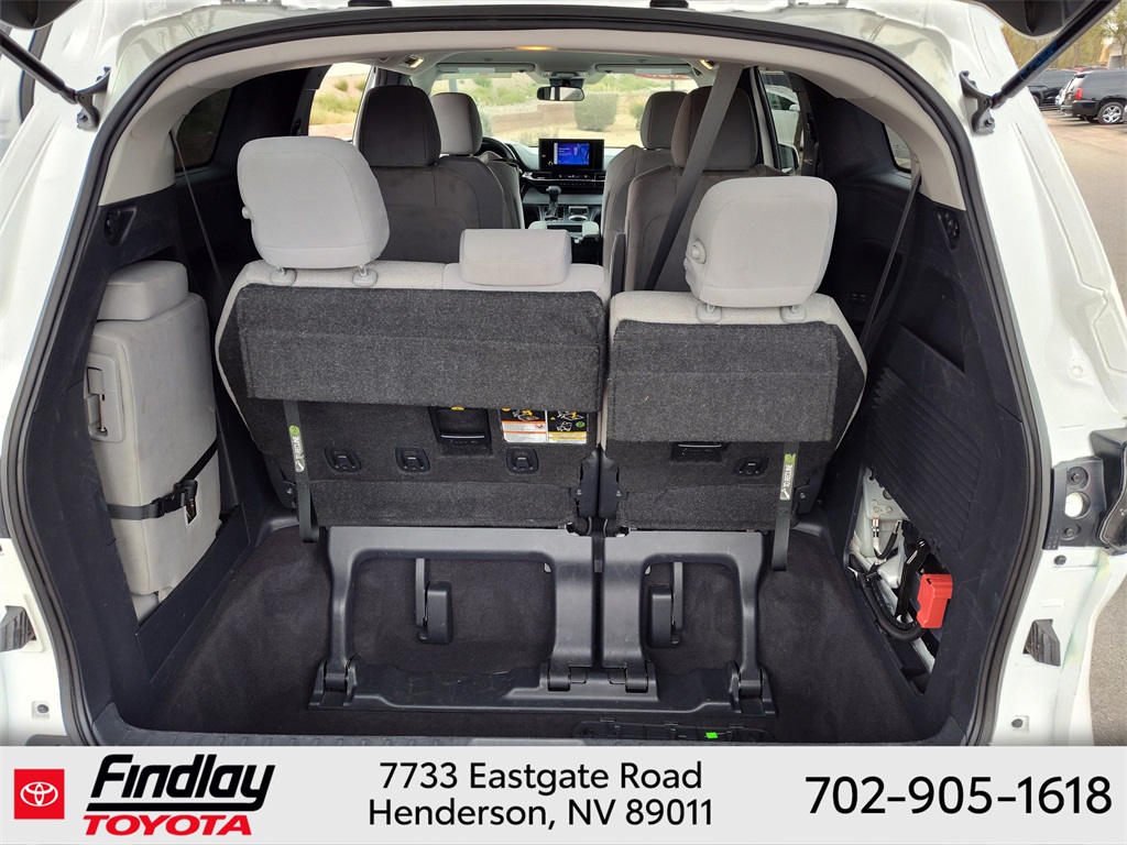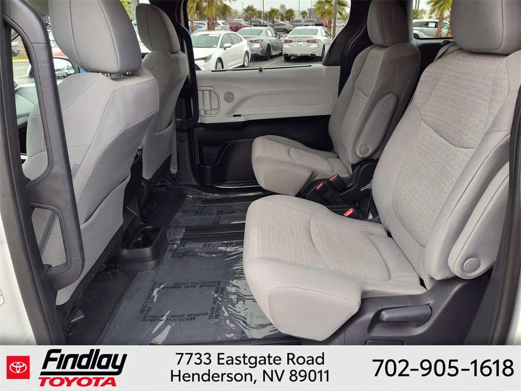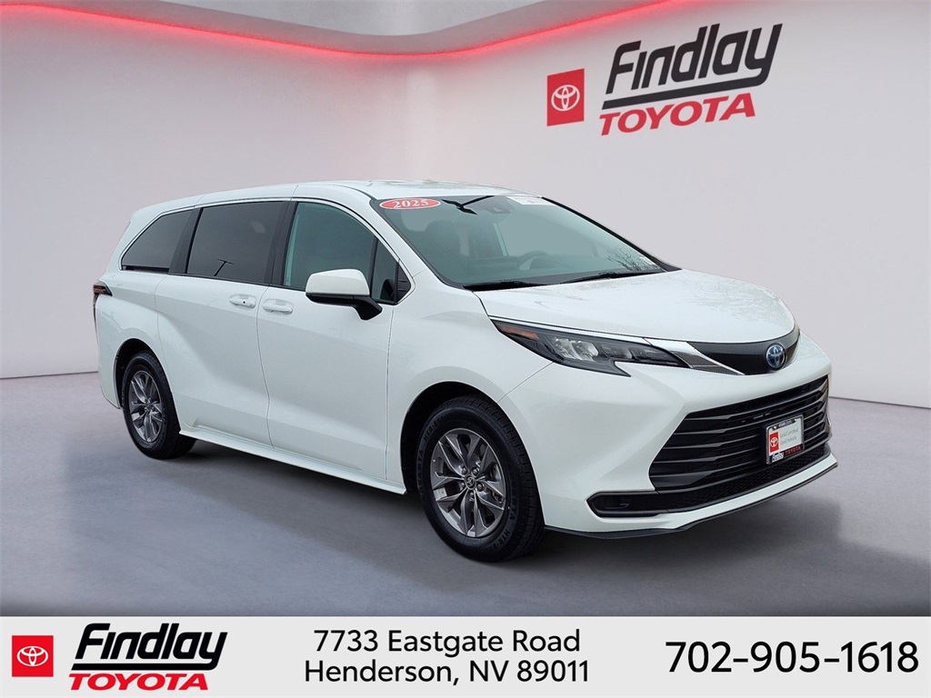 Looking for the best quality used cars near Las Vegas? Findlay Toyota of Henderson is your top destination. As the premier dealership in Nevada, we offer an extensive selection of top-notch pre-owned vehicles, ensuring you find the perfect car to fit your needs and budget. Conveniently located at 7733 Eastgate Rd in the Valley Automall, our dealership spans 12 1⁄2 acres and features a 145,000-square-foot facility, including Nevada’s only Master Certified Toyota Service Department. Our expert sales and financing teams are dedicated to providing a hassle-free buying experience, and our state-of-the-art service center is equipped to handle everything from routine maintenance to major repairs. Our multilingual staff speaks 14 languages, making us accessible to a diverse range of customers. Beyond exceptional service, we are committed to giving back to the Henderson community through initiatives like Toys for Tots and the Las Vegas Rescue Mission. Discover why Findlay Toyota of Henderson is the trusted choice for quality used cars and exceptional service. Visit us today and drive home in your dream car! This Toyota Sienna is equipped with the following equipment: 2.5L I4 Hybrid w/VVT-iE DOHC 16V, 17" Alloy Wheels, 3rd row seats: split-bench, 4-Wheel Disc Brakes, 6 Speakers, ABS brakes, Air Conditioning, Alloy wheels, AM/FM radio: SiriusXM, Apple CarPlay/Android Auto, Auto High-beam Headlights, Auto-dimming door mirrors, Automatic temperature control, Brake assist, Bumpers: body-color, Compass, Delay-off headlights, Driver door bin, Driver vanity mirror, Driver's Seat Mounted Armrest, Dual front impact airbags, Dual front side impact airbags, Electronic Stability Control, Emergency communication system: Safety Connect (1-year trial), Exterior Parking Camera Rear, Fabric Seat Material, Four wheel independent suspension, Front anti-roll bar, Front Bucket Seats, Front dual zone A/C, Front reading lights, Fully automatic headlights, Heated door mirrors, Illuminated entry, Knee airbag, Lane Departure Warning System, Low tire pressure warning, Occupant sensing airbag, Outside temperature display, Overhead airbag, Overhead console, Panic alarm, Passenger door bin, Passenger seat mounted armrest, Passenger vanity mirror, Power door mirrors, Power driver seat, Power steering, Power windows, Radio data system, Radio: Toyota Audio Multimedia, Rear air conditioning, Rear anti-roll bar, Rear reading lights, Rear seat center armrest, Rear side impact airbag, Rear window defroster, Rear window wiper, Reclining 3rd row seat, Remote keyless entry, Speed control, Speed-sensing steering, Split folding rear seat, Spoiler, Steering wheel mounted audio controls, Tachometer, TBD Axle Ratio, Telescoping steering wheel, Tilt steering wheel, Traction control, Trip computer, Turn signal indicator mirrors, and Variably intermittent wipers. ** This 2025 Toyota Sienna is equipped with 2.5L I4 Hybrid w/VVT-iE DOHC 16V FWD**, ** and this Sienna is trimmed in White with Gray interior**, 2.5L I4 Hybrid w/VVT-iE DOHC 16V.