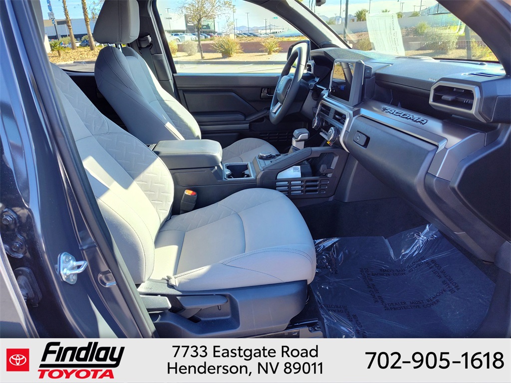 Looking for the best quality used cars near Las Vegas? Findlay Toyota of Henderson is your top destination. As the premier dealership in Nevada, we offer an extensive selection of top-notch pre-owned vehicles, ensuring you find the perfect car to fit your needs and budget. Conveniently located at 7733 Eastgate Rd in the Valley Automall, our dealership spans 12 1⁄2 acres and features a 145,000-square-foot facility, including Nevada’s only Master Certified Toyota Service Department. Our expert sales and financing teams are dedicated to providing a hassle-free buying experience, and our state-of-the-art service center is equipped to handle everything from routine maintenance to major repairs. Our multilingual staff speaks 14 languages, making us accessible to a diverse range of customers. Beyond exceptional service, we are committed to giving back to the Henderson community through initiatives like Toys for Tots and the Las Vegas Rescue Mission. Discover why Findlay Toyota of Henderson is the trusted choice for quality used cars and exceptional service. Visit us today and drive home in your dream car! This Toyota Tacoma is equipped with the following equipment: SR5 Upgrade Package (JBL Premium Audio, Leather-Trimmed Steering Wheel, Rear Underseat Storage Compartment, and TACOMA Stamped Easy Lower & Lift Tailgate), 4WD, 3.583 Axle Ratio, 4-Wheel Disc Brakes, 6 Speakers, ABS brakes, Air Conditioning, Alloy wheels, AM/FM radio: SiriusXM, Anti-whiplash front head restraints, Apple CarPlay/Android Auto, Auto High-beam Headlights, Auto-dimming Rear-View mirror, Brake assist, Bumpers: body-color, Driver door bin, Dual front impact airbags, Dual front side impact airbags, Electronic Stability Control, Emergency communication system: Safety Connect (1-year trial), Exterior Parking Camera Rear, Fabric Seat Trim, Four wheel independent suspension, Front anti-roll bar, Front Bucket Seats, Front Center Armrest, Front fog lights, Front reading lights, Fully automatic headlights, Heated door mirrors, Illuminated entry, Knee airbag, Low tire pressure warning, Occupant sensing airbag, Outside temperature display, Overhead airbag, Overhead console, Panic alarm, Passenger door bin, Power door mirrors, Power steering, Power windows, Radio: 8" Toyota Audio Multimedia, Rear step bumper, Rear window defroster, Remote keyless entry, Speed control, Speed-sensing steering, Split folding rear seat, Steering wheel mounted audio controls, Tachometer, Telescoping steering wheel, Tilt steering wheel, Traction control, Trip computer, Variably intermittent wipers, and Wheels: 17" Styled Alloy. ** This 2025 Toyota Tacoma is equipped with 2.4L 4-Cylinder 4WD**, ** and this Tacoma is trimmed in Underground with Boulder Fabric interior**, 4WD.